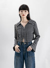 Stripe Long Sleeve Zip Crop Top