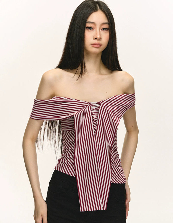 Stripe Off Shoulder Top with Attached Scarf
