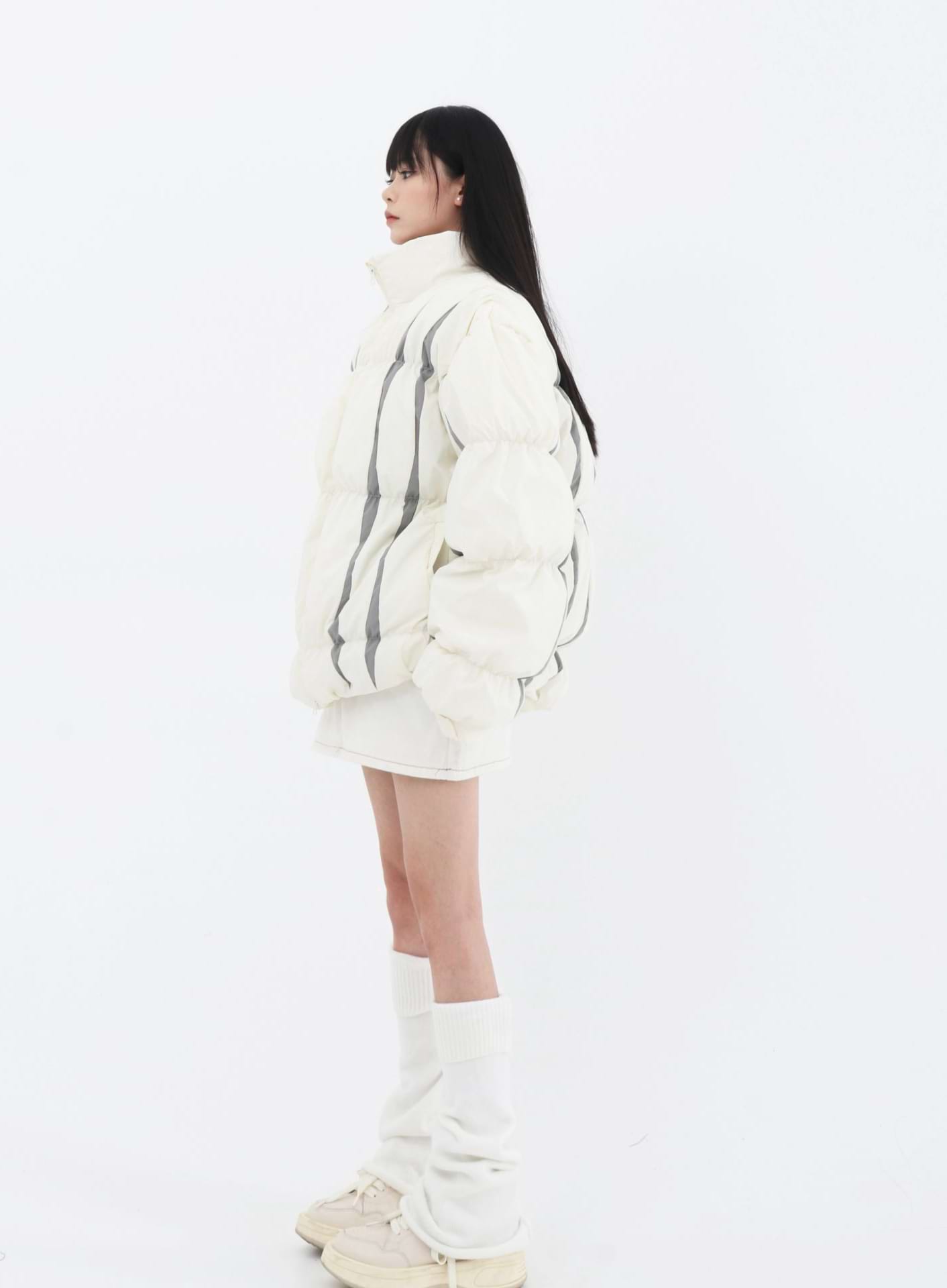 Read full Return PolicyLayer up in style with this Stripe Puffer Jacket. This jacket is perfect for bundling up on a cold day. With a casual style, you can wear this jacket over any outfit. The stripes give it a fun and trendy look. Stay warm all season long in this jacket.