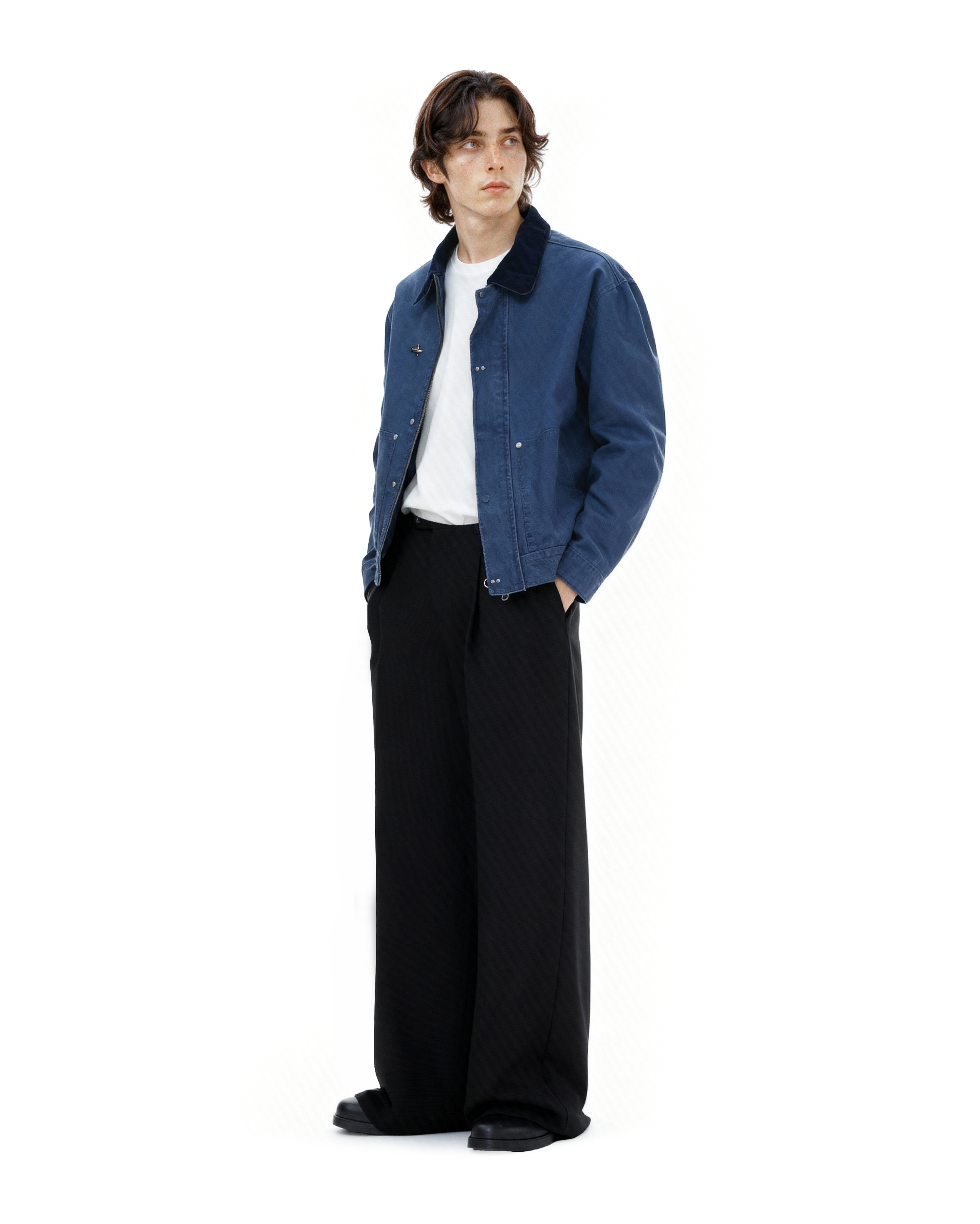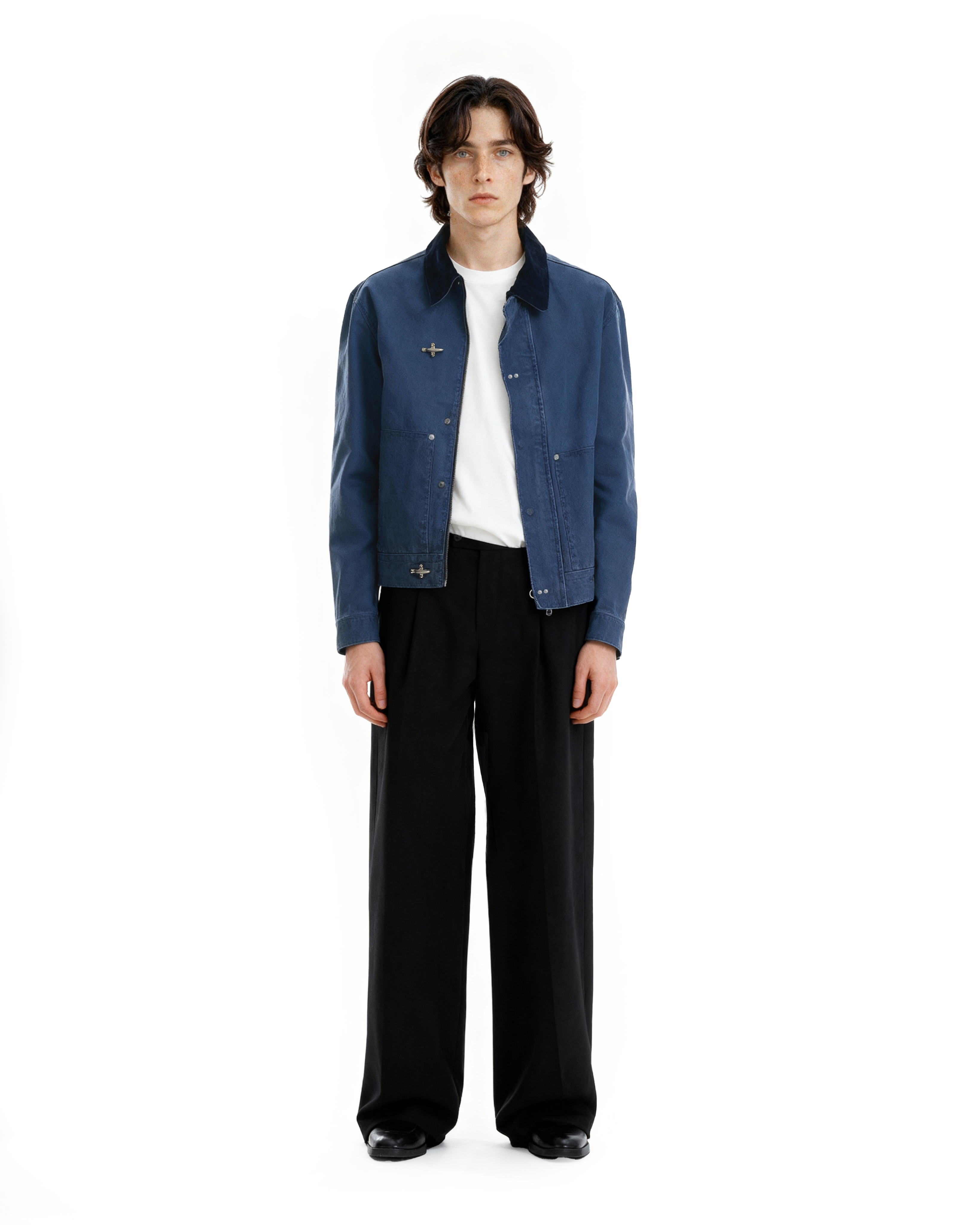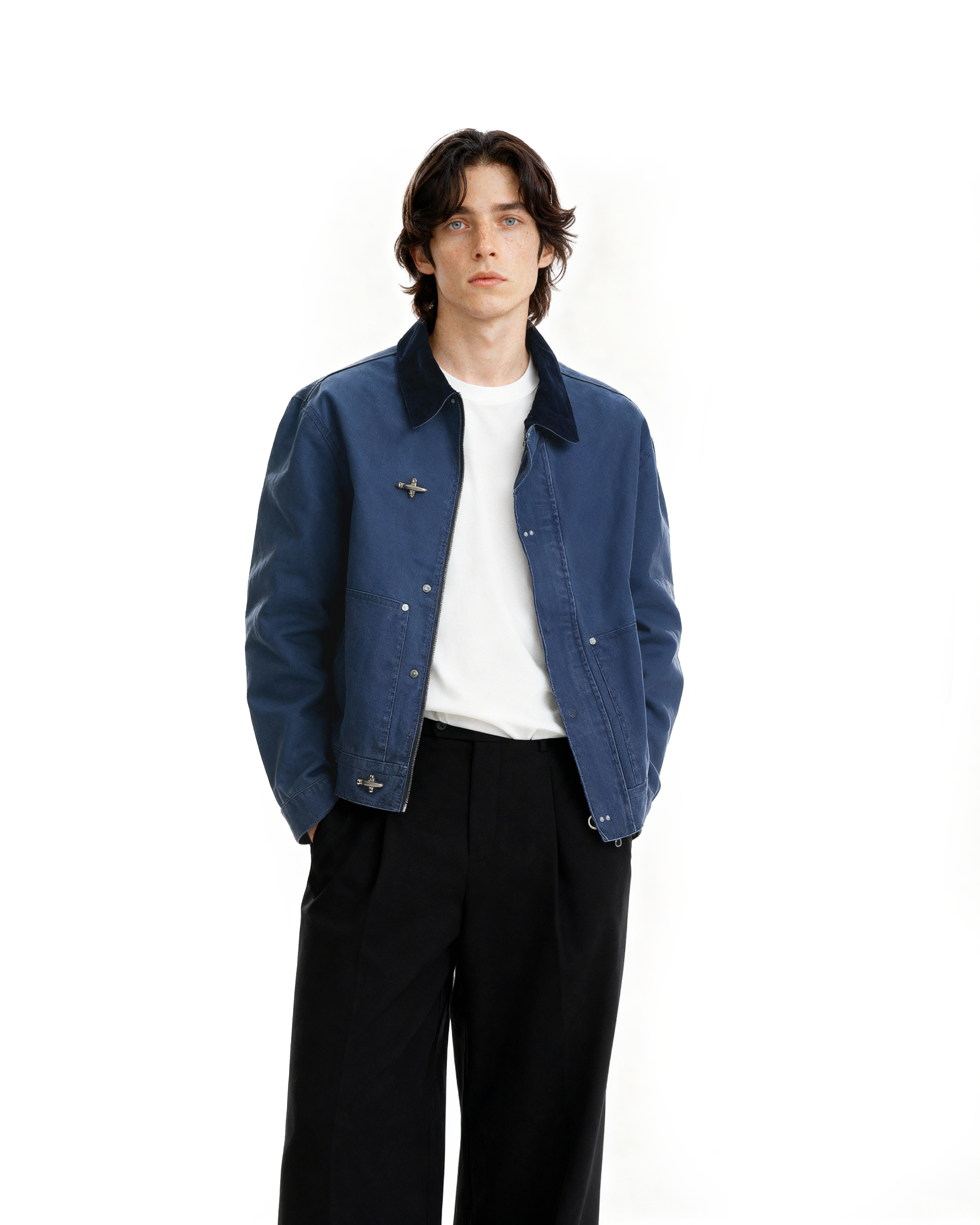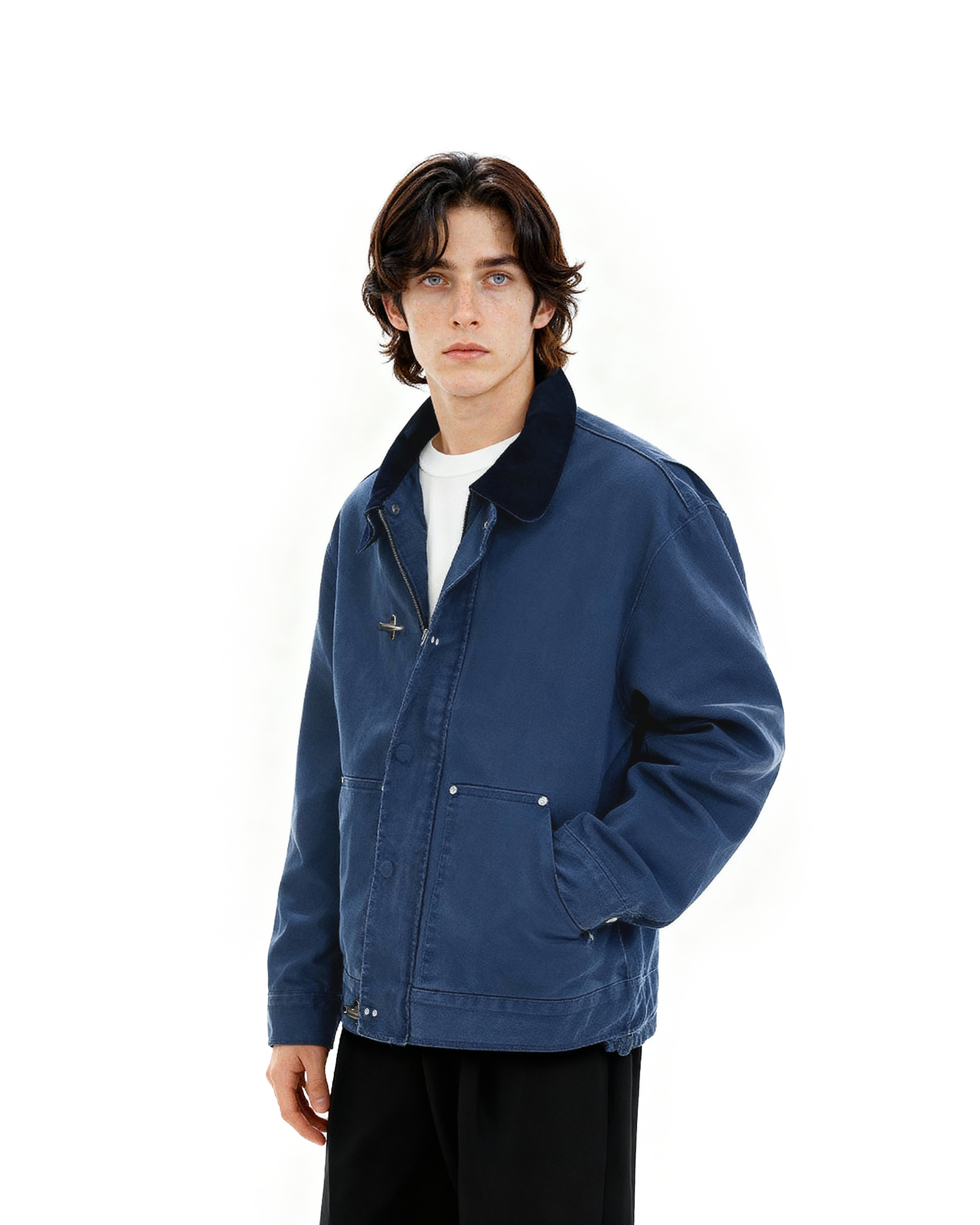 The design finds that balance between effort and edge—a clean silhouette that doesn’t try too hard but still turns heads. Made from durable denim with a textured surface, it’s built to outlast wear without sacrificing on comfort. The soft corduroy collar layers in some texture, while the metal hardware gives it that distinctive finish.
