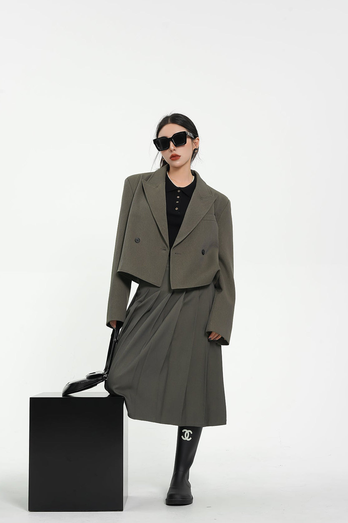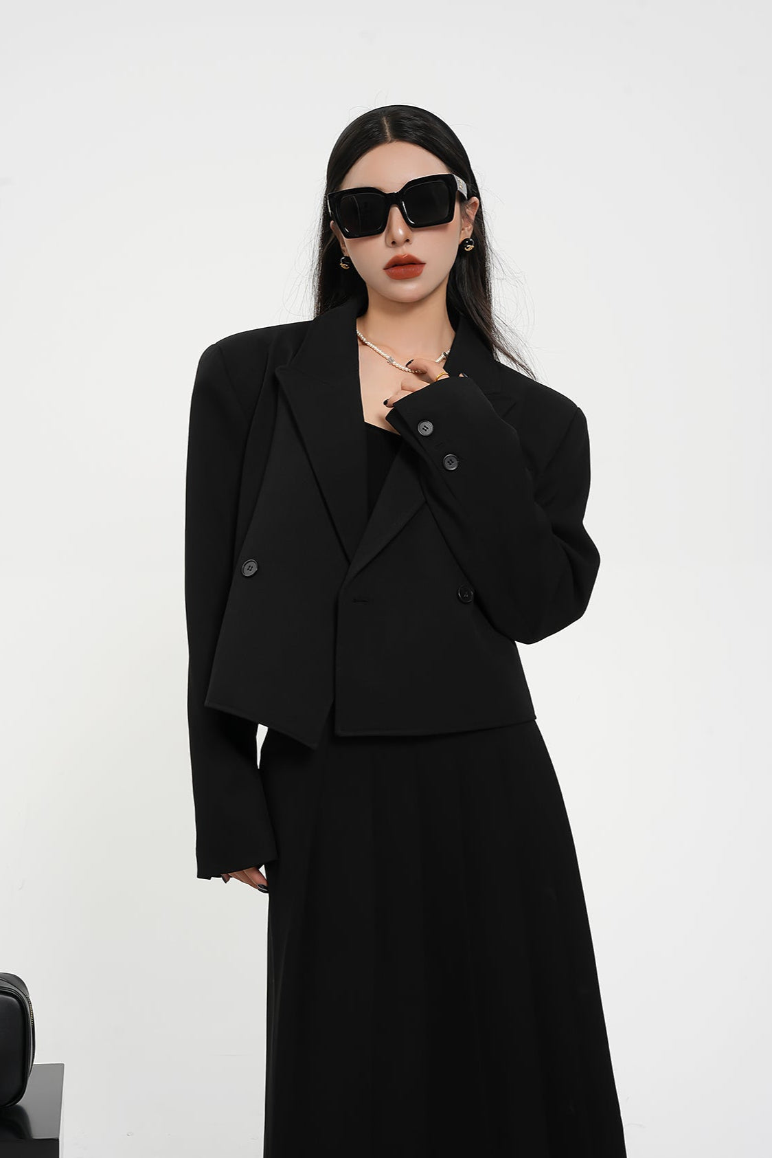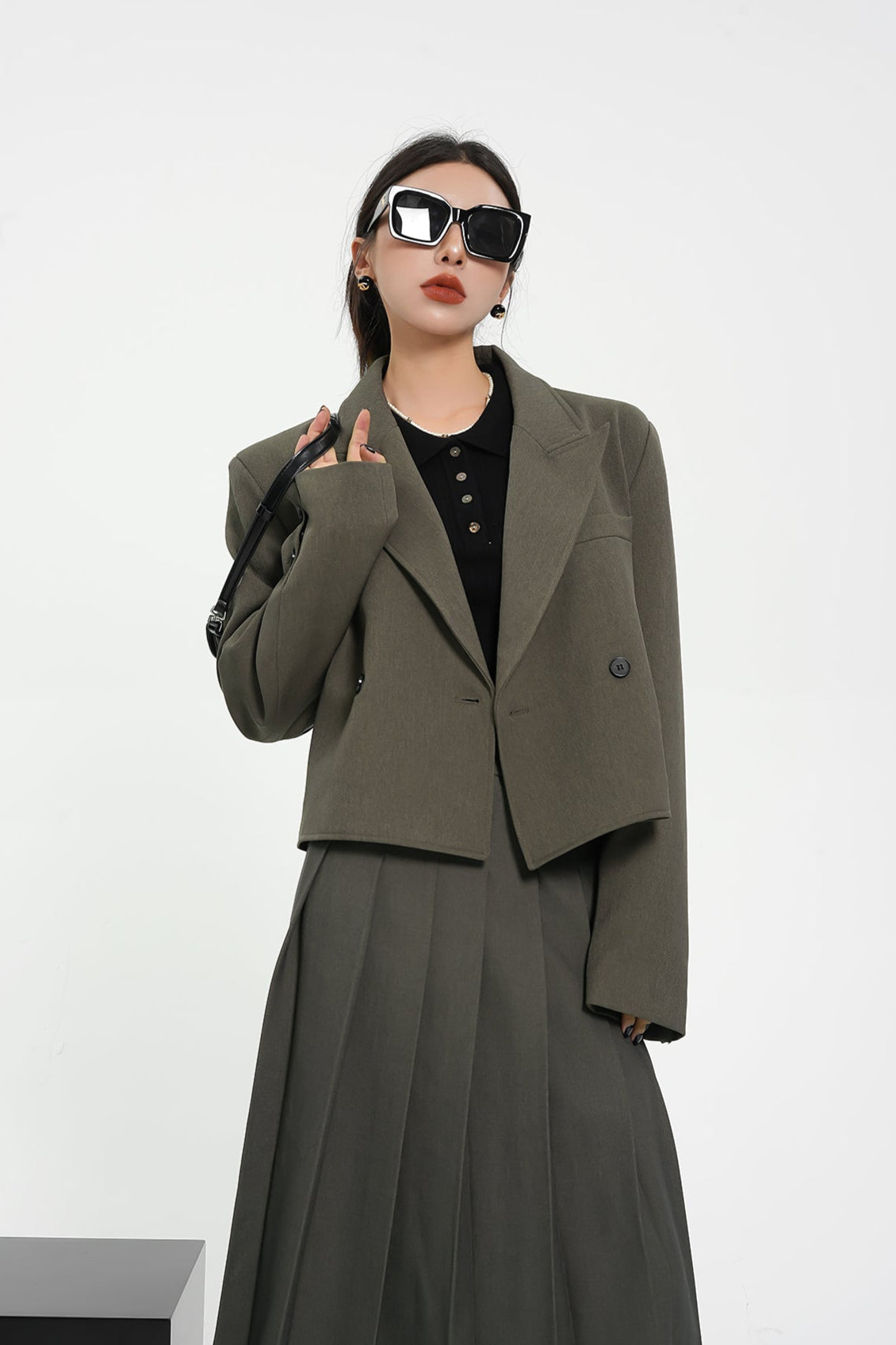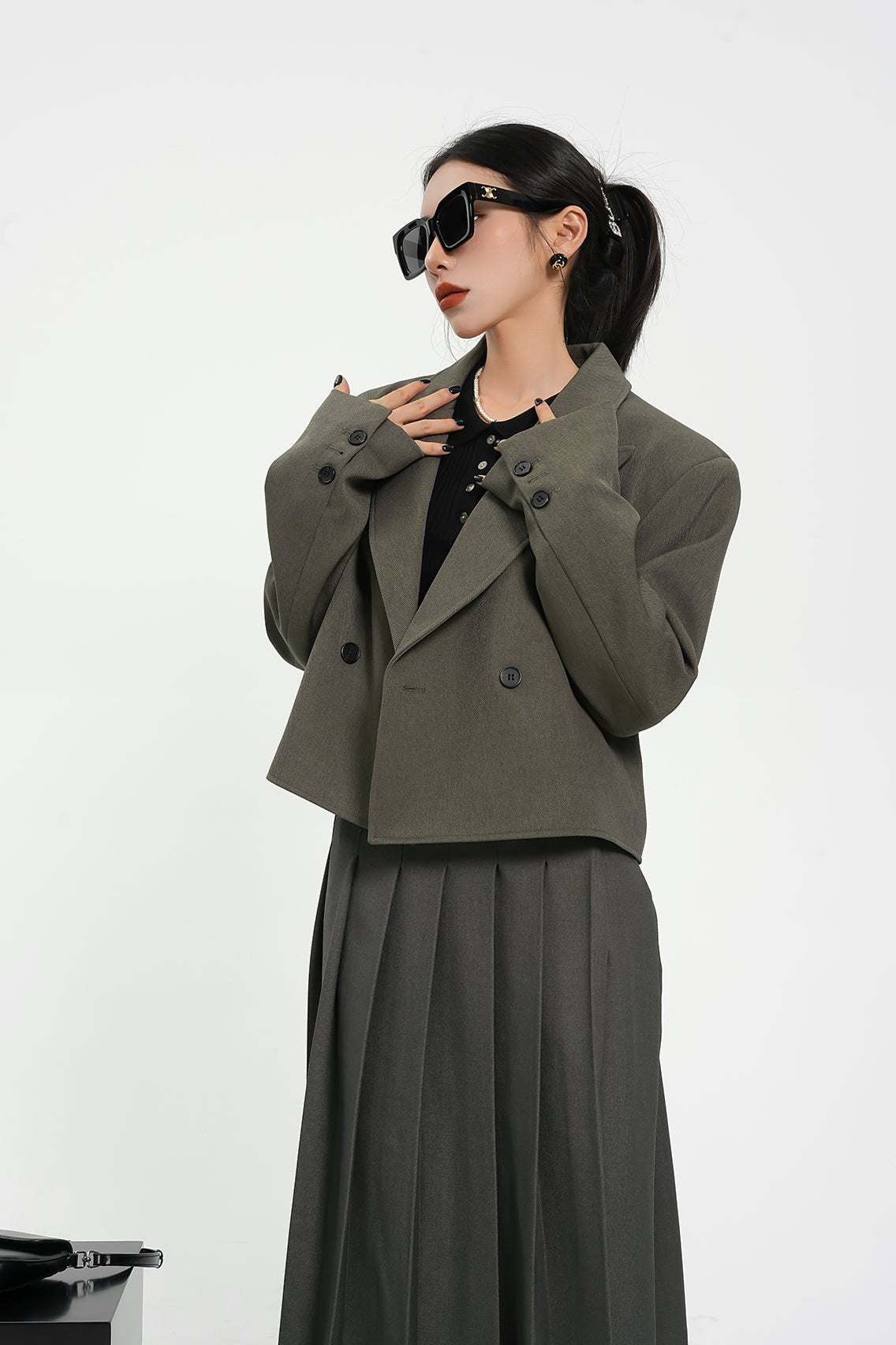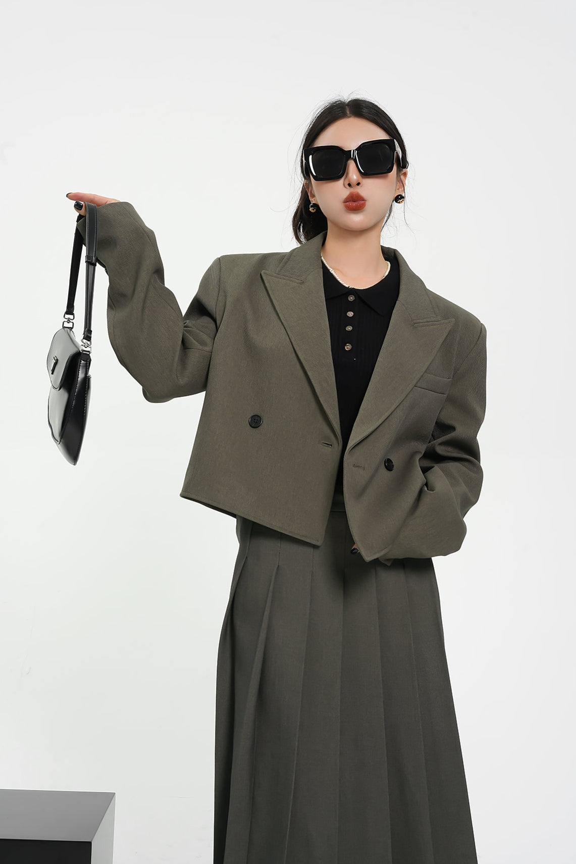 Structured Shoulder Double-Breasted Cropped Blazer