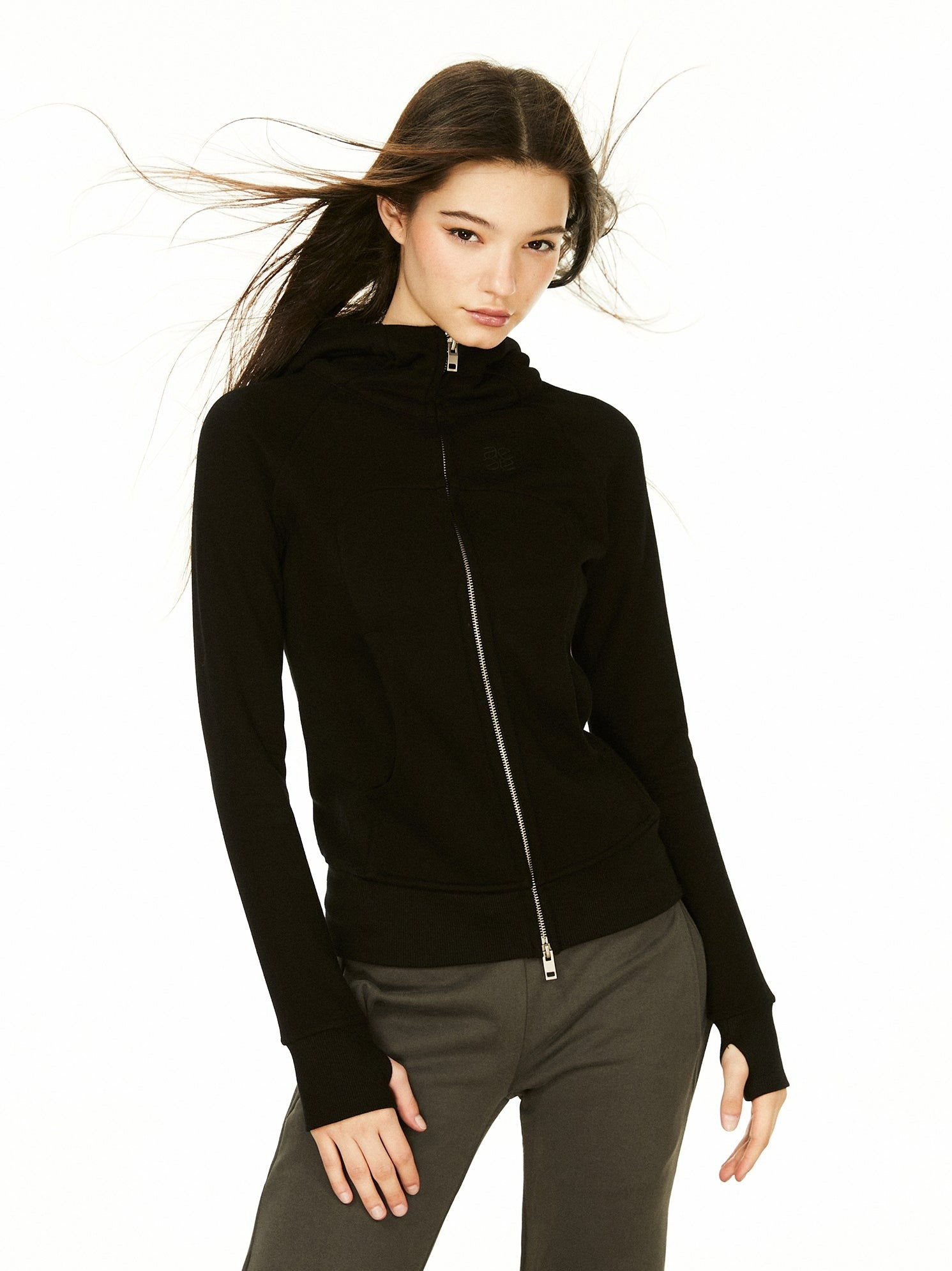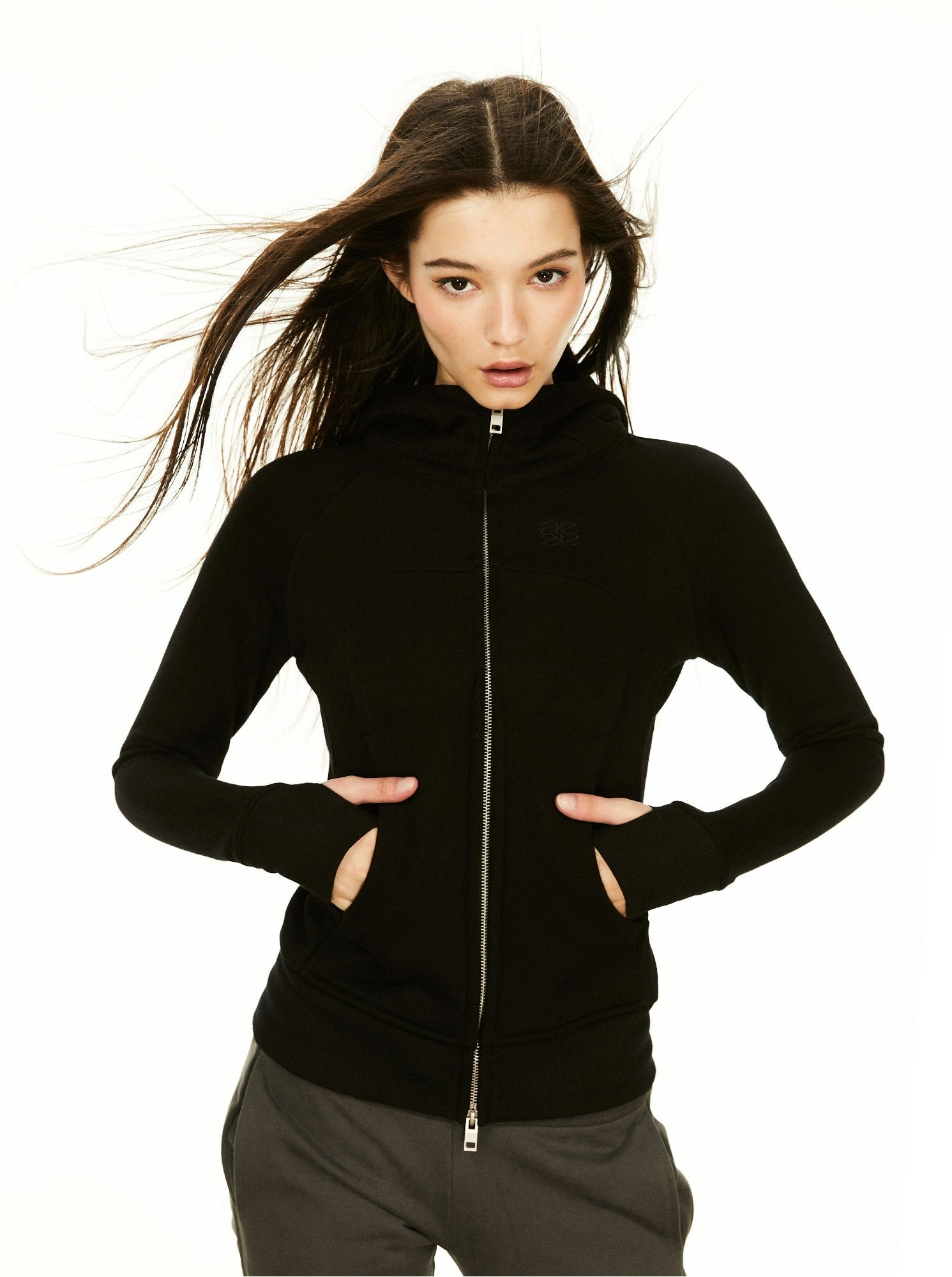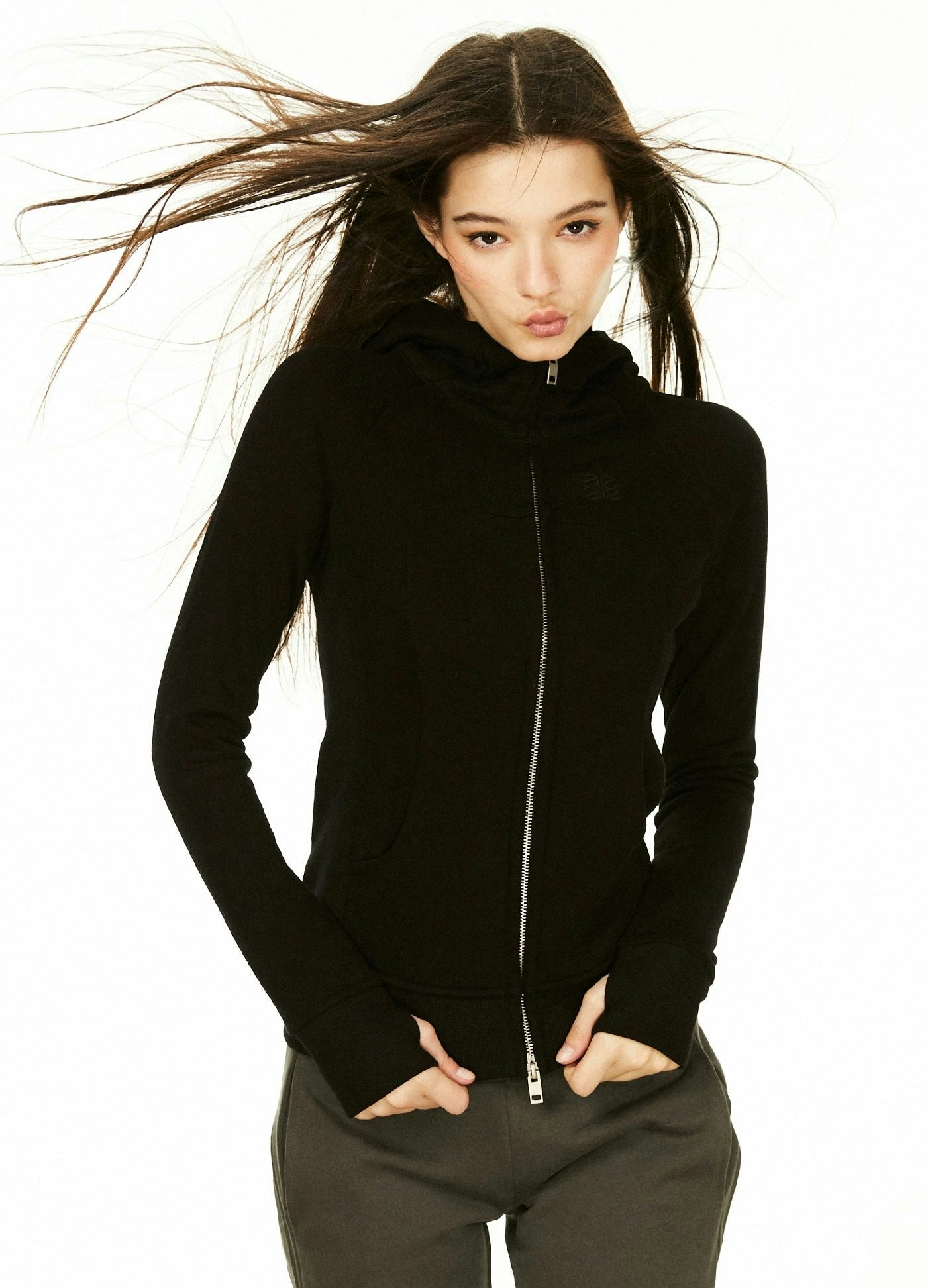 Made with a blend of 86% cotton and 14% polyester, the hoodie ensures a cozy wear that retains its shape and texture. The conventional long sleeves and fitted silhouette are complemented by distinct embroidery details and a practical zippered front, making it suitable for a range of settings and styles.