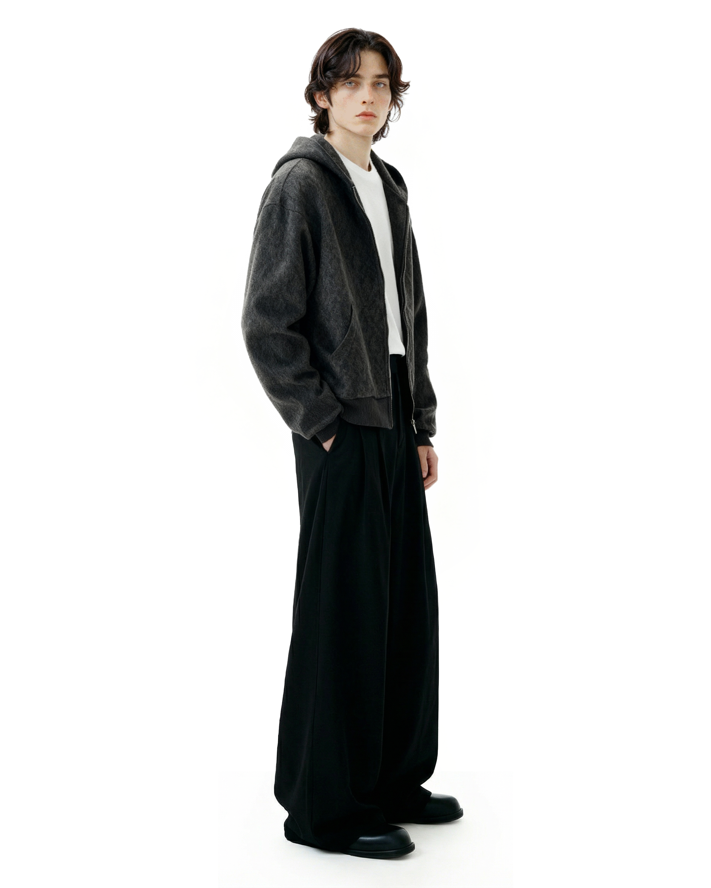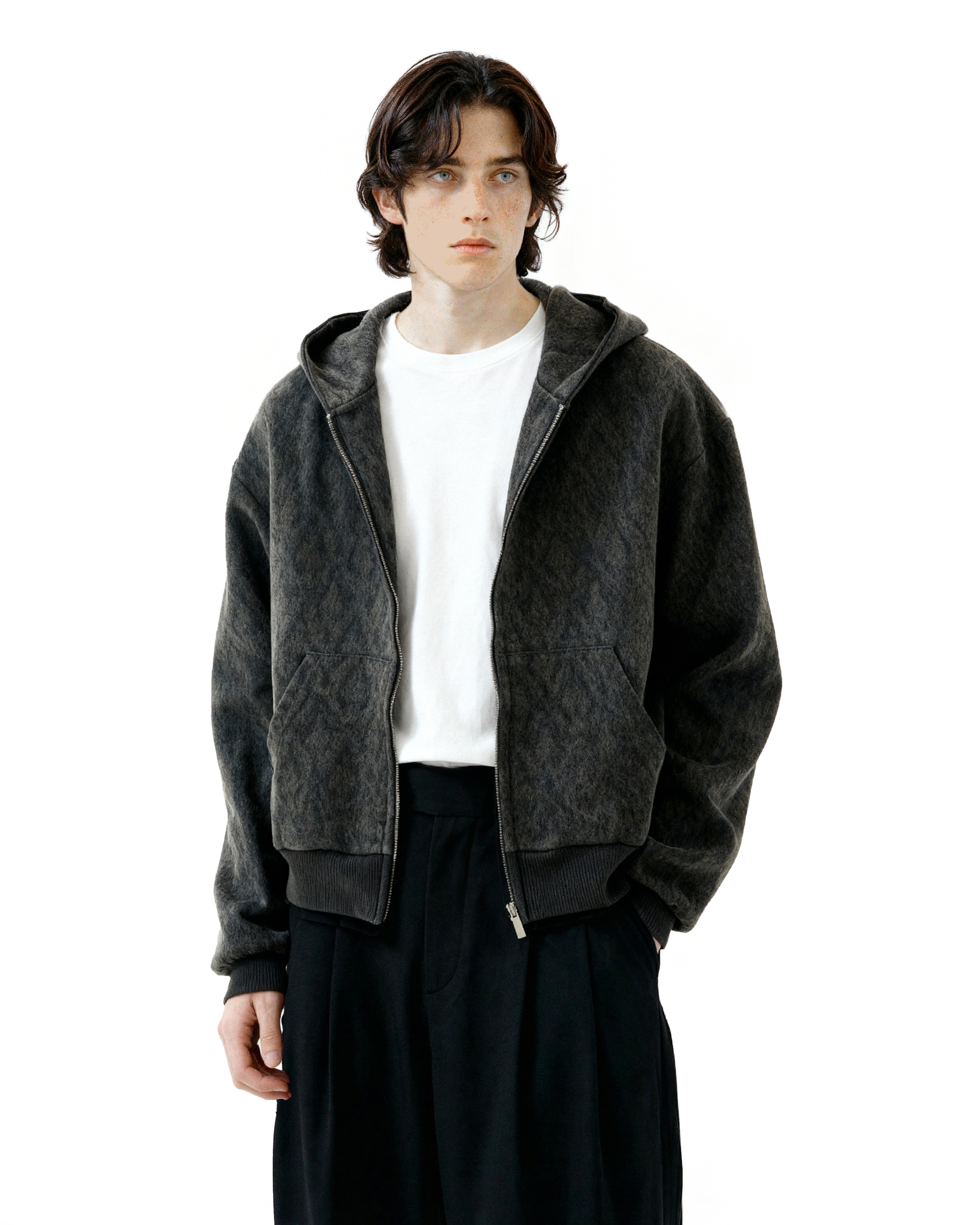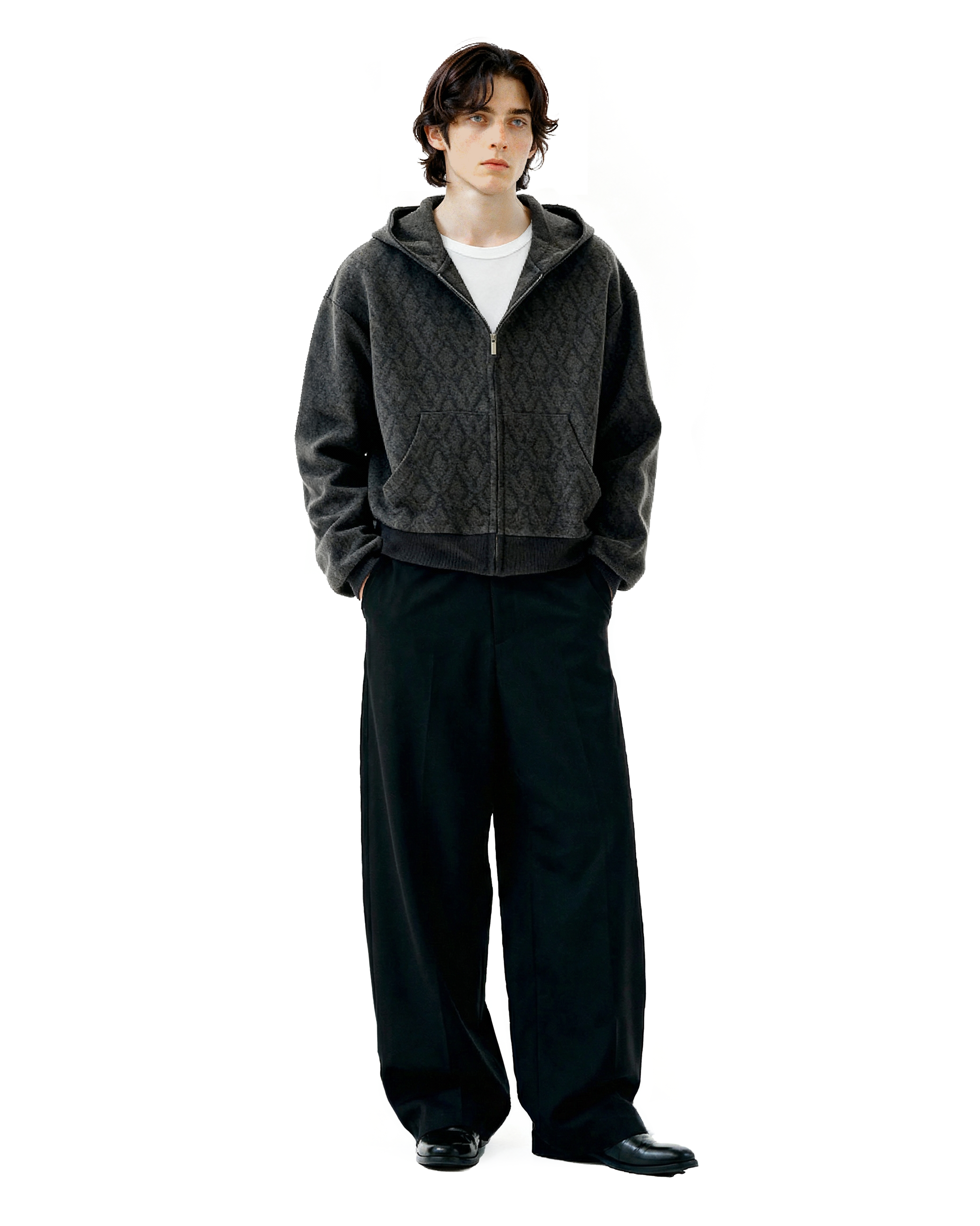Wear it zipped up with tailored trousers for a contrast look, or layer it unzipped over a tee and wide-leg denim for everyday ease. This hoodie speaks to those who want simplicity with a sense of presence—quiet confidence in form and construction, made for movement and expression.