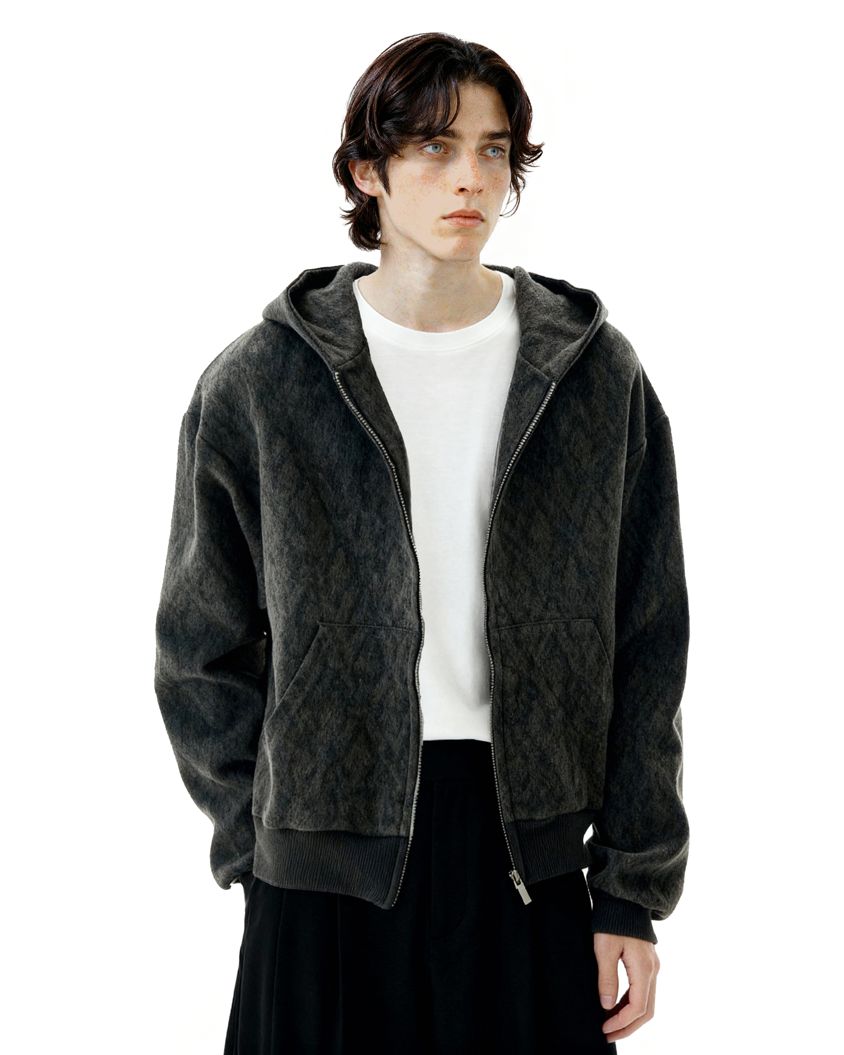 Subtle Pattern Textured Zip-Up Hoodie Jacket