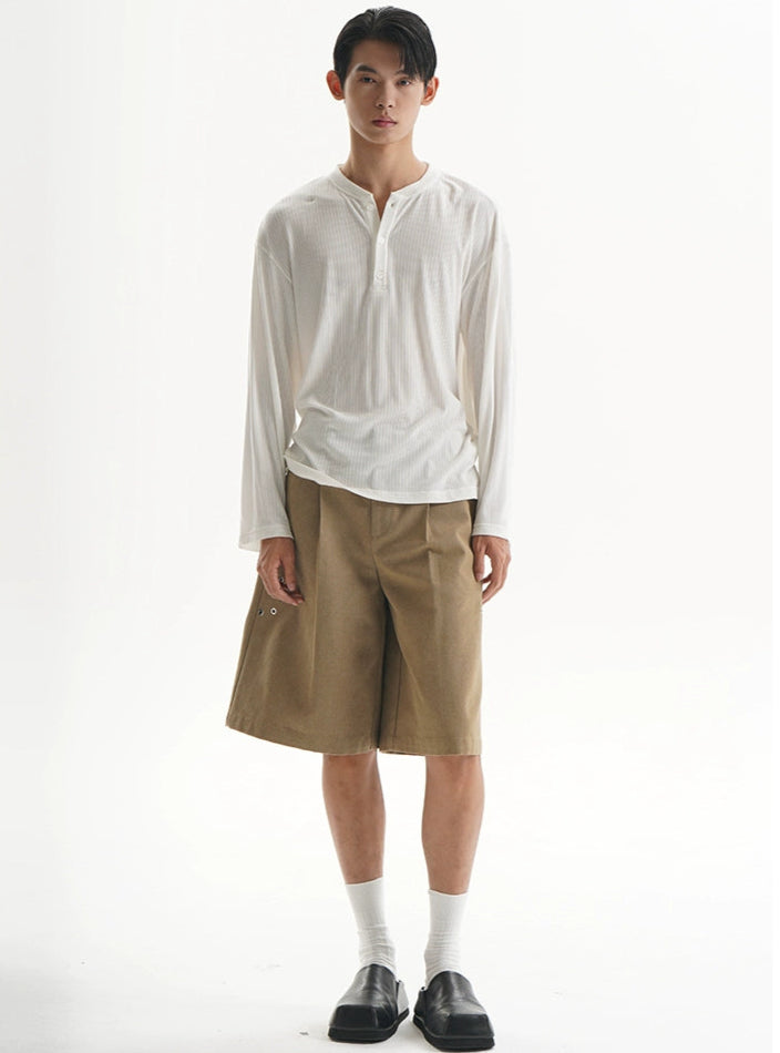 Crafted from a soft, vertical ribbed jersey made with a blend of 92% Tencel and 8% spandex, it has a slight stretch and a cool-to-the-touch finish. The lightweight fabric encourages airflow and absorbs moisture, while the Henley neckline and subtle texture offer an understated edge that feels modern and lived-in.