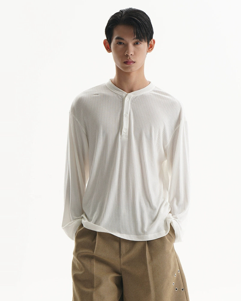 Read full Return PolicyEffortless and breathable, this textured long sleeve Henley top gives you that barely-there feel without compromising on style.