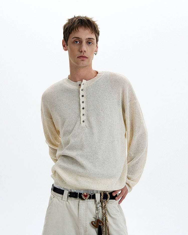 Read full Return PolicySheer texture meets subtle grit in this long sleeve Henley top, delivering a standout look without trying too hard.