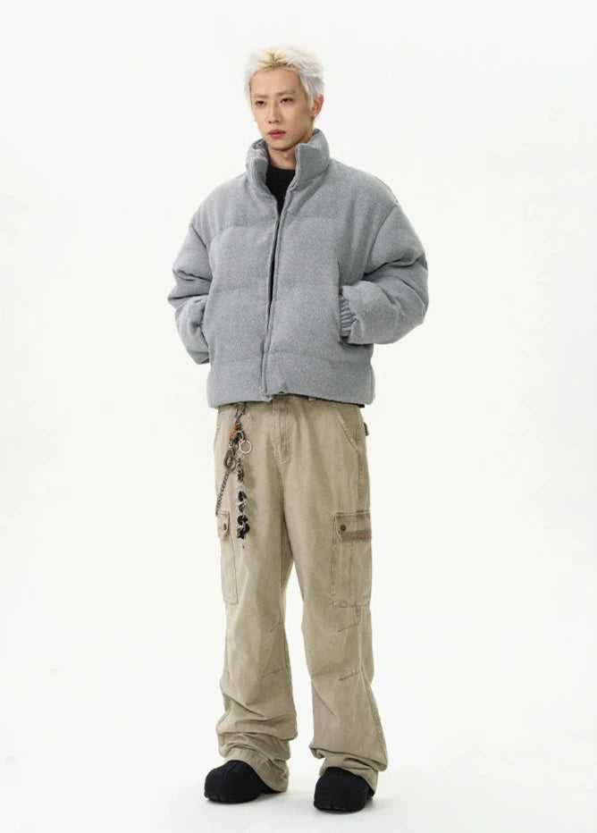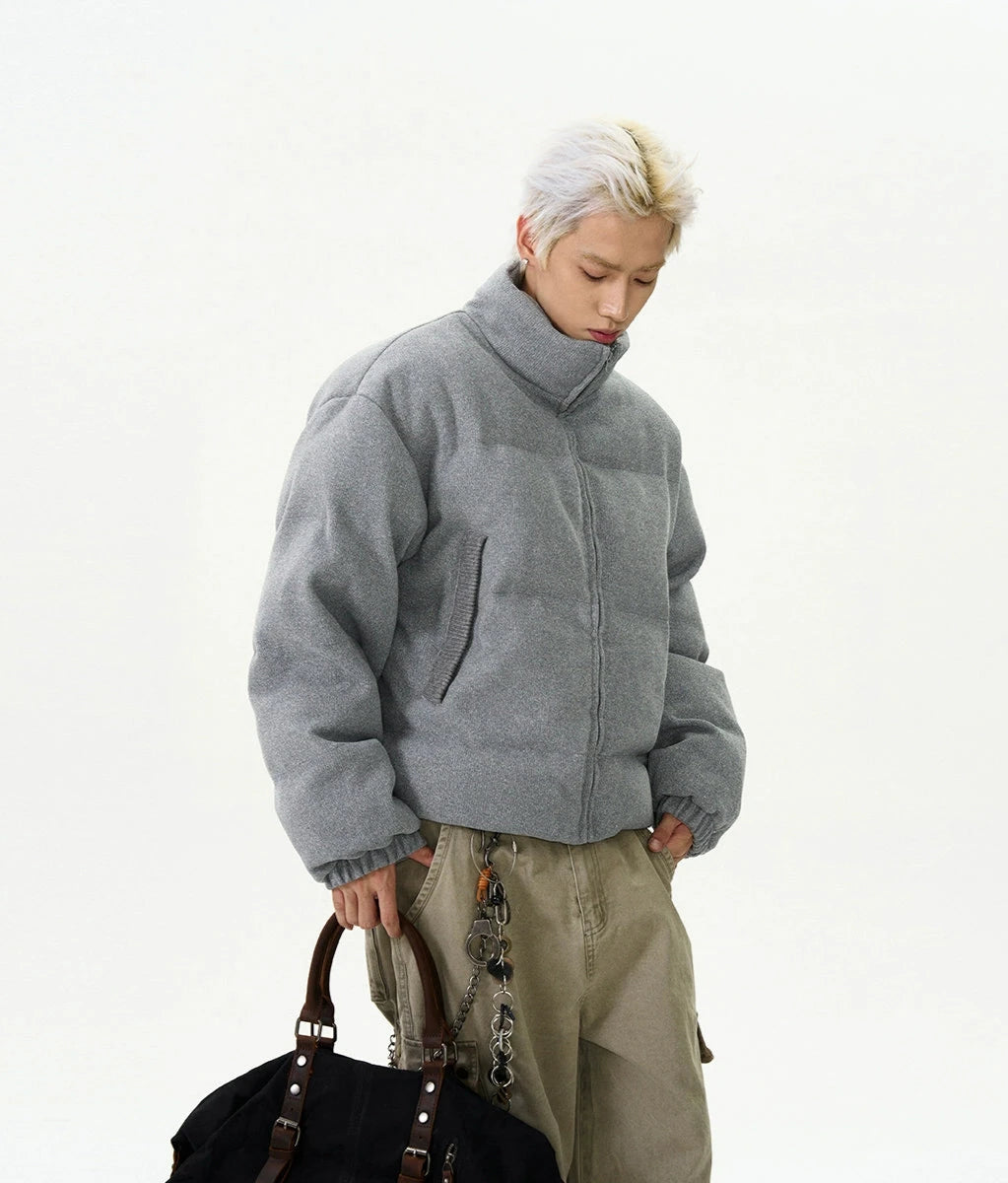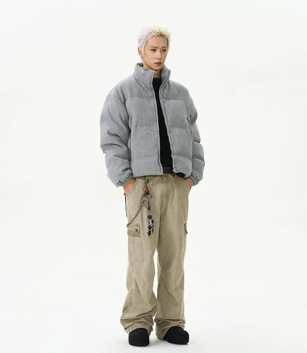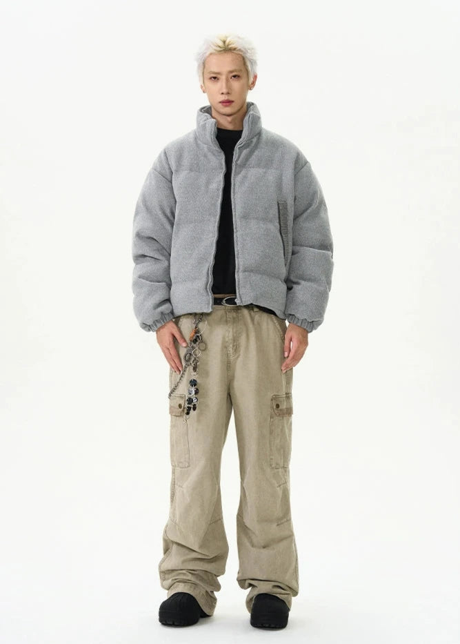 Crafted with a focus on detail, this jacket boasts a durable exterior with ribbed pocket accents that add a touch of sophistication to its relaxed silhouette. The thickened material ensures warmth, while the stand-up collar and zippered closure provide additional protection against chilly winds, creating an outerwear staple that's both practical and eye-catching.