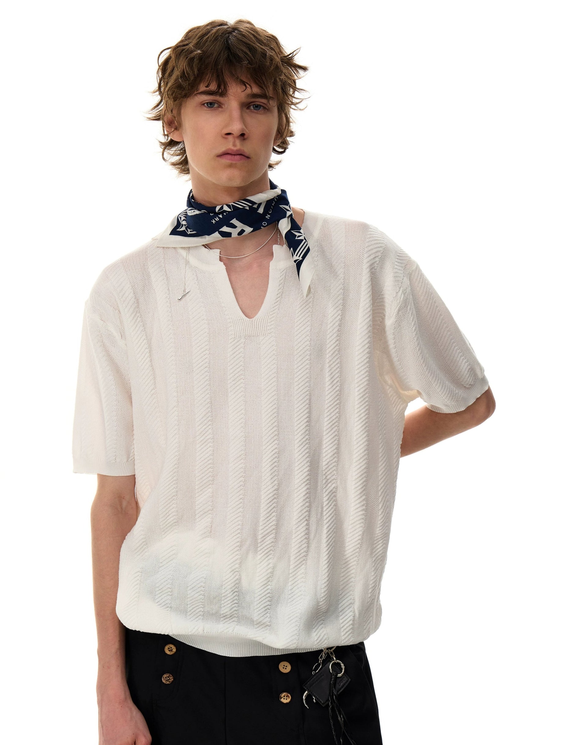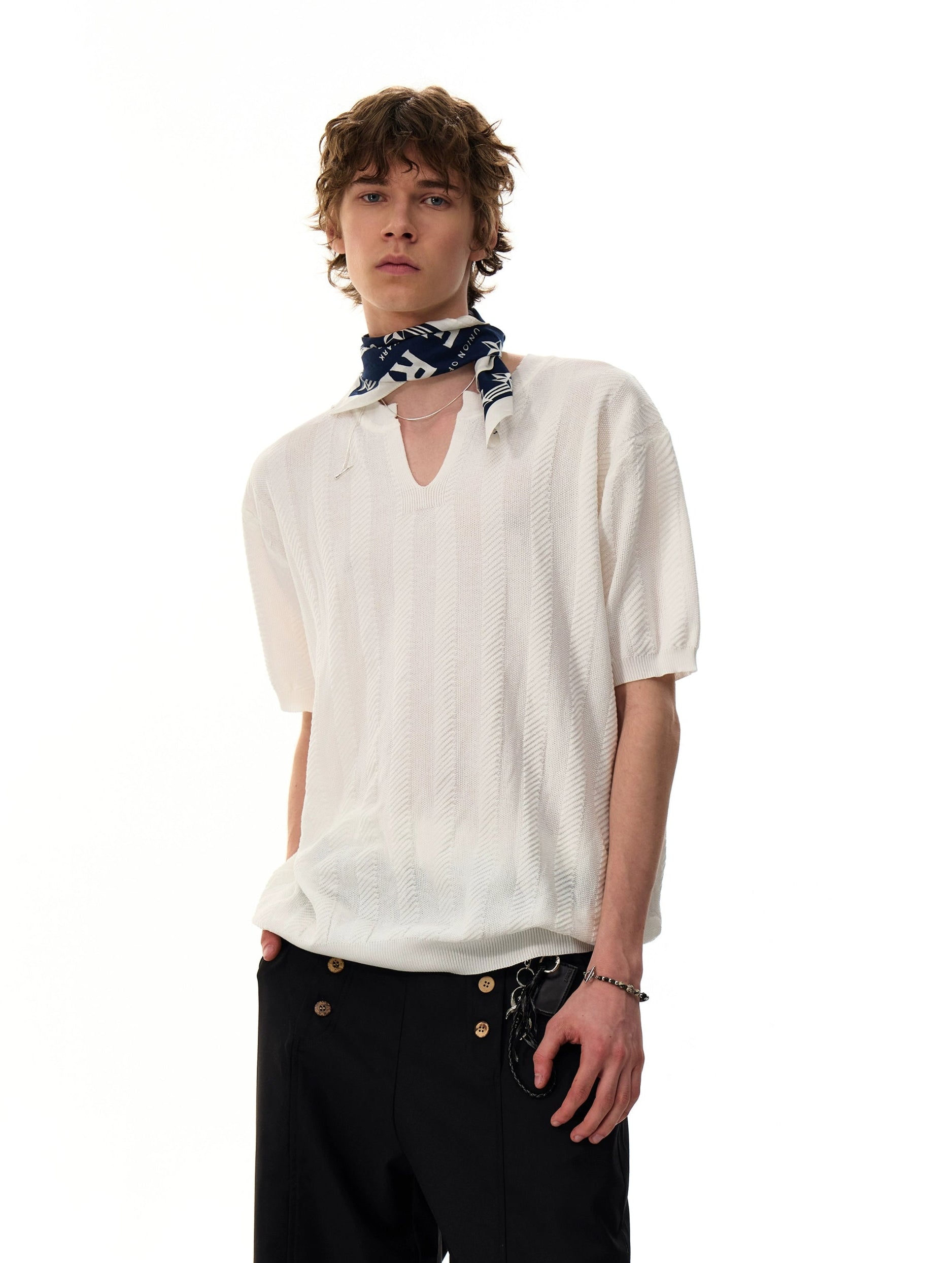 Designed for versatility, this short sleeve pairs easily with denim or relaxed trousers—whether you're off duty, out late, or circling the city solo. Its loose fit and finished knit structure reflect a modern take on vintage ease—made for those who value personal style over trends.