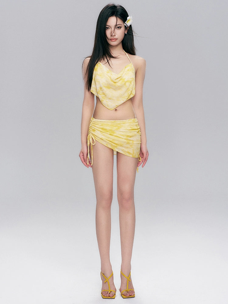 Tie-Dye Cowl Neck Bikini with Side-Tie Sarong
