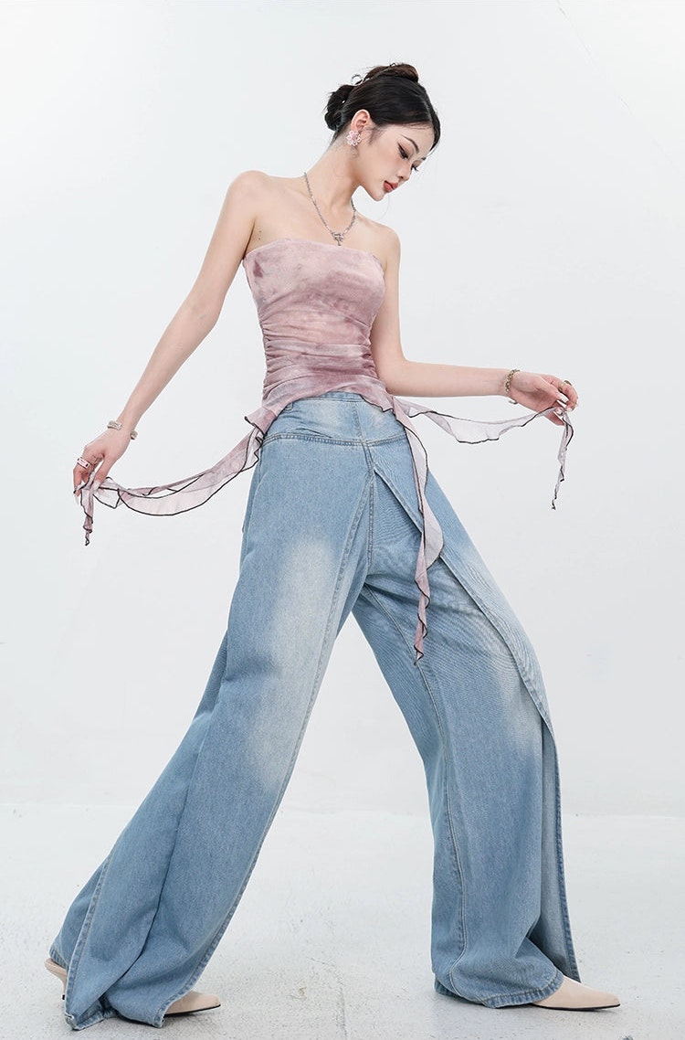 This piece stands as a testament to the effervescent yet relaxed spirit of contemporary fashion. Crafted from a delicate tulle mesh, this top features a playful tie-dye pattern, giving each piece a unique character. Ruffled edges cascade to enhance the texture, creating an ensemble that is as breezy as it is beautiful. Its slim-fit cut brings a touch of elegance to the casual style, allowing for versatile wear from day to night.