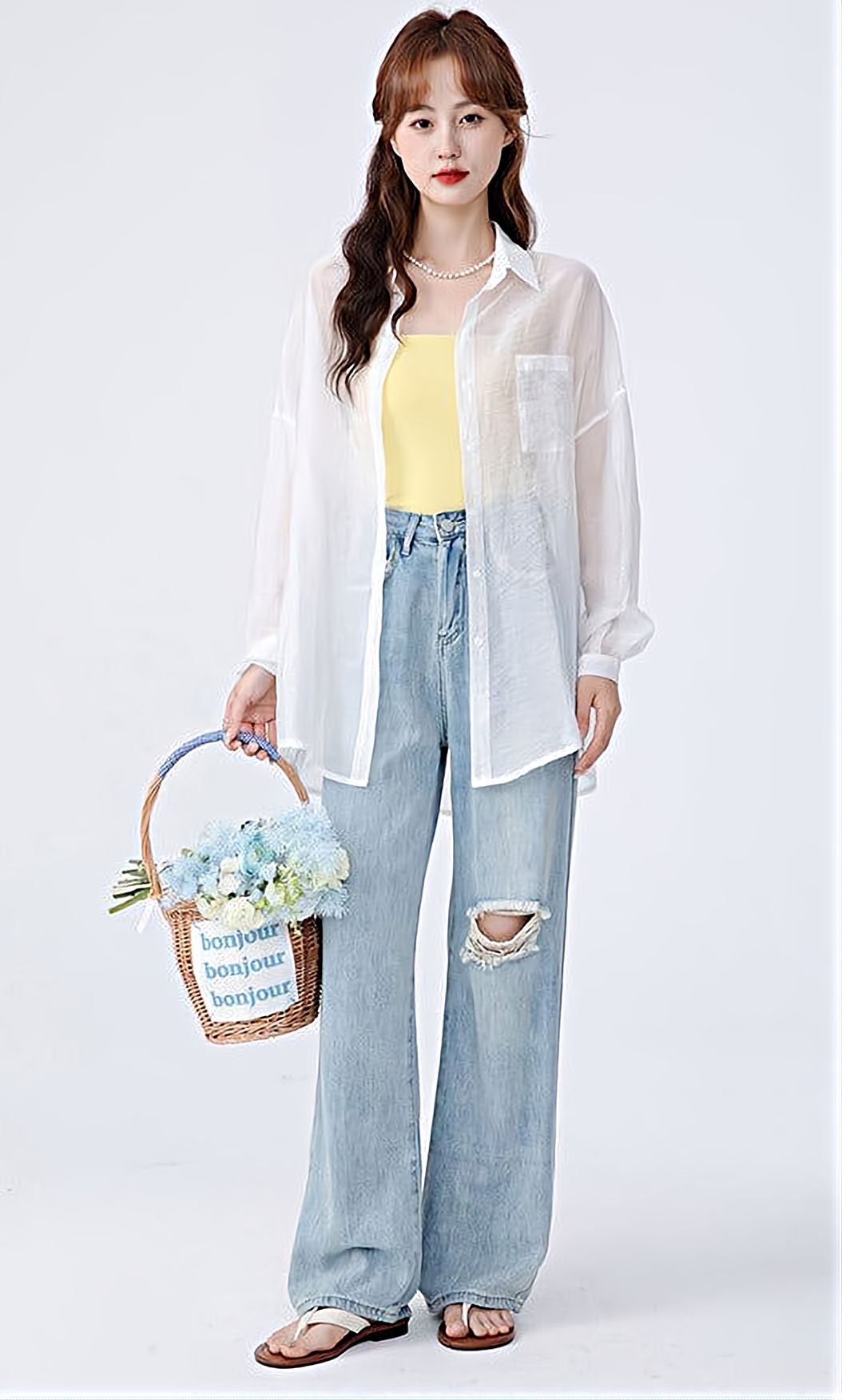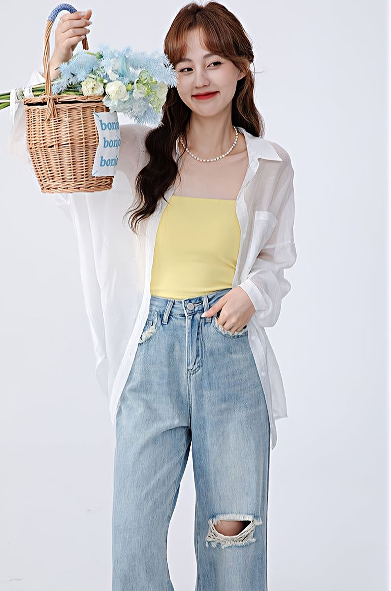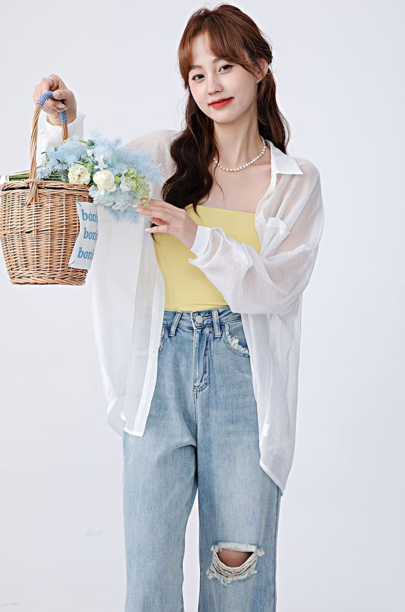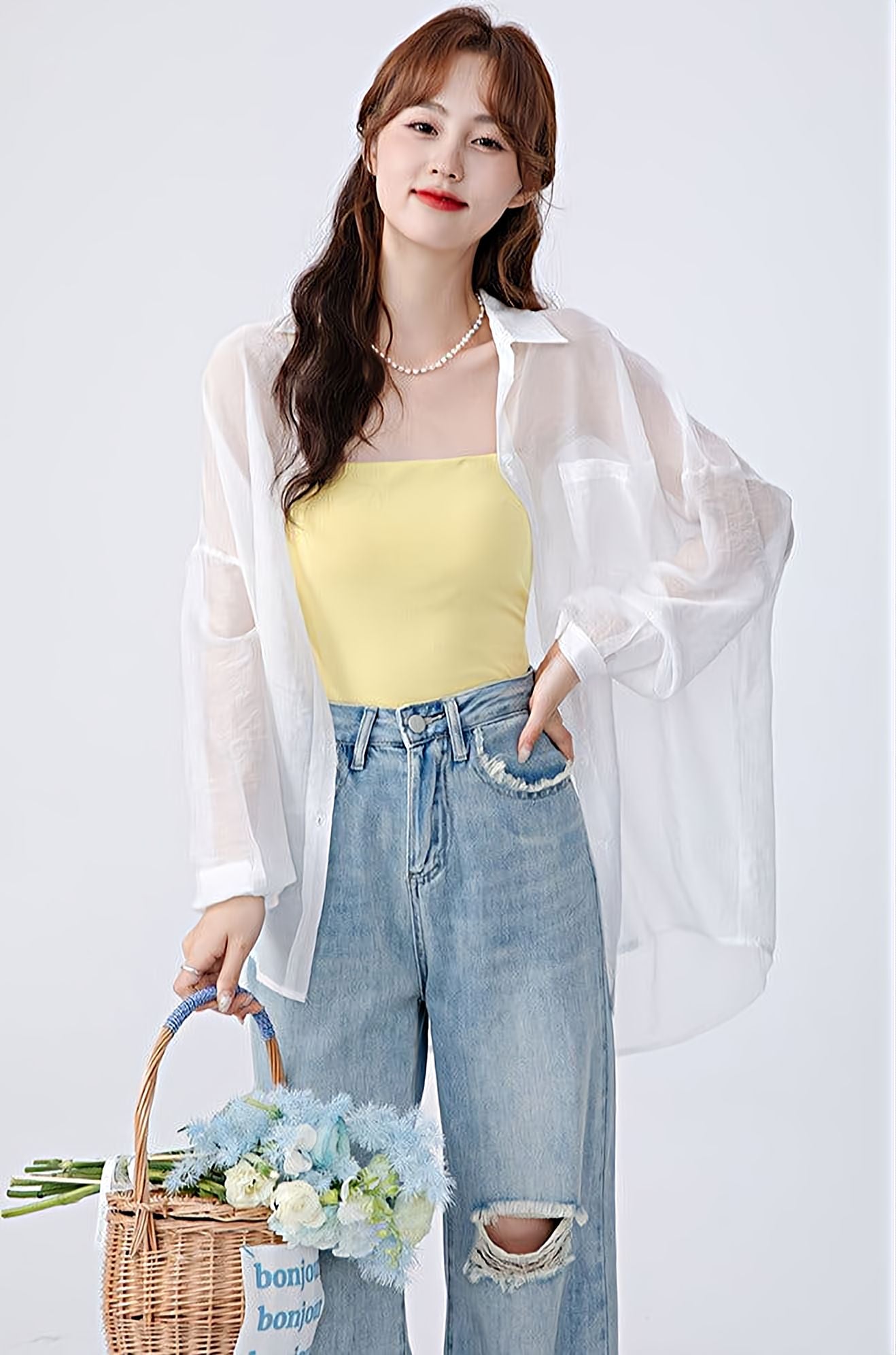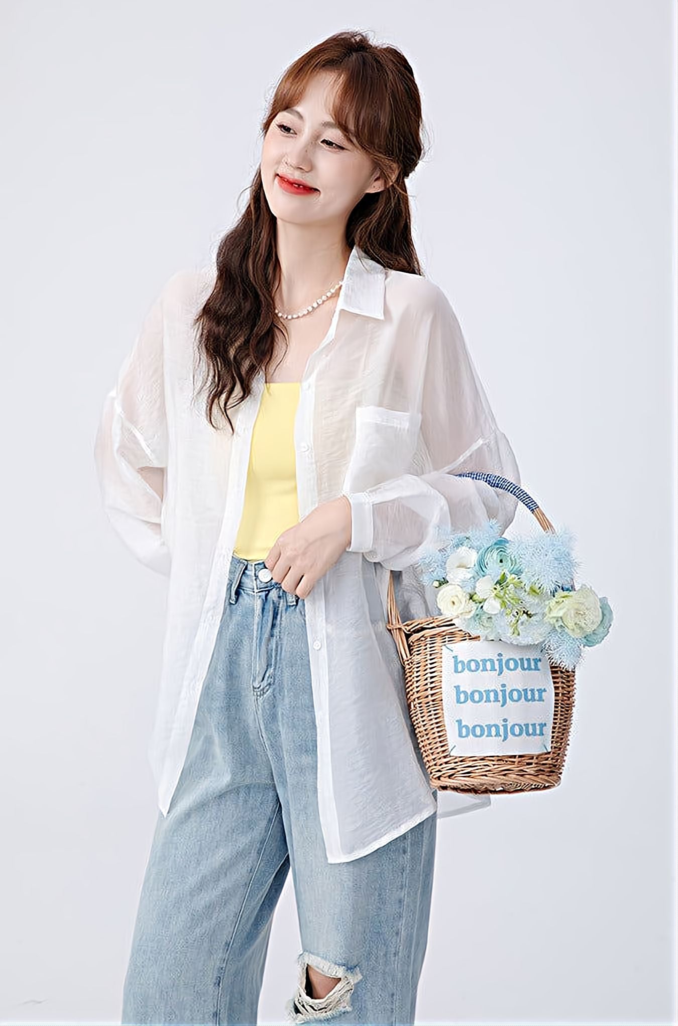 Read full Return PolicyThis Translucent Long Sleeve Button Shirt is a casual must-have for your wardrobe. The lightweight material will layer easily over any top, and the oversized fit allows for all day comfort. Pair it with a skirt or jeans for effortless style, and enjoy the see-through design for a unique look.