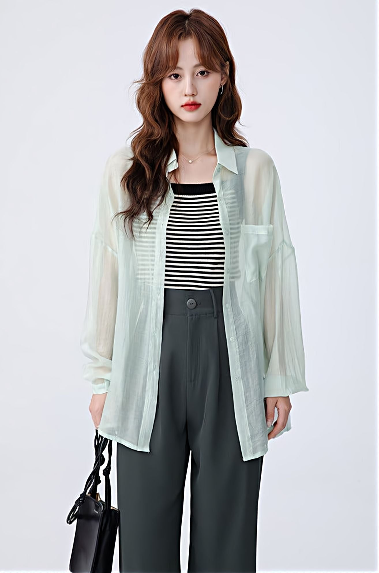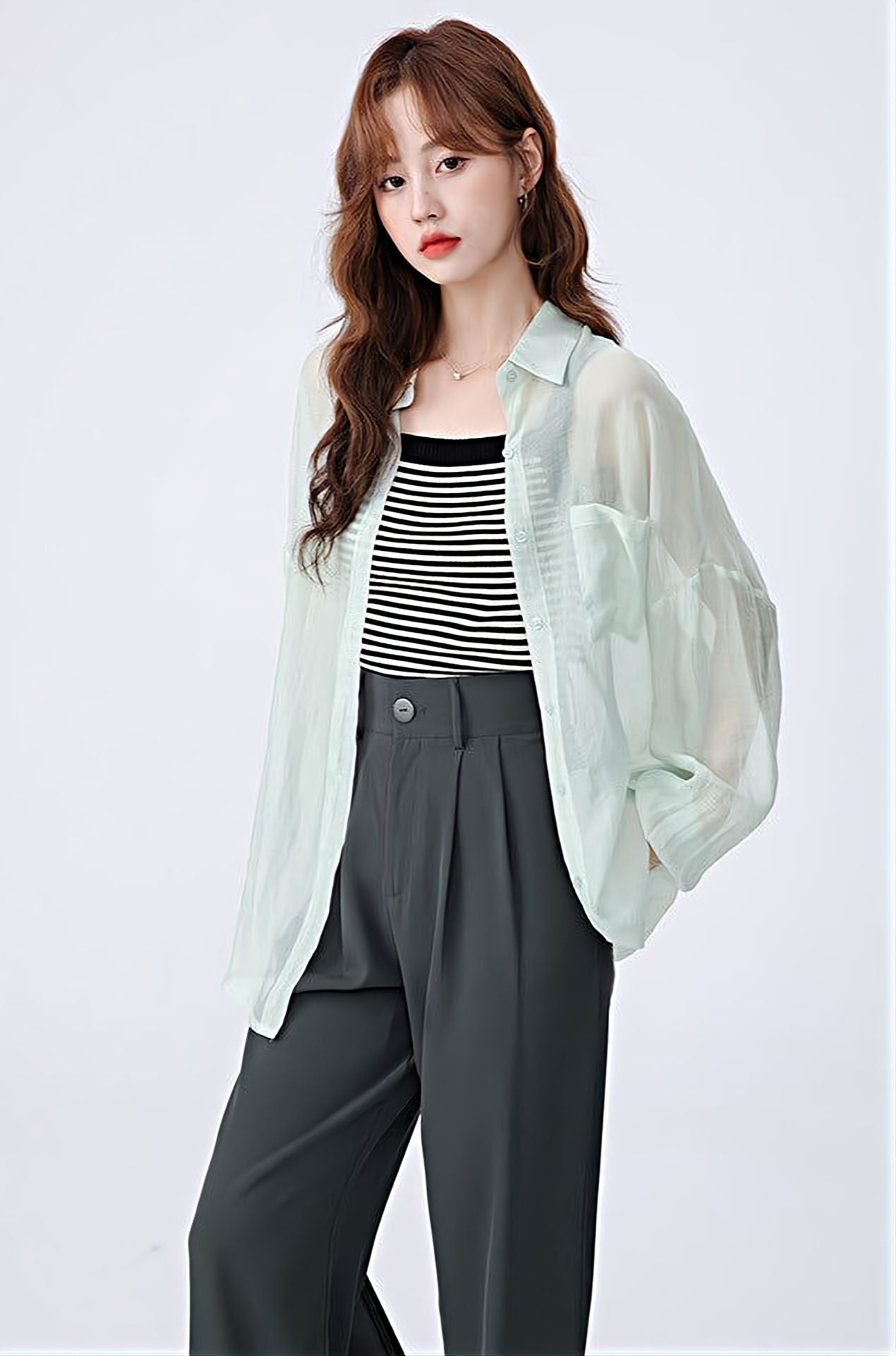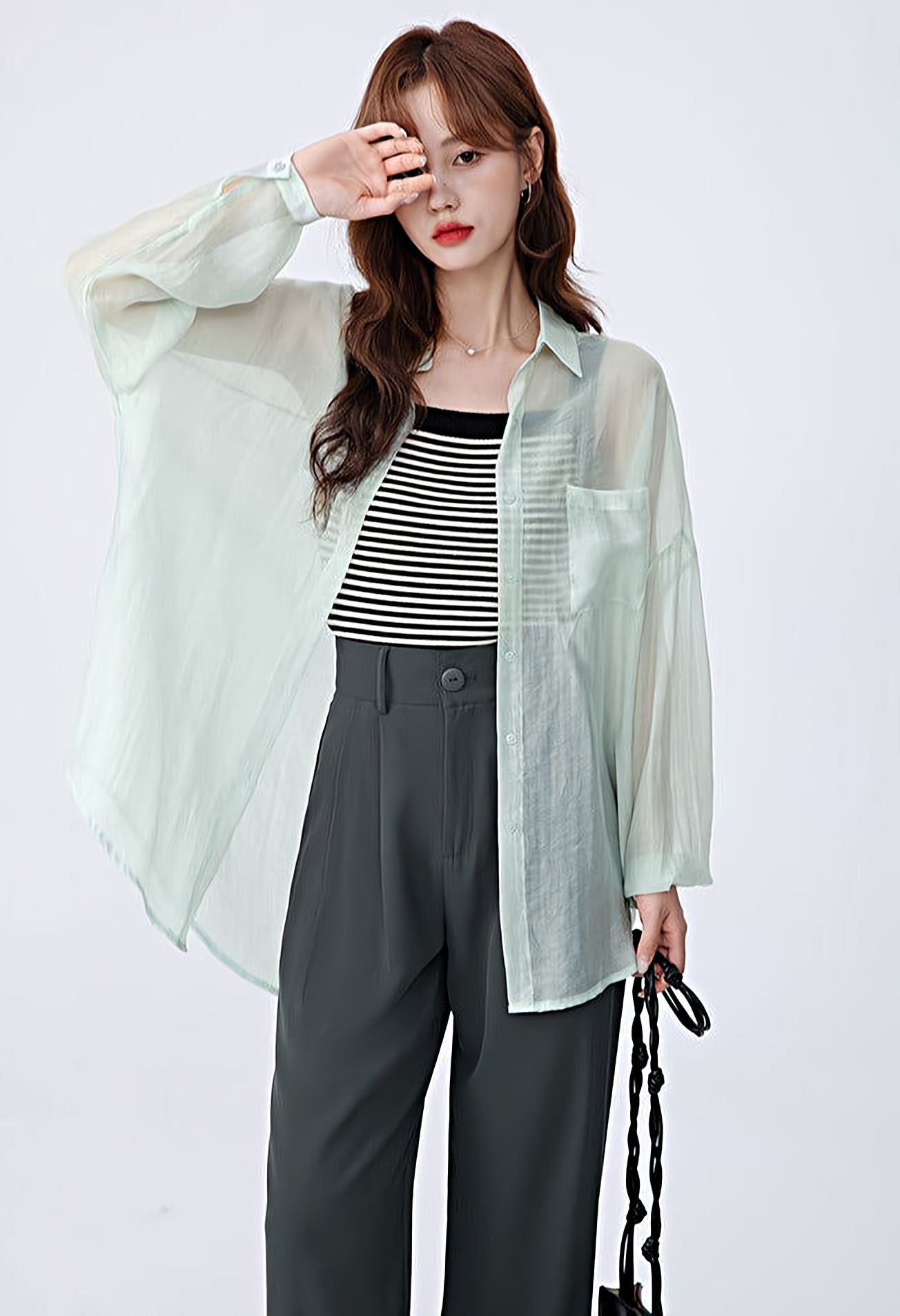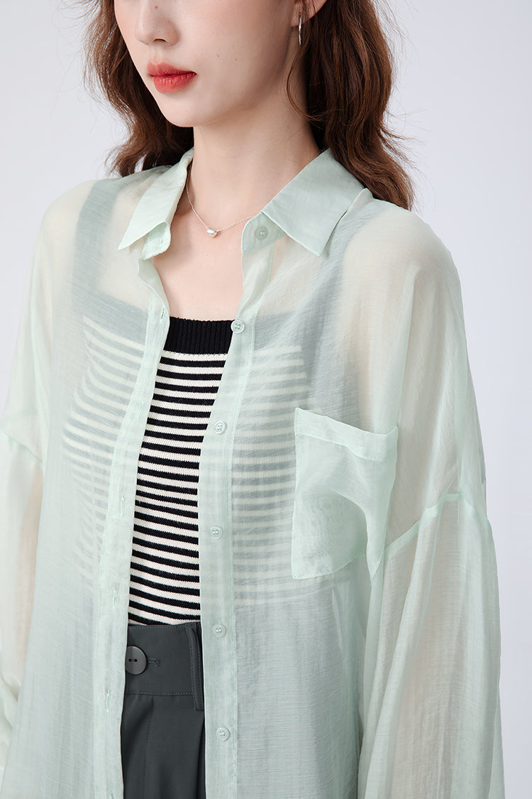 Translucent Long Sleeve Button Shirt