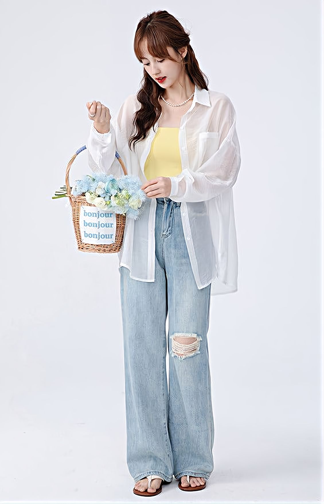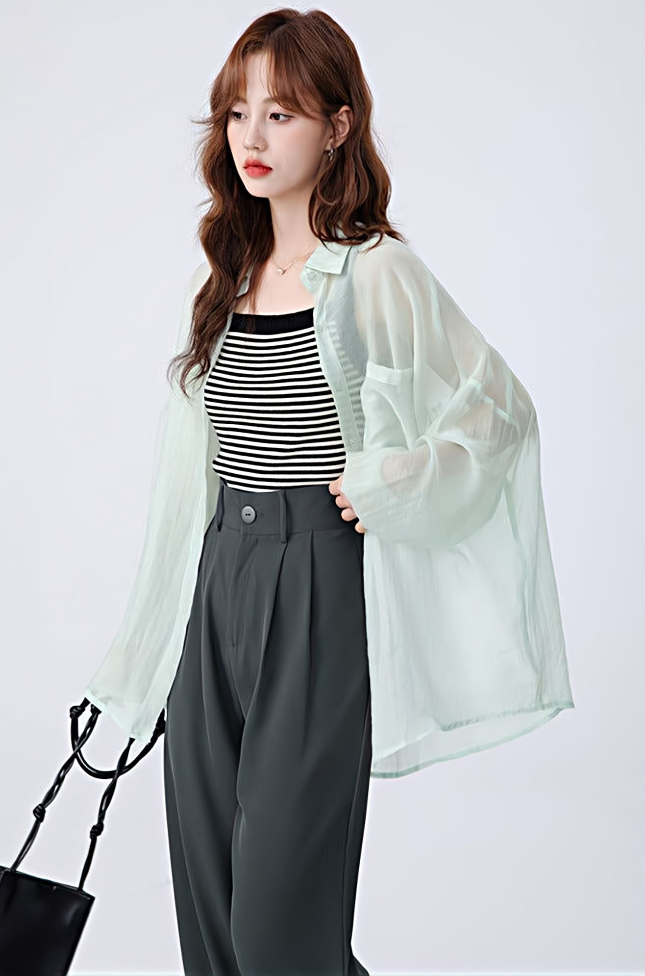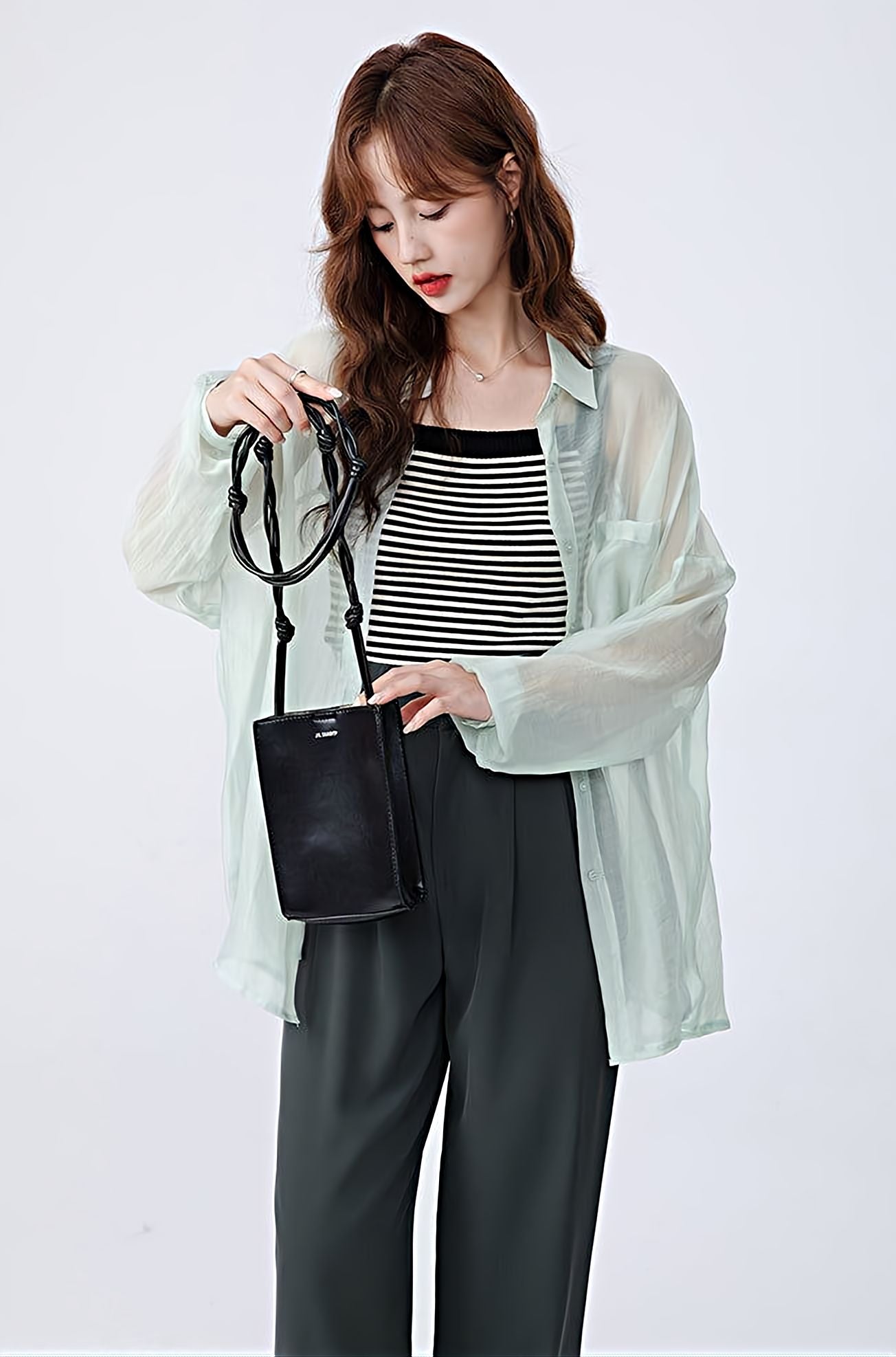 Translucent Long Sleeve Button Shirt