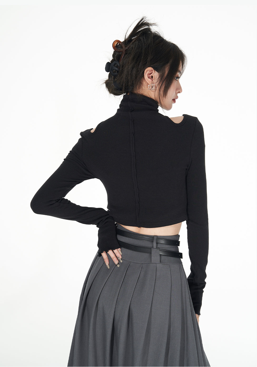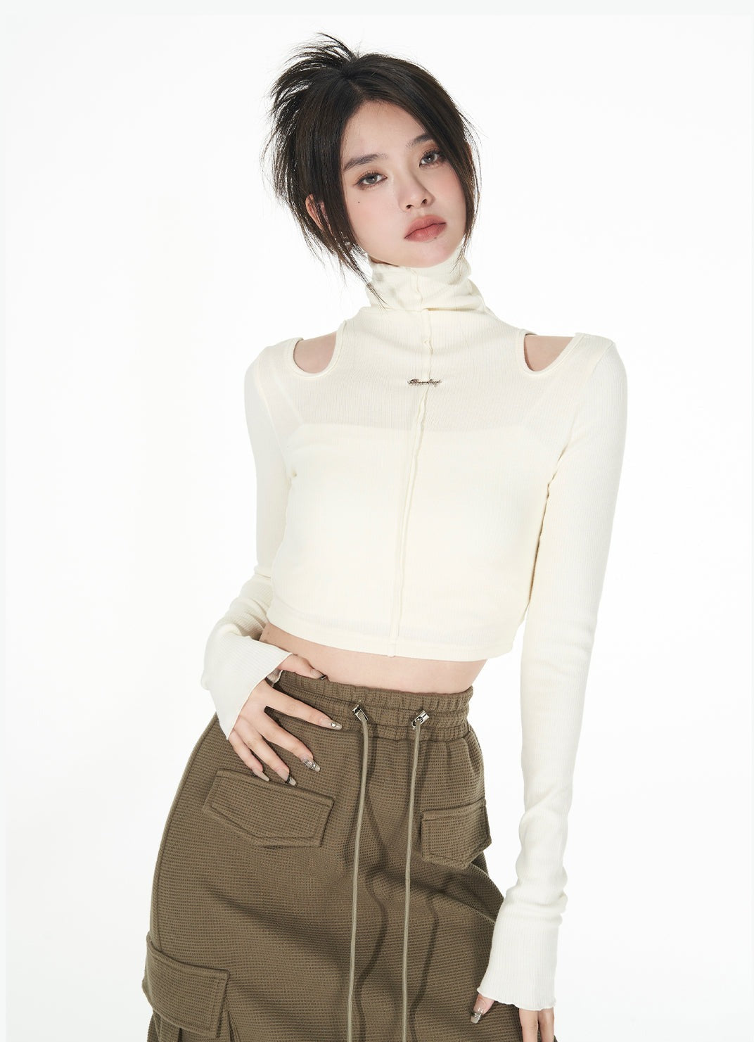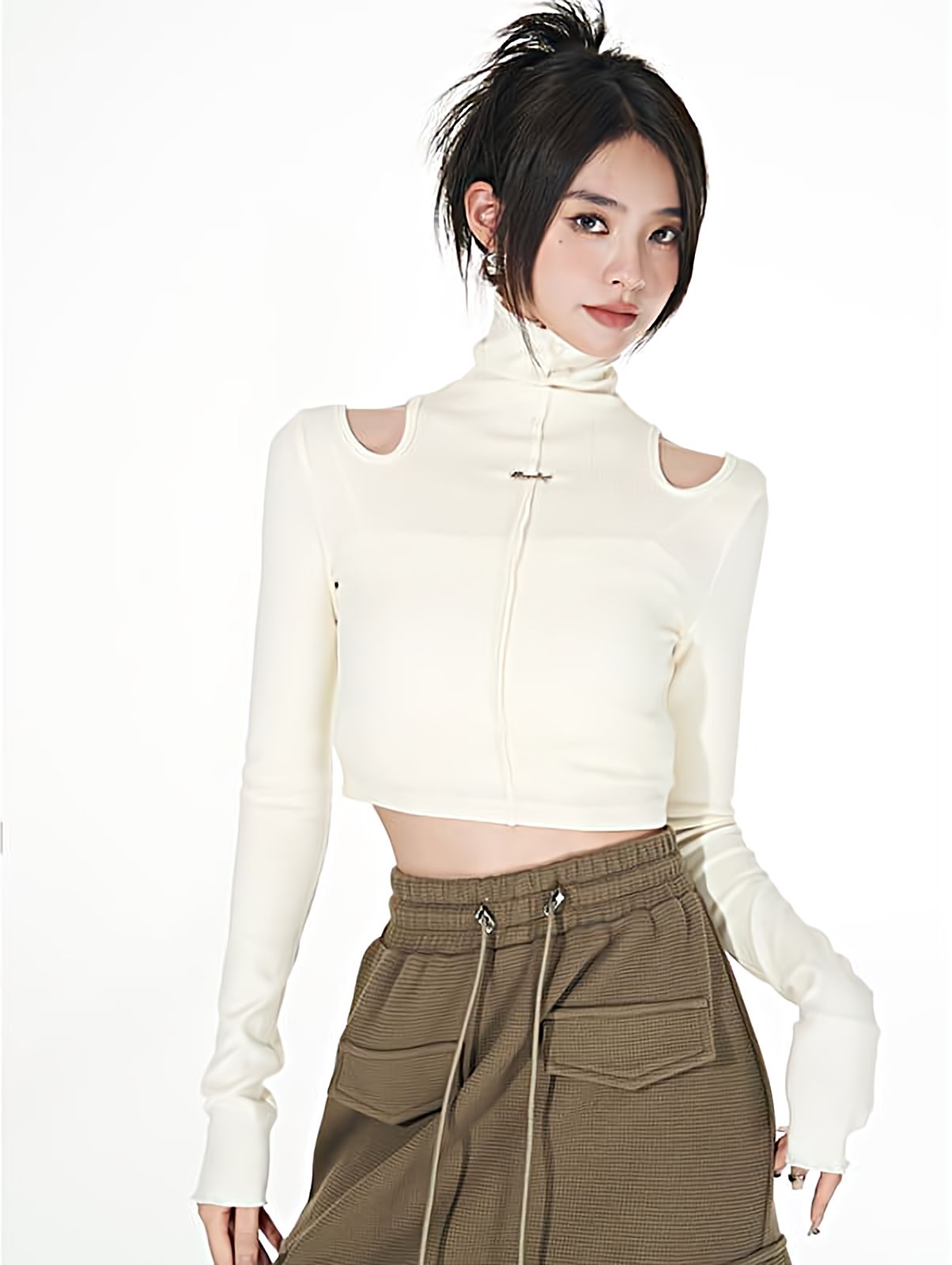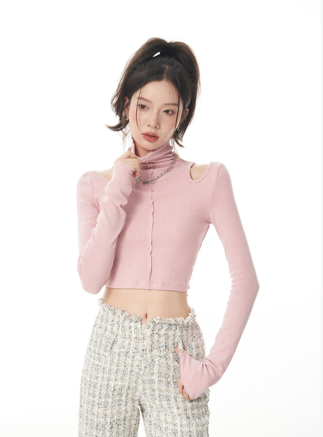 Turtle Neck Cold Shoulder Crop Top