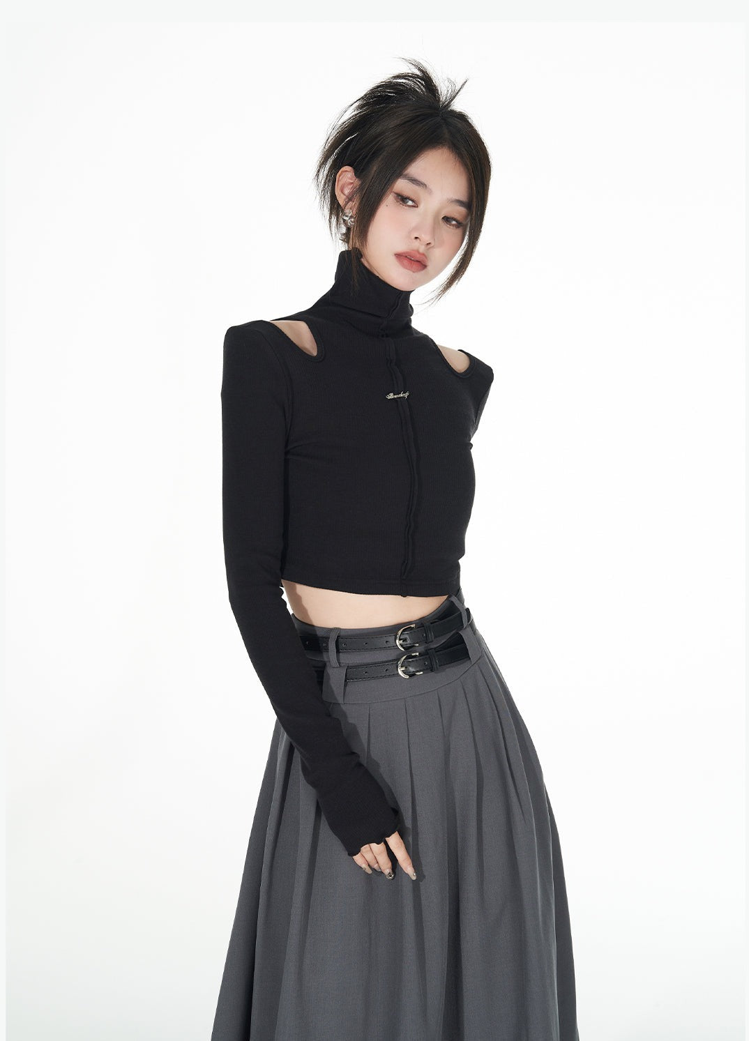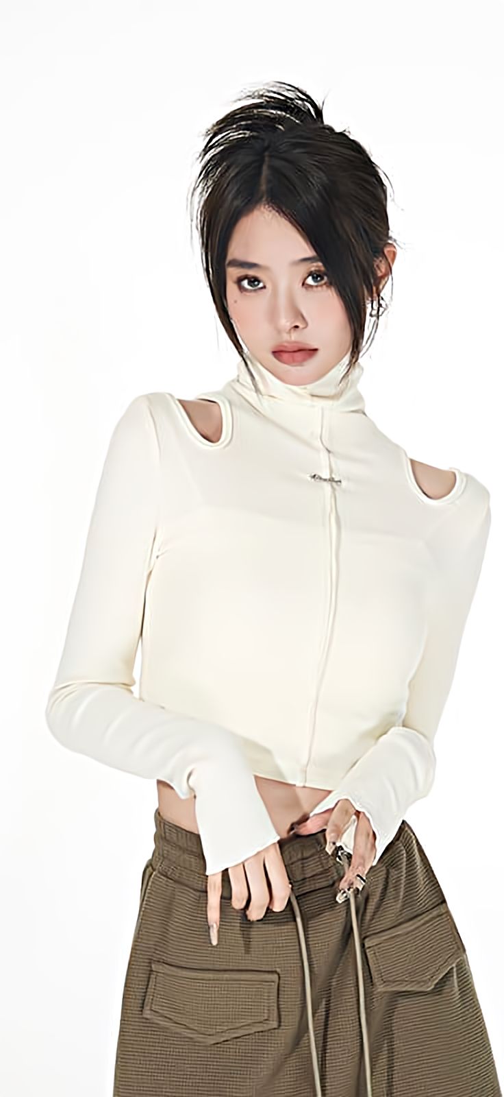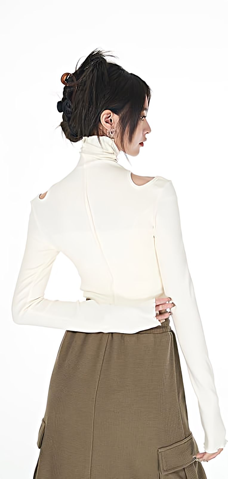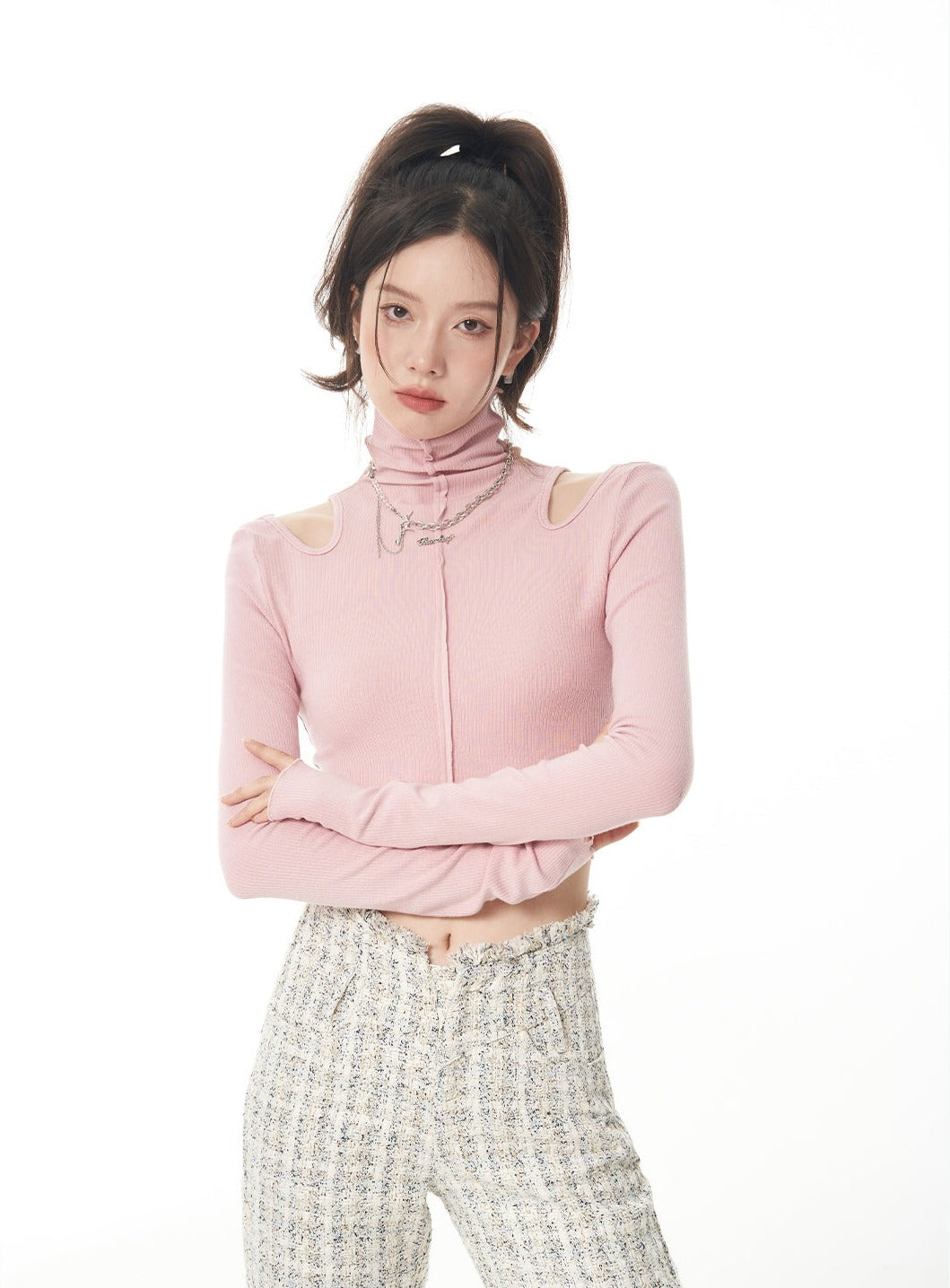 Turtle Neck Cold Shoulder Crop Top