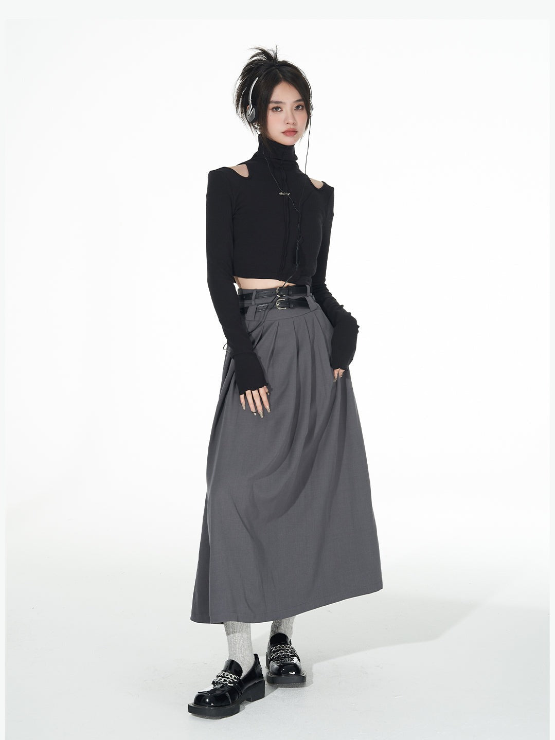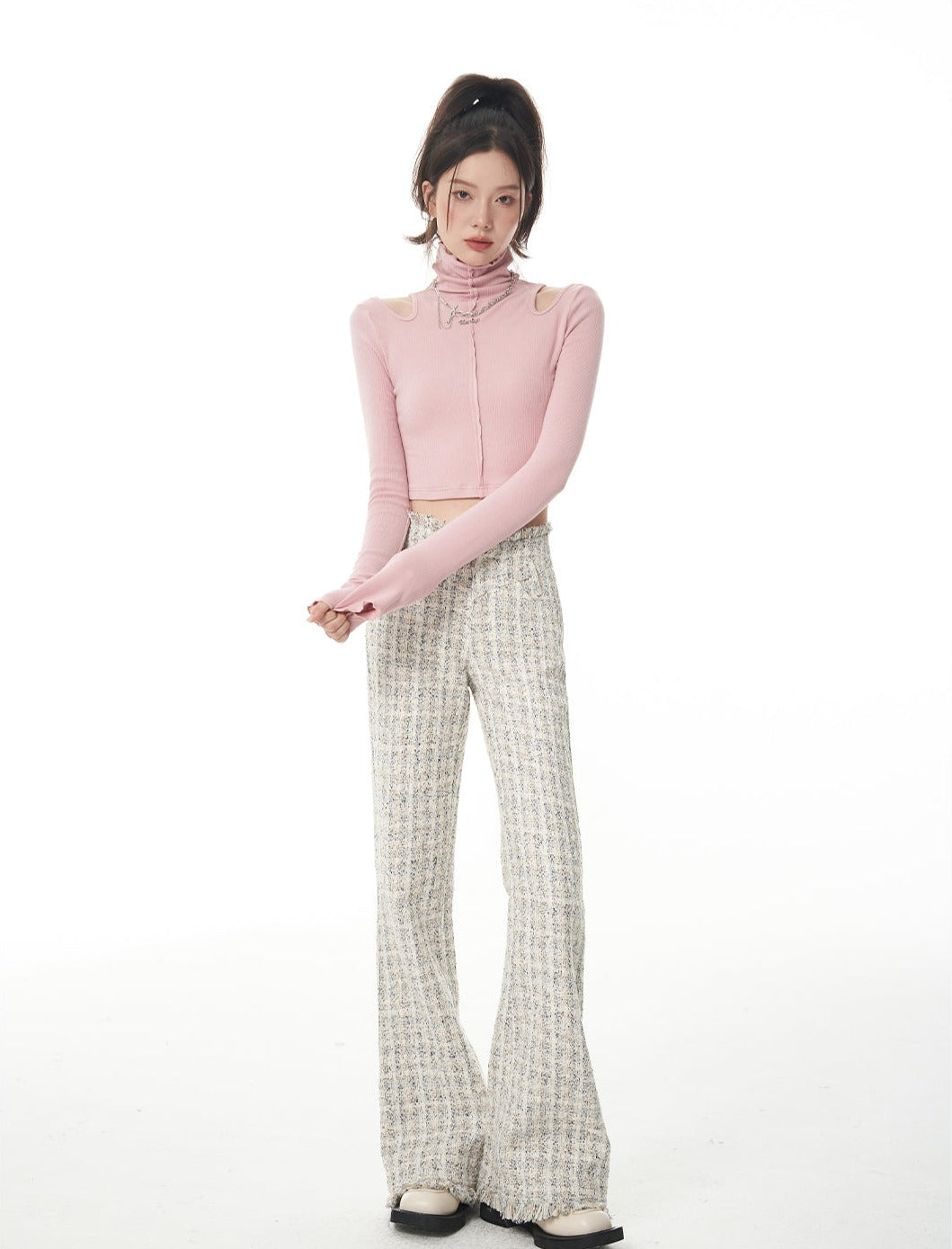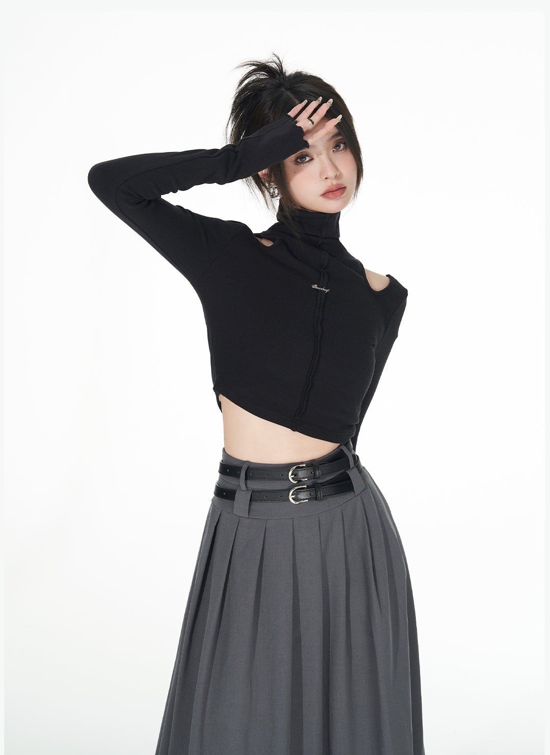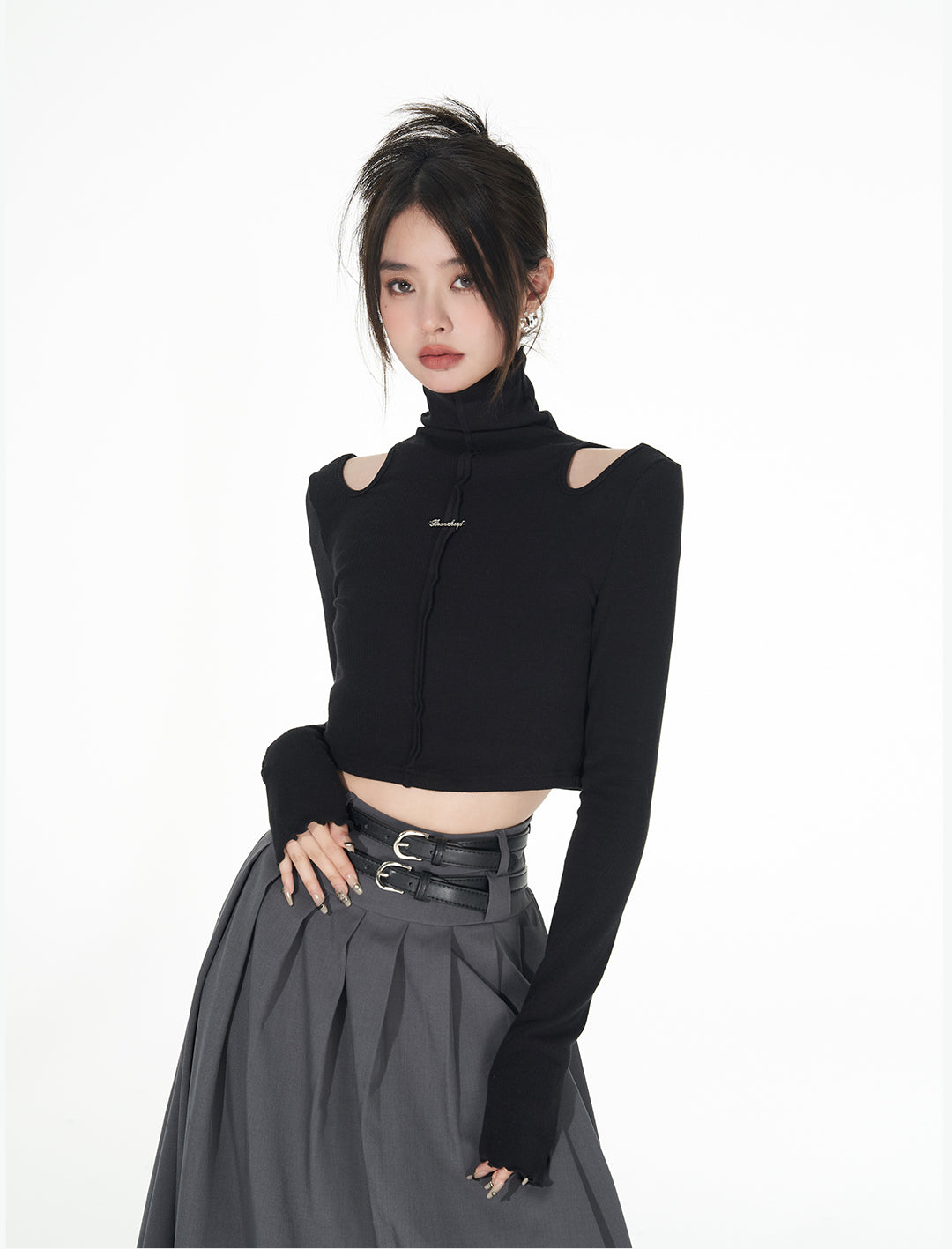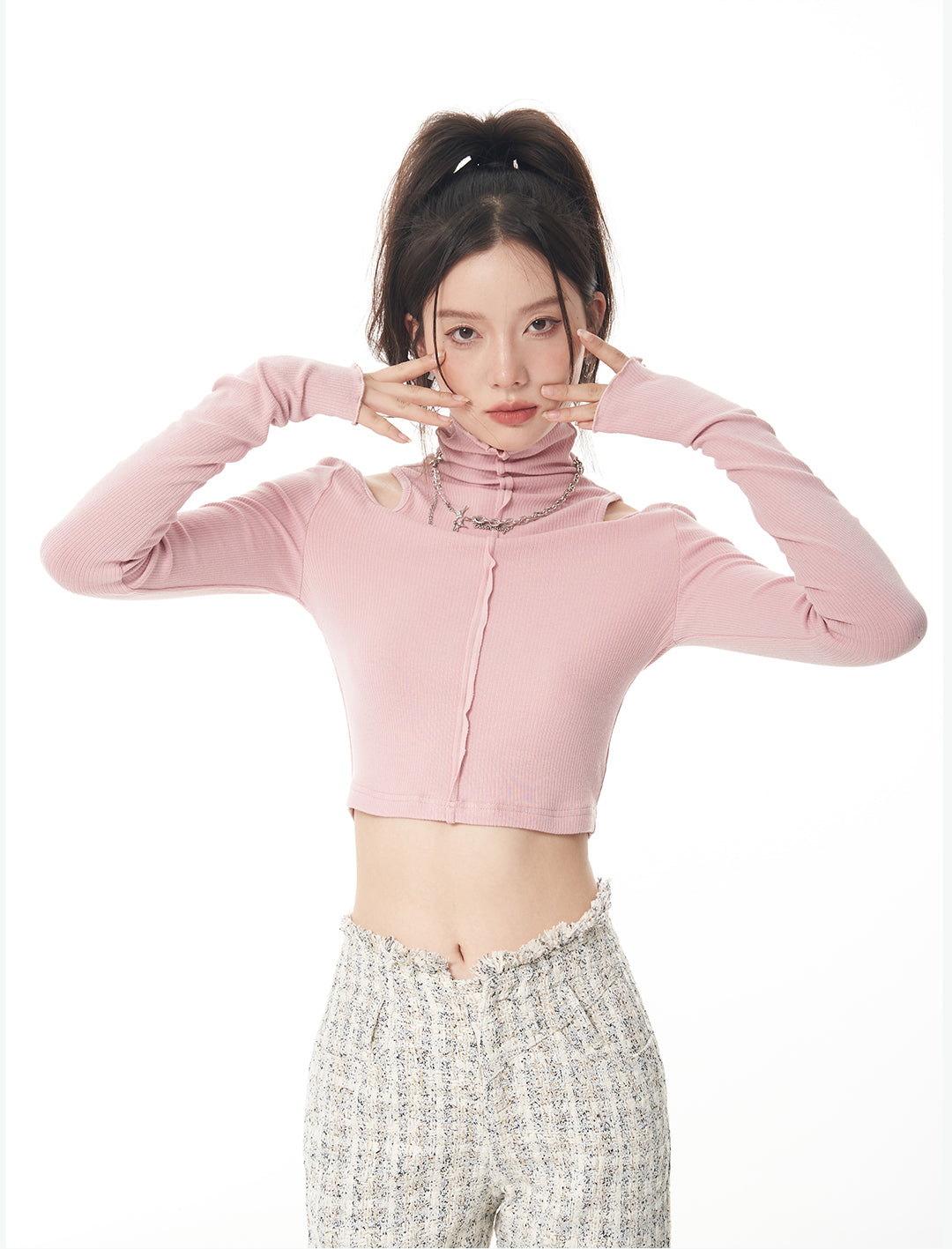 Turtle Neck Cold Shoulder Crop Top