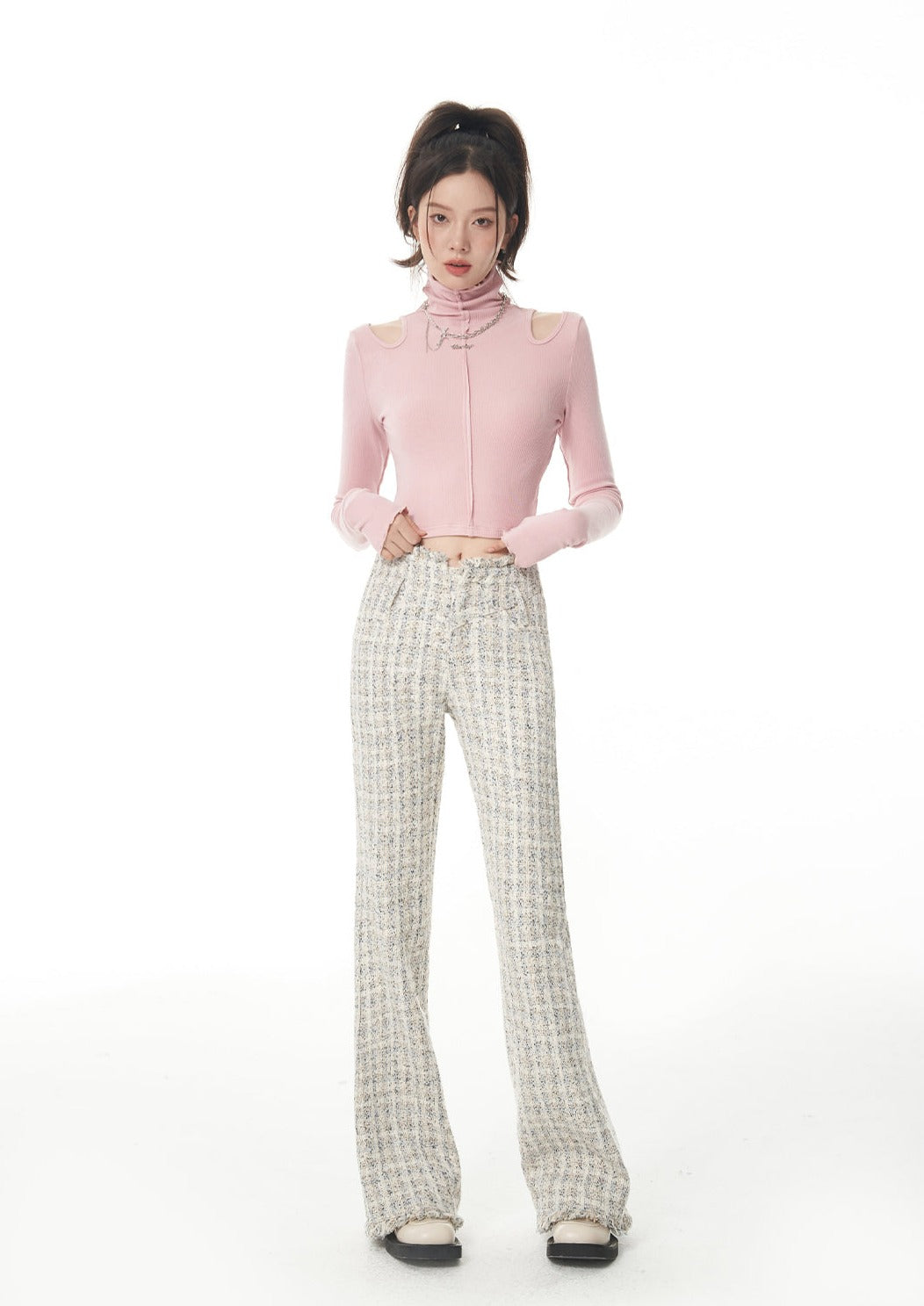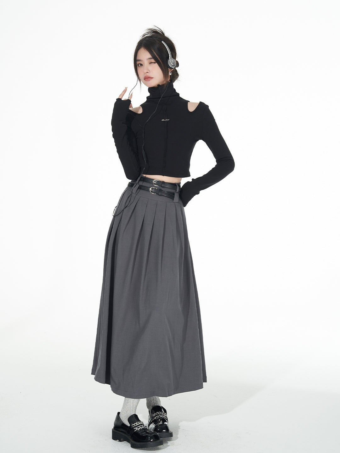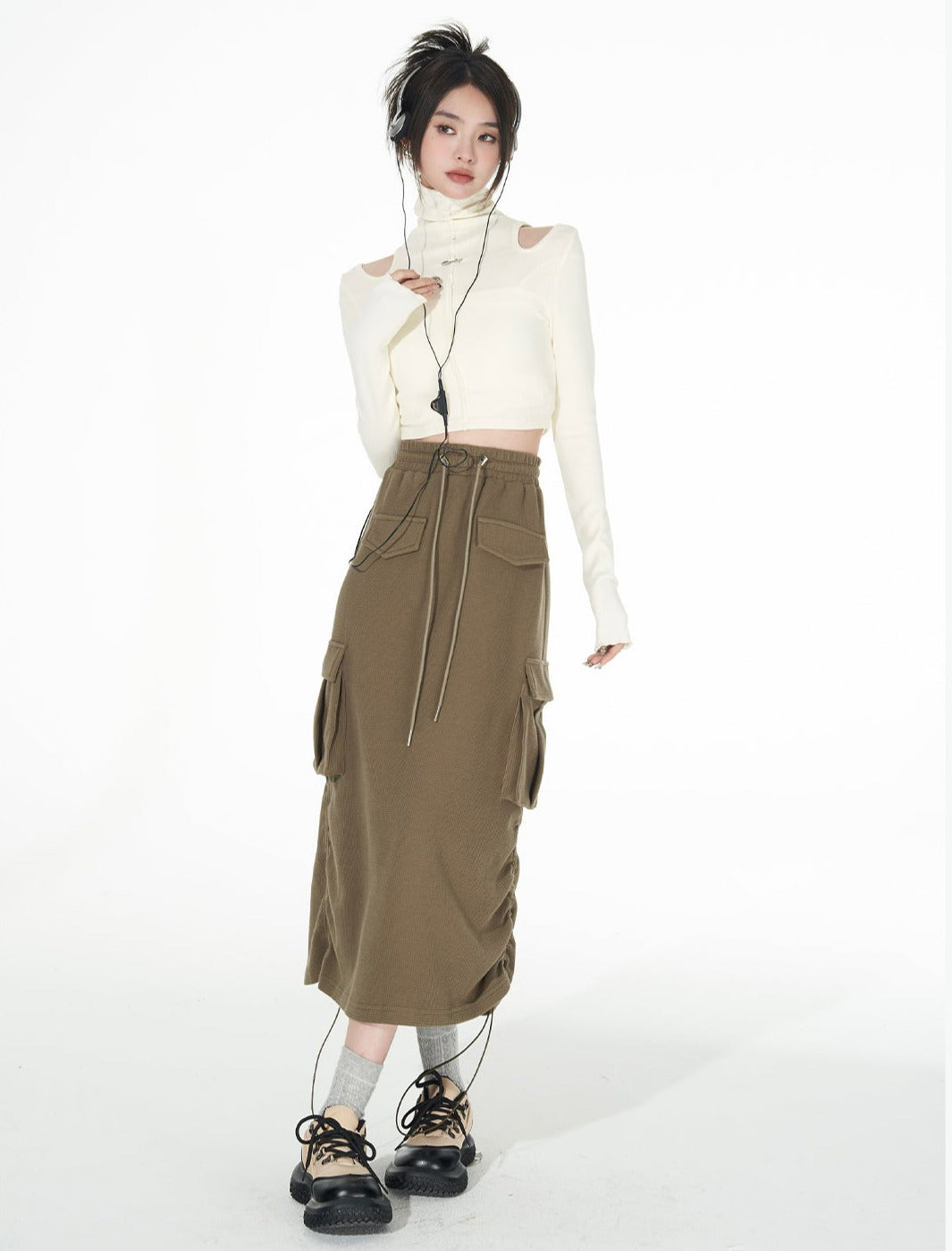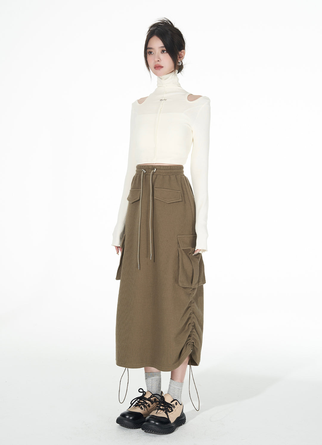 Turtle Neck Cold Shoulder Crop Top
