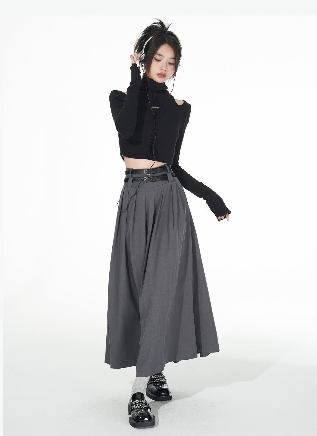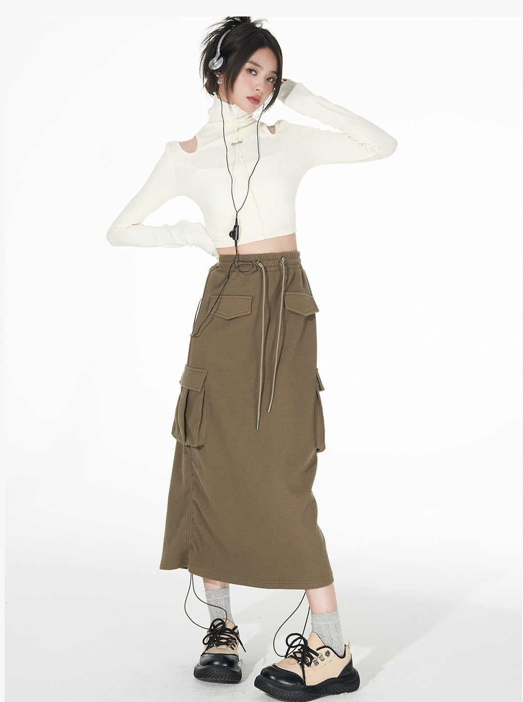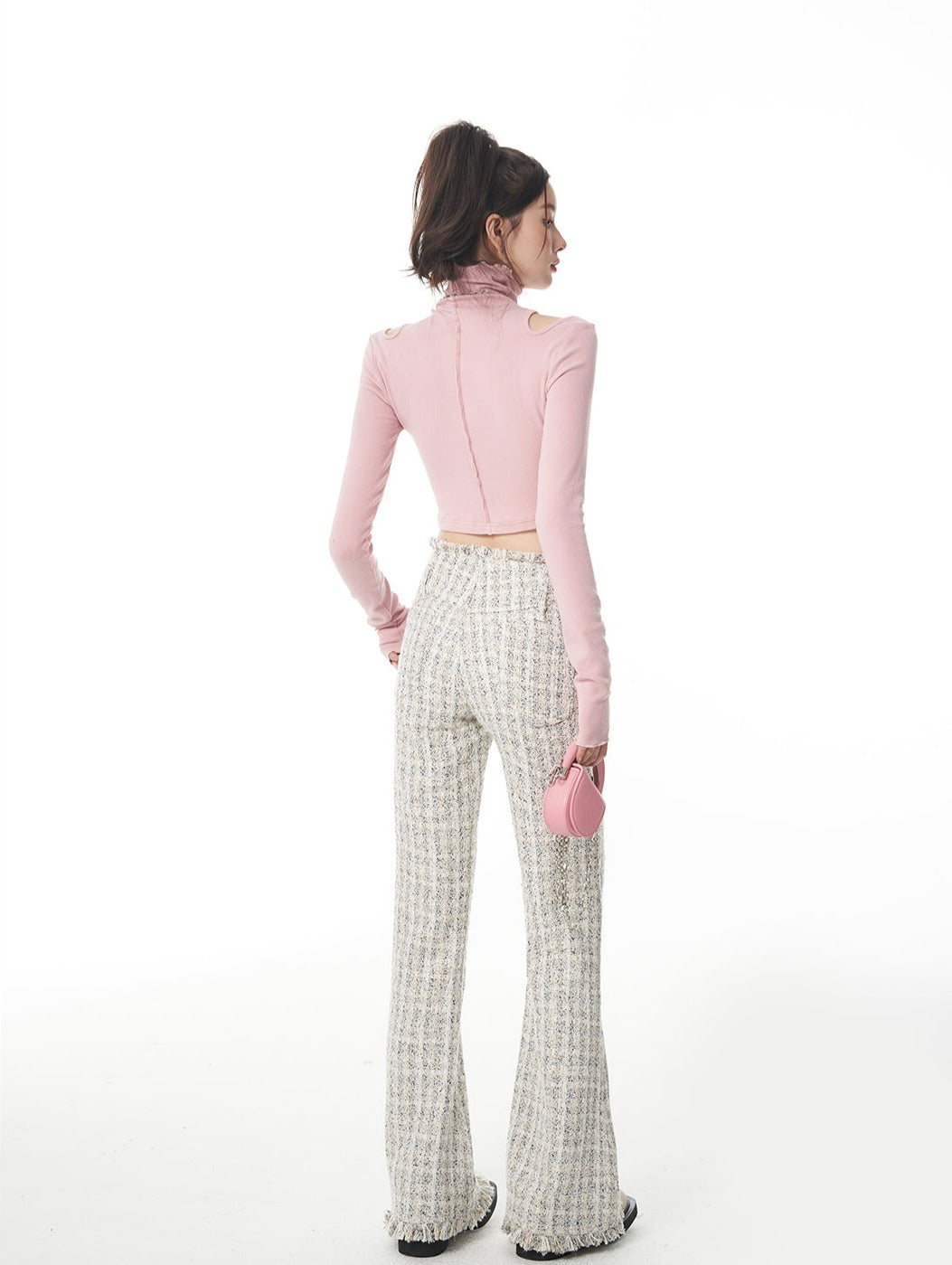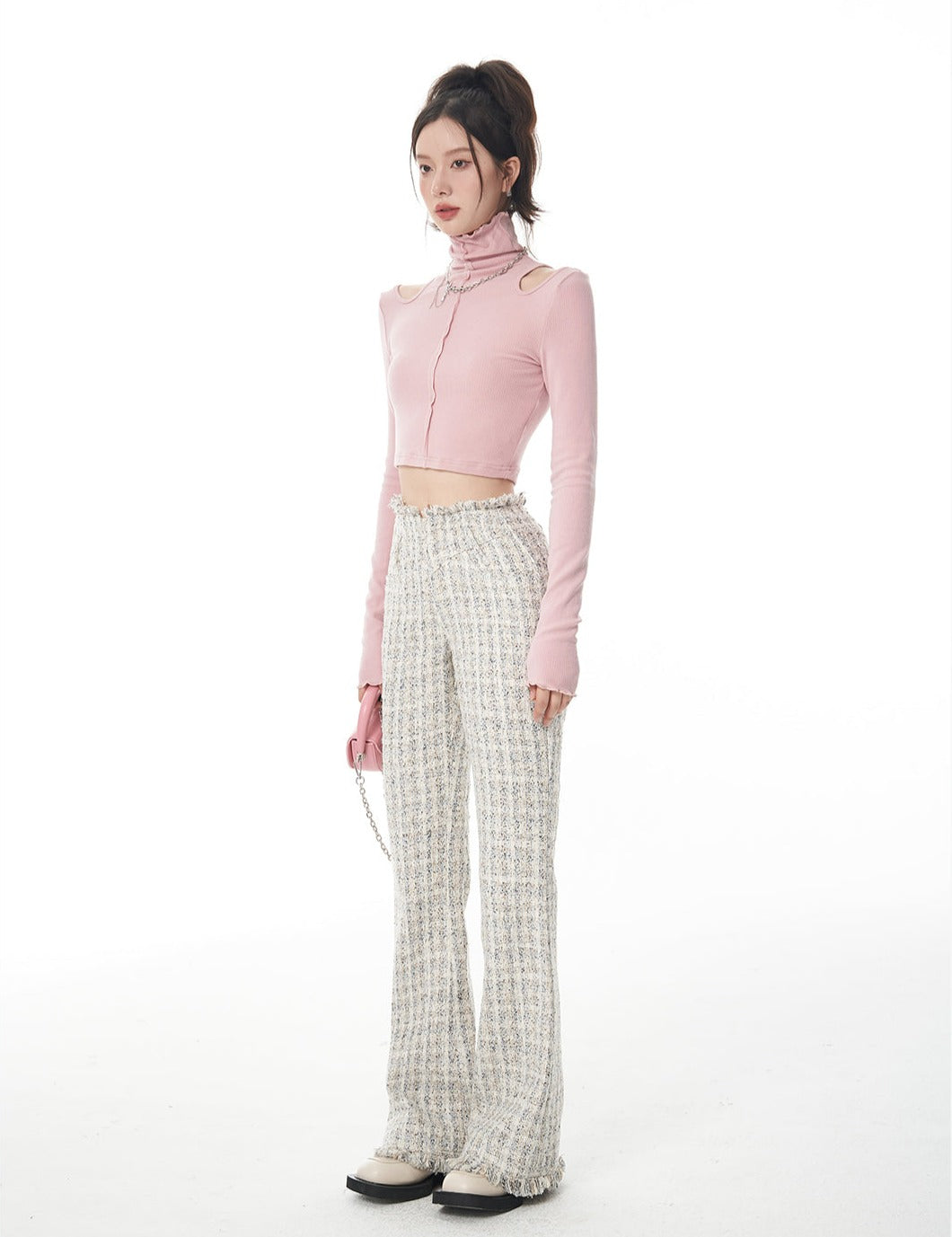 Turtle Neck Cold Shoulder Crop Top
