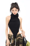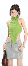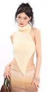 Turtleneck Pointed Hem Ribbed Top