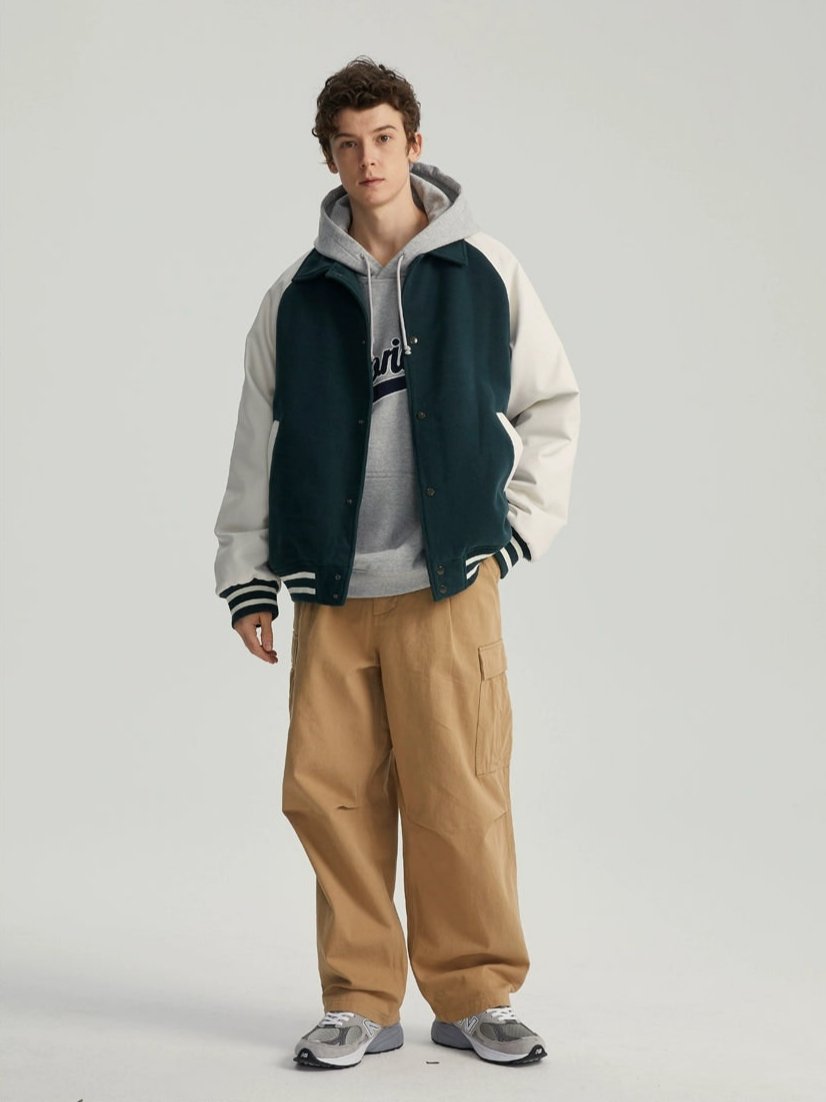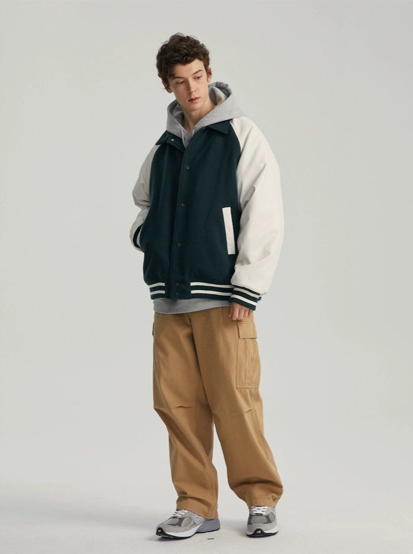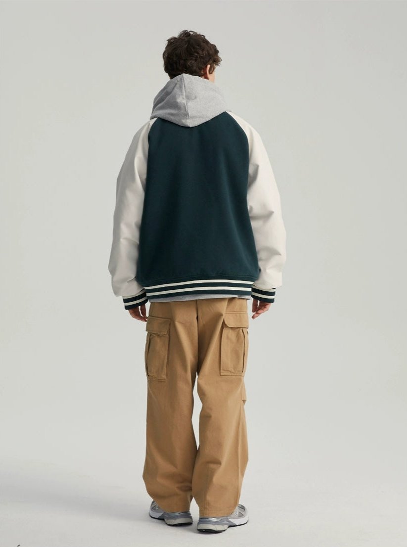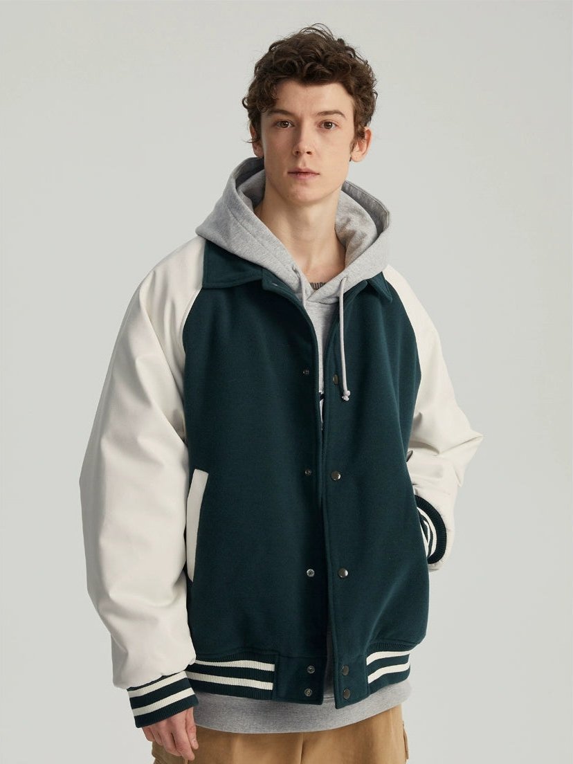 Varsity Bomber Jacket with Faux Leather Sleeves