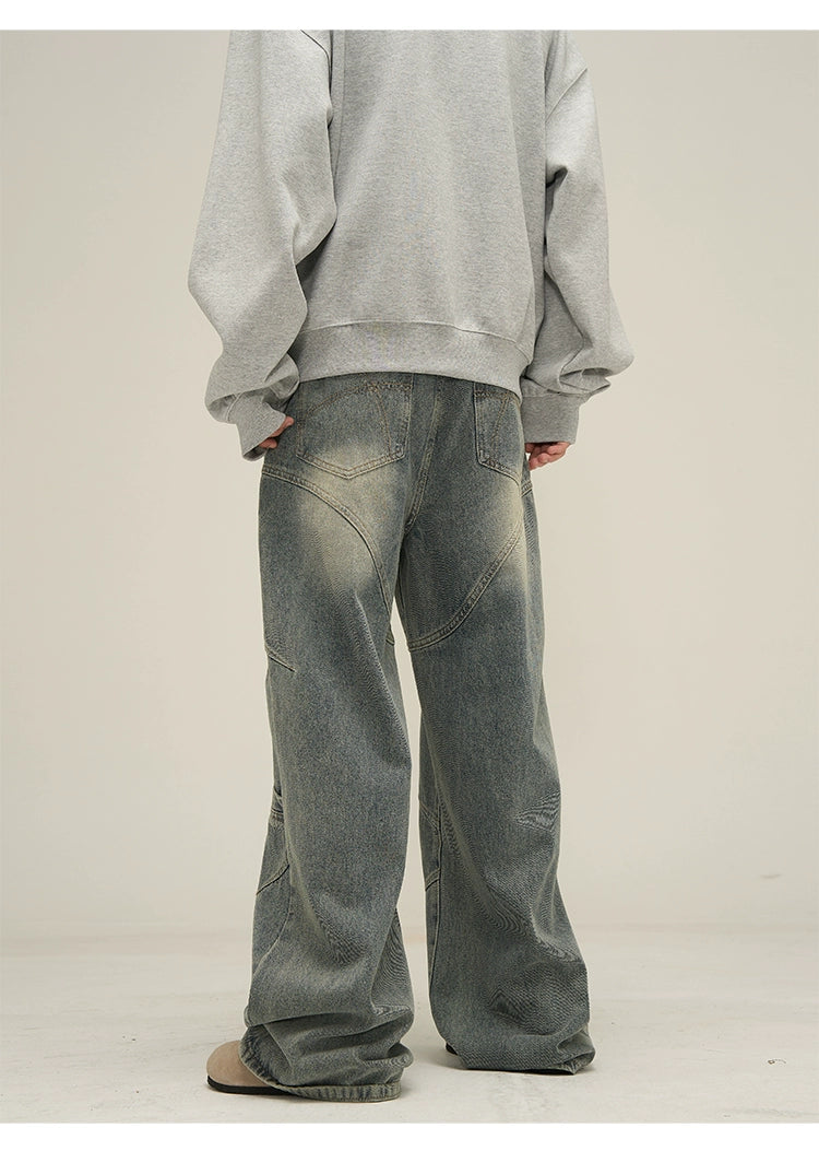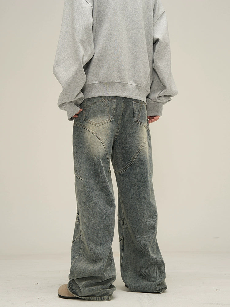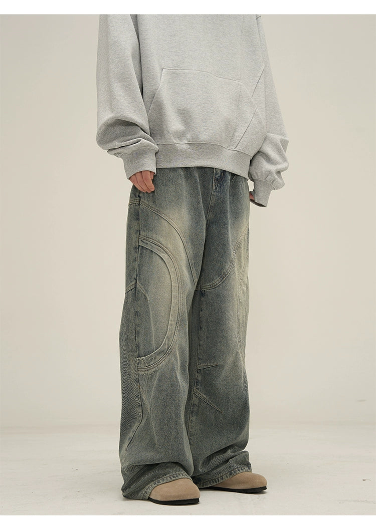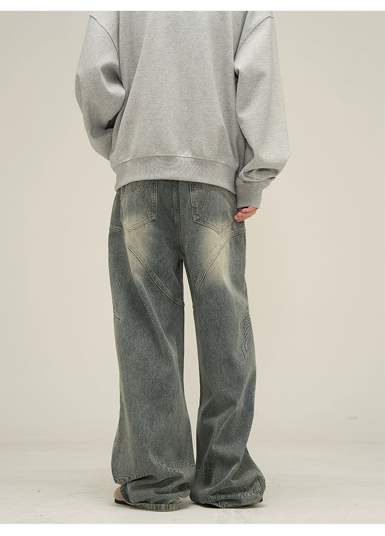 Vintage Sand Wash Wide-Leg Jeans with Stitch Detail