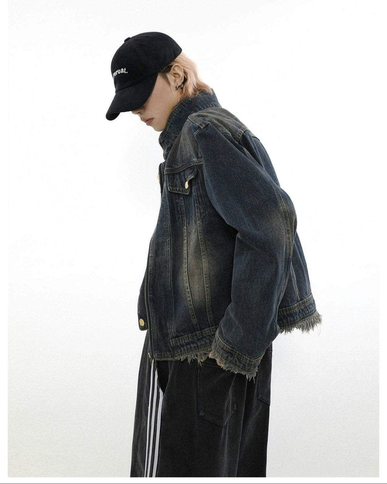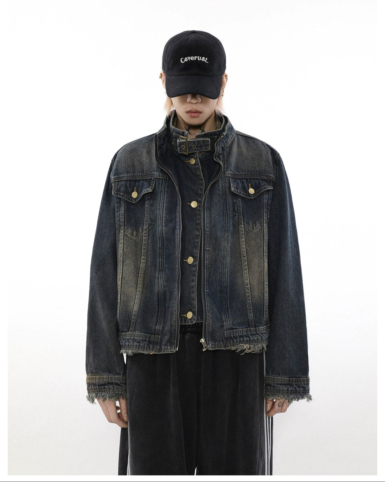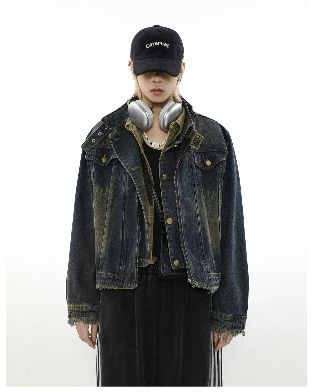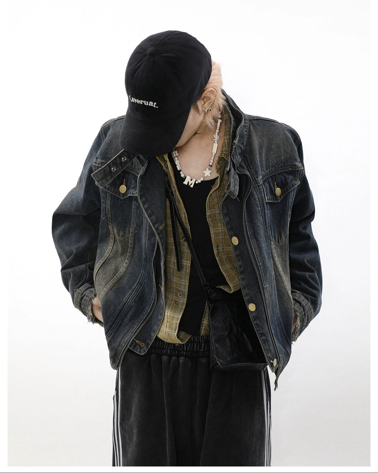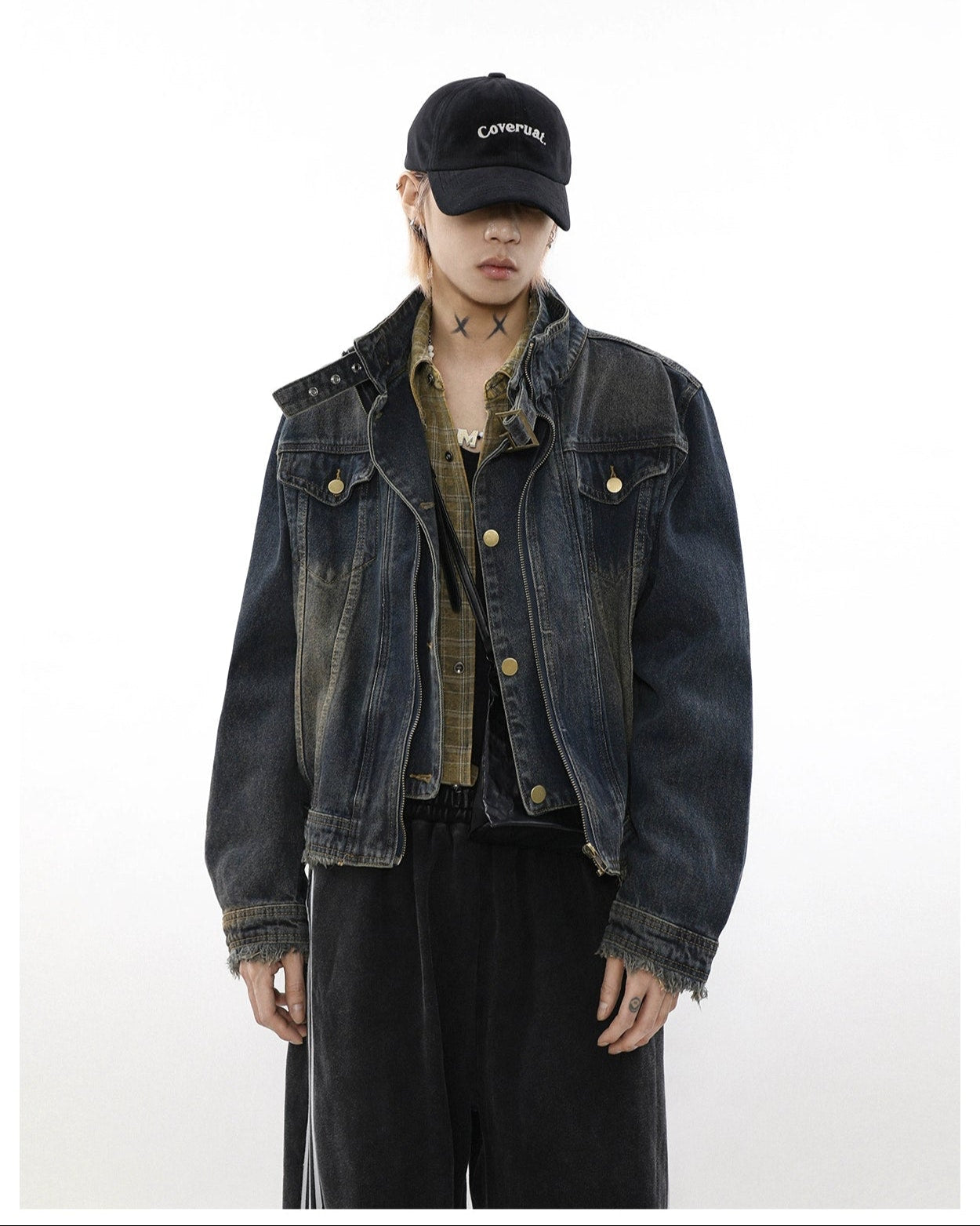 Vintage Wash Denim Trucker Mock-Layered Jacket