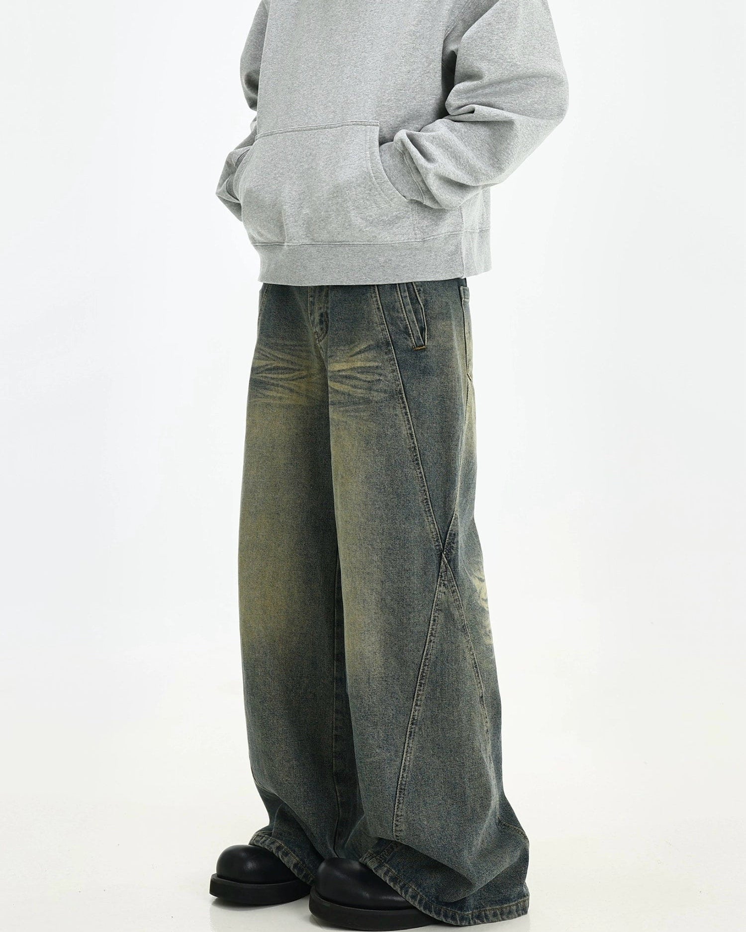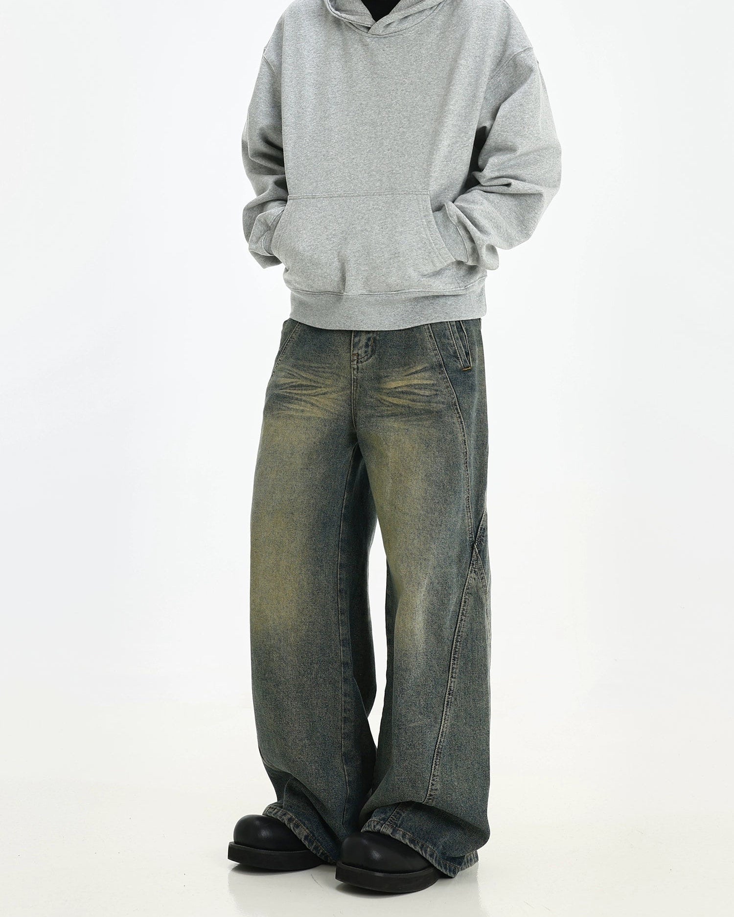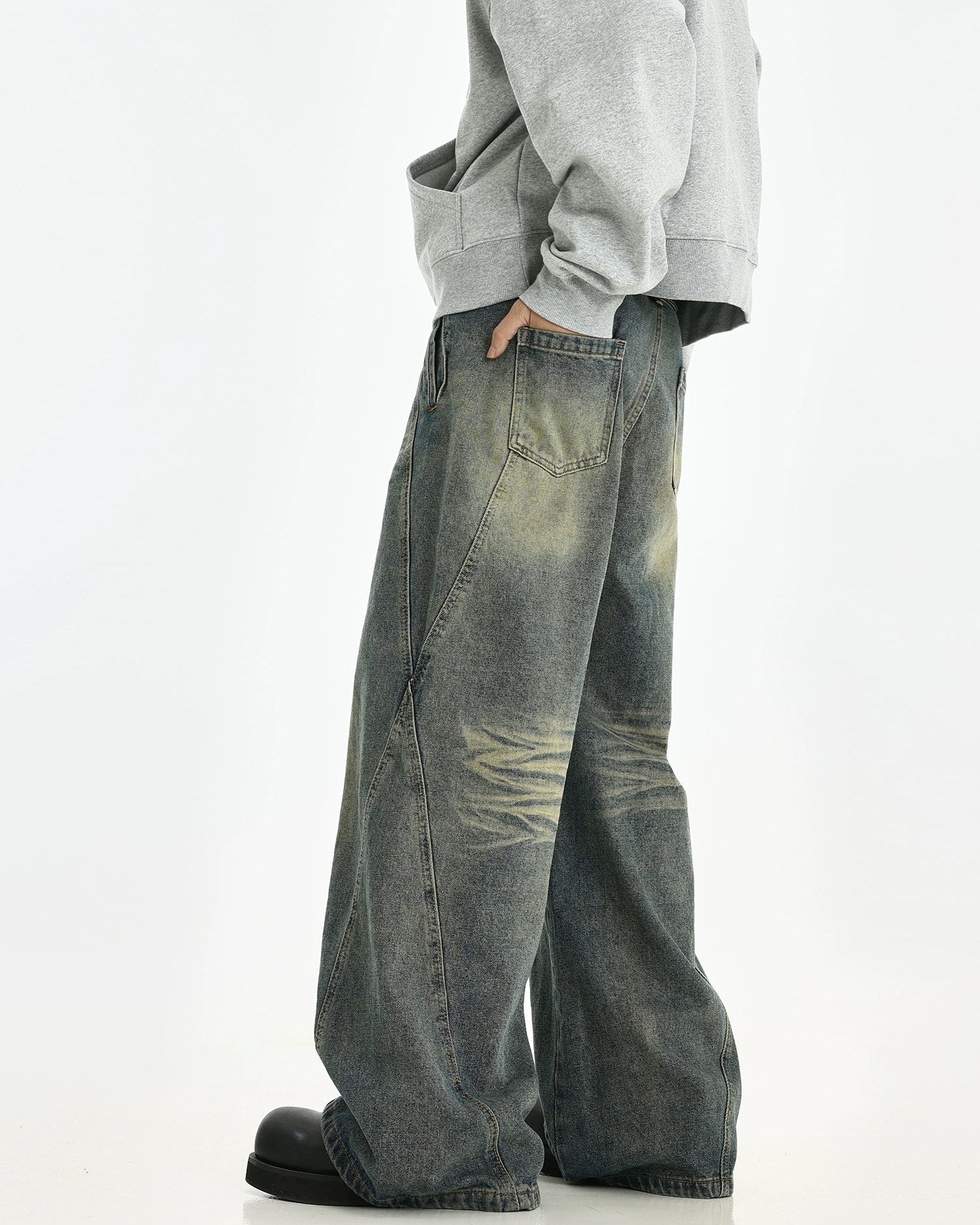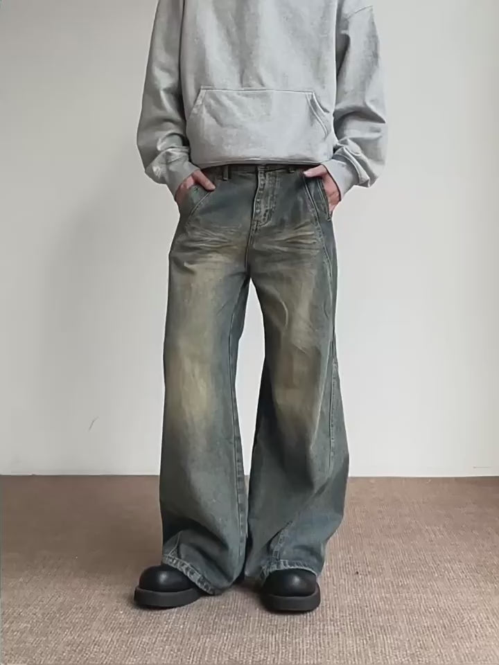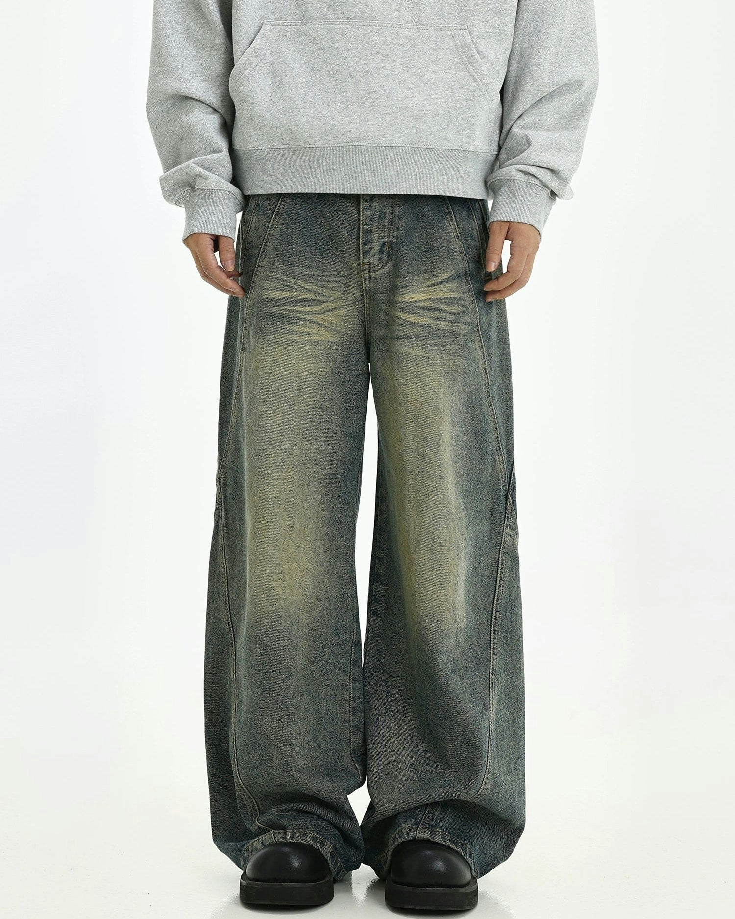 The washed texture and aged coloration offer an authentic, lived-in look, ideal for everyday wear and adaptable for an edgy, professional appearance. Ideal for various occasions, these jeans can be styled up with a button-up shirt and boots for a smart-casual look, or down with a tucked graphic tee and sneakers for laid-back weekends.