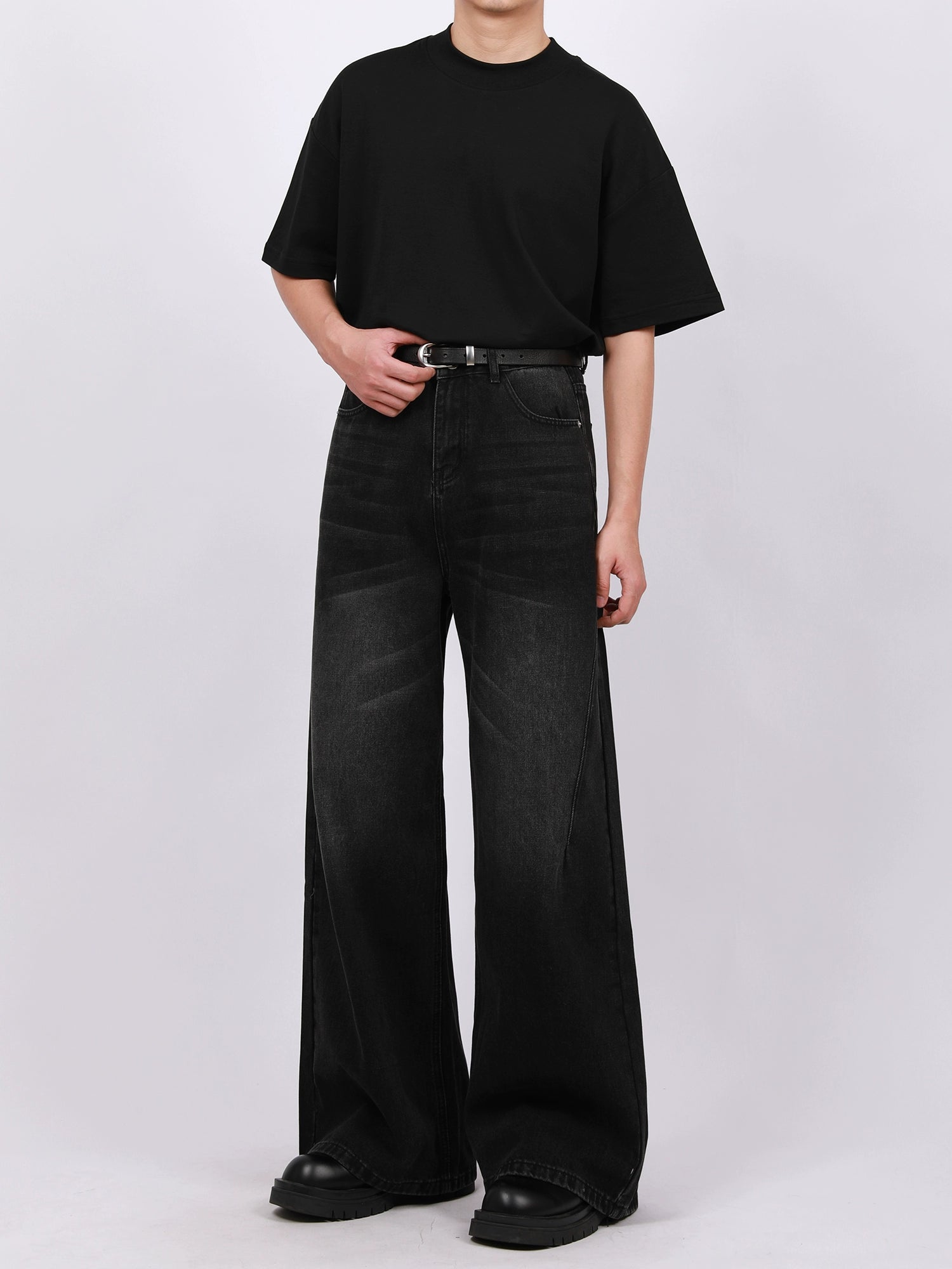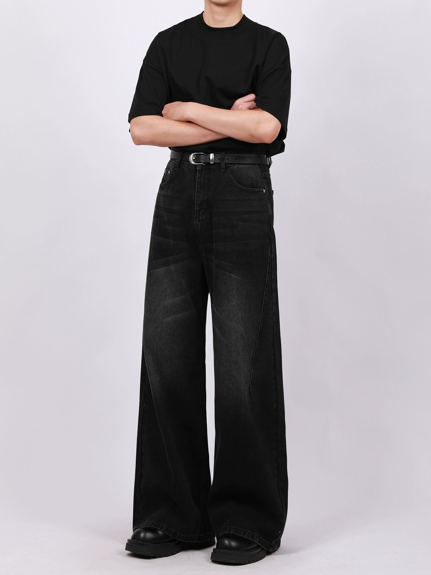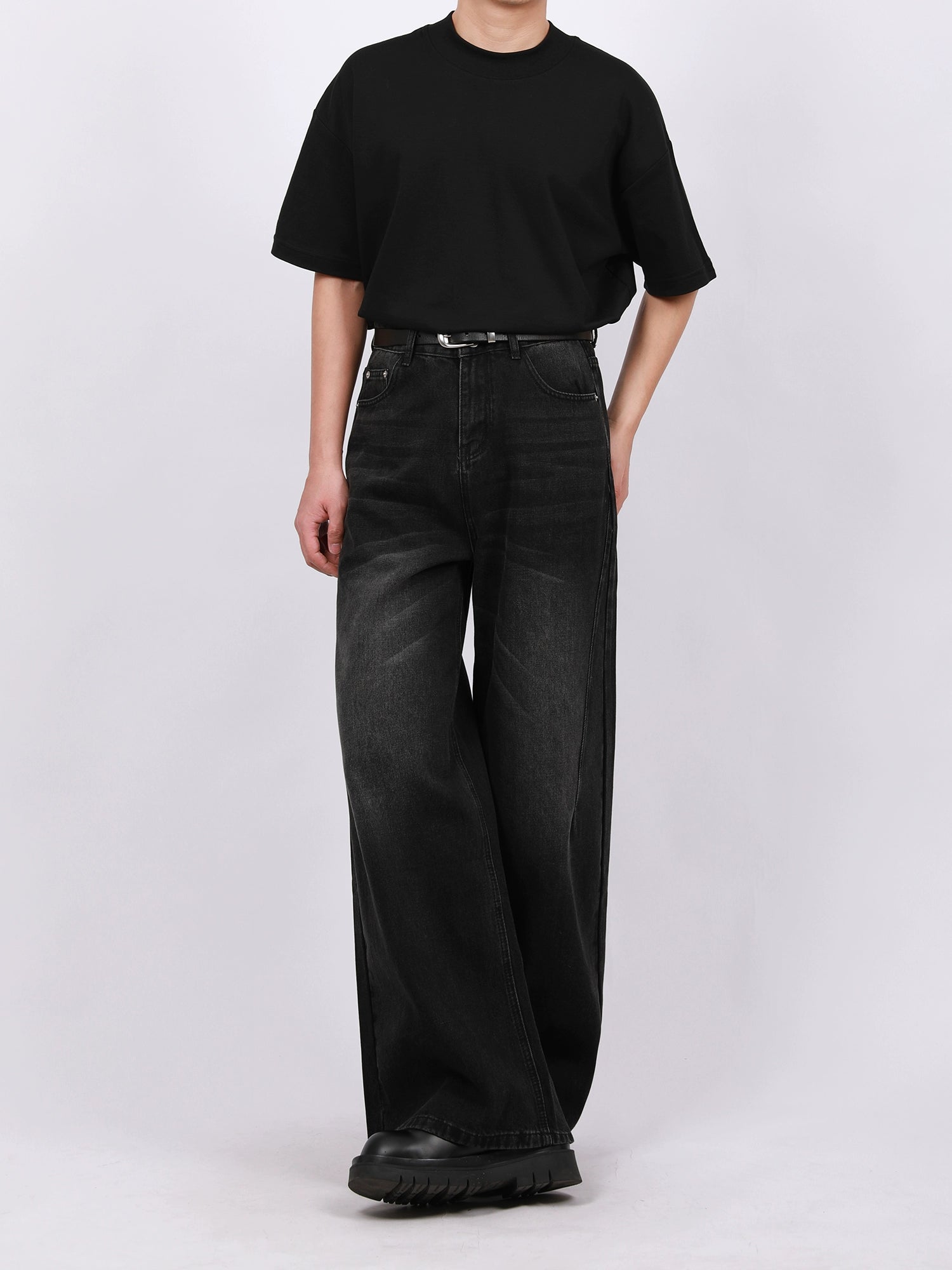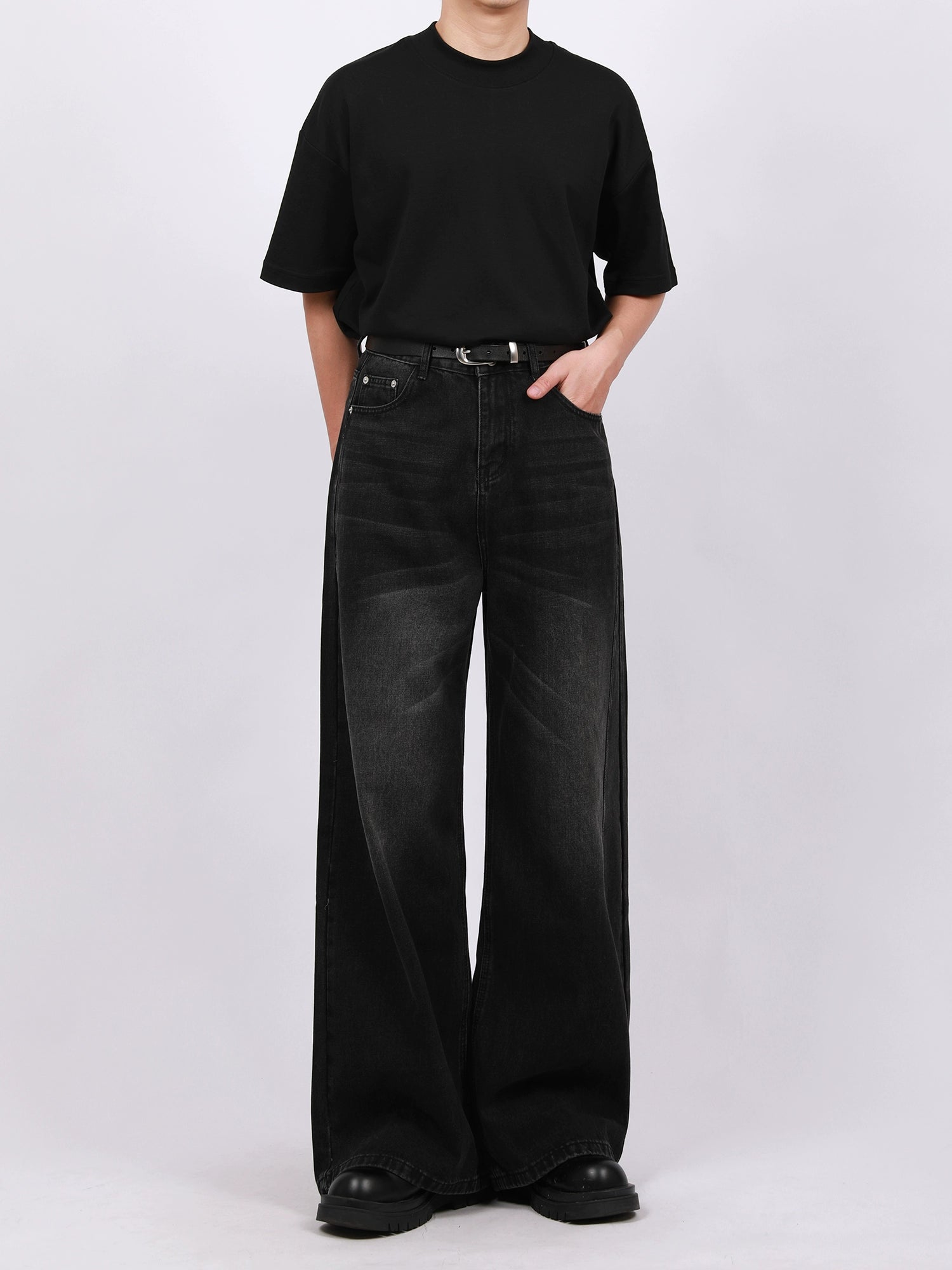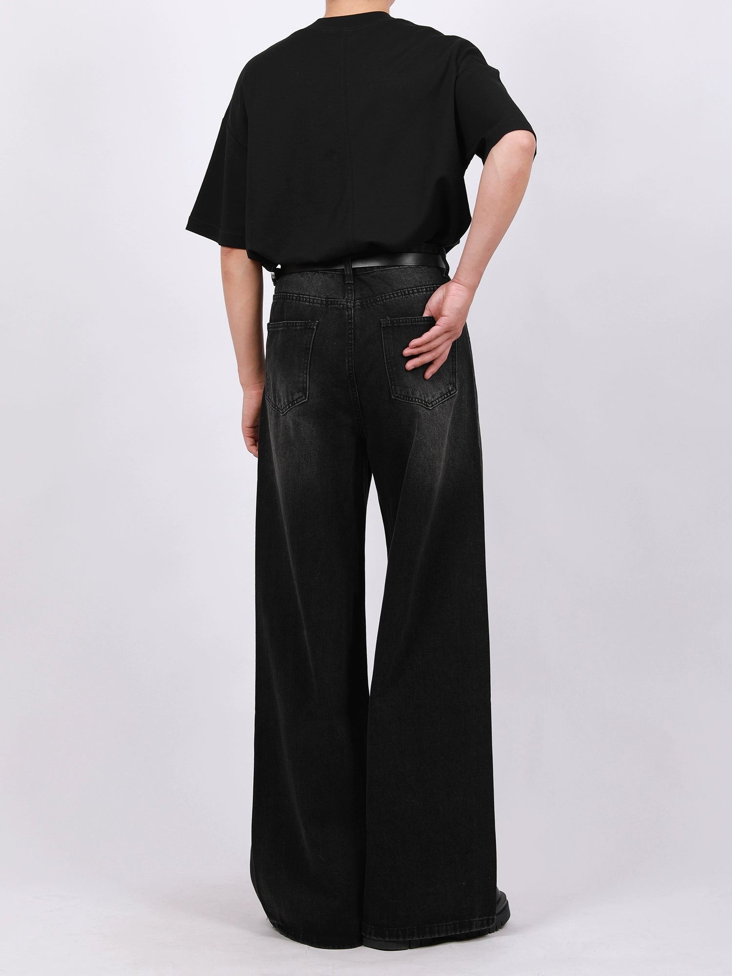Crafted with a mindful approach to fashion, these denim pants boast a high-quality, soft fabric that ensures both comfort and durability. The washed black and gray texture adds an air of sophistication while the wide leg cut ensures a comfortable, loose fit, perfect for a myriad of styles and occasions.