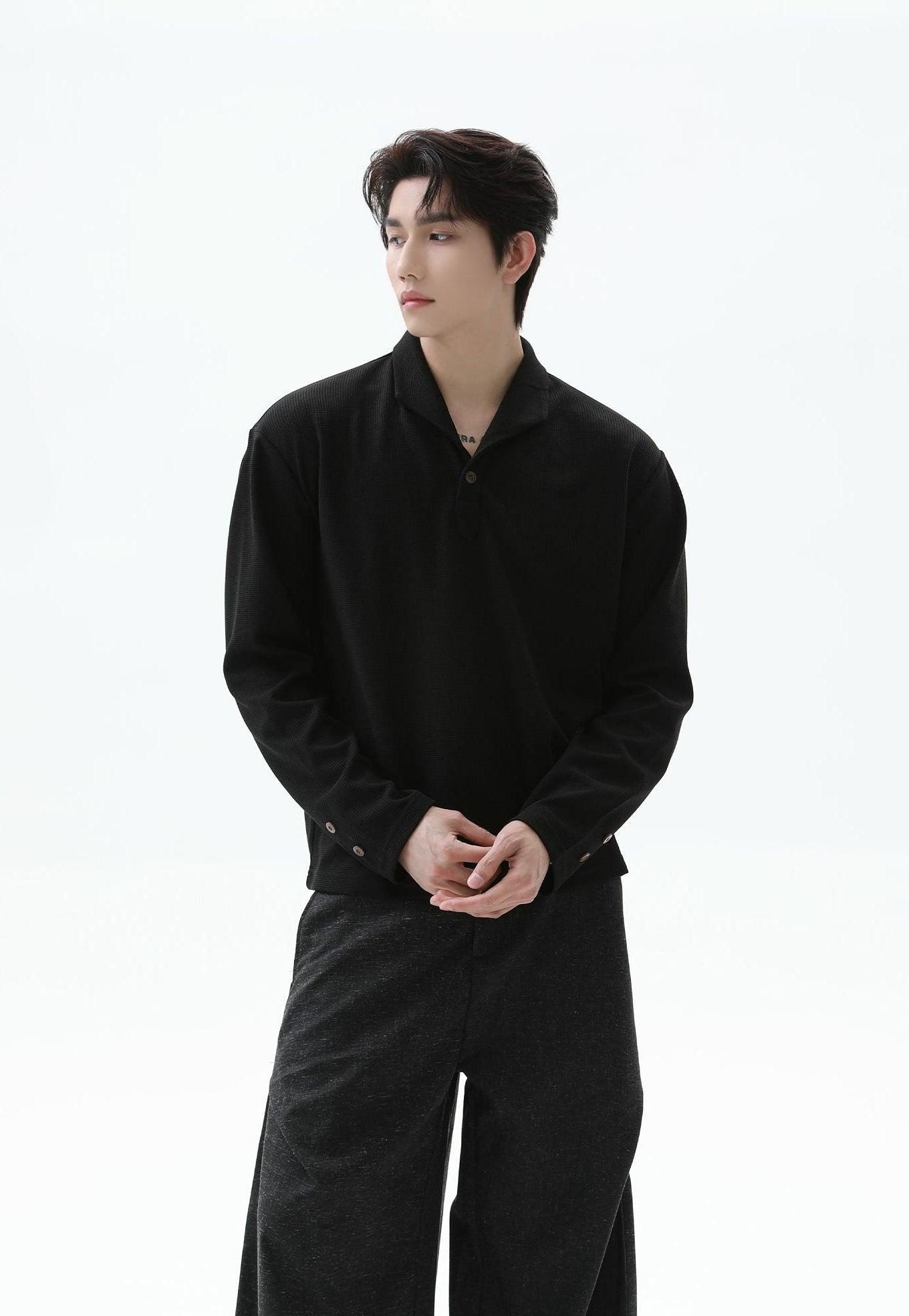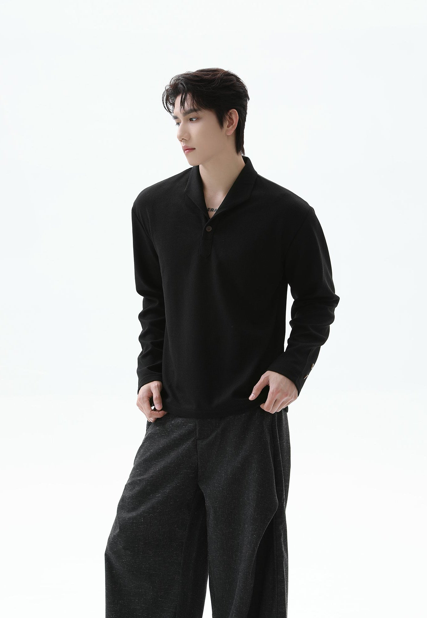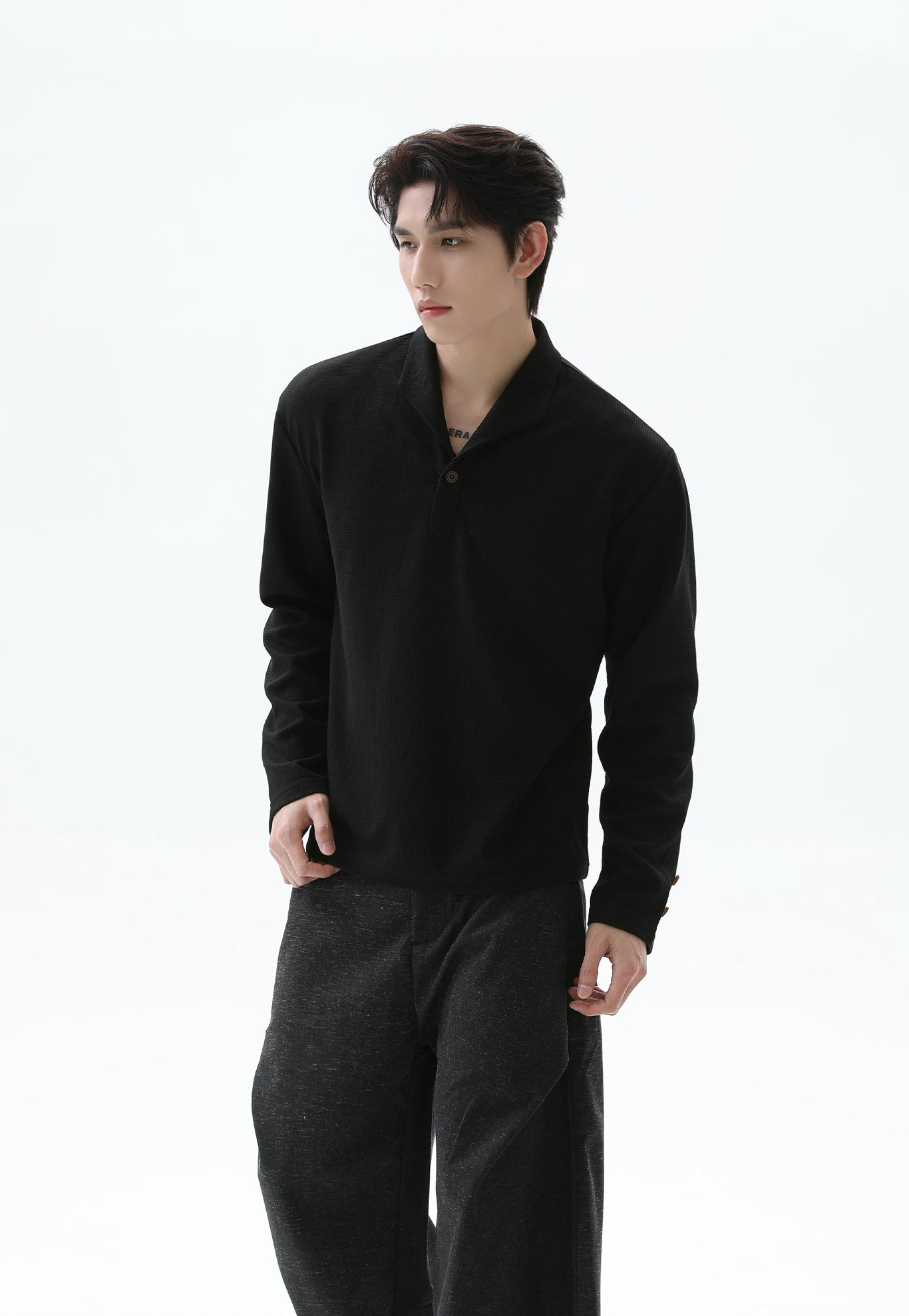 Its structured feel and subtle pattern add depth without trying too hard. The soft knit fabric offers comfortable warmth with a breathable finish, and the half-button closure brings a relaxed, polished touch.
