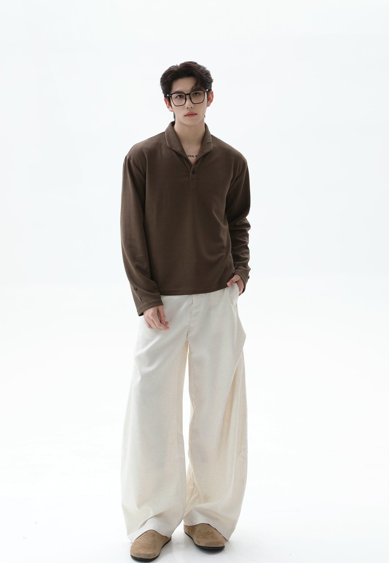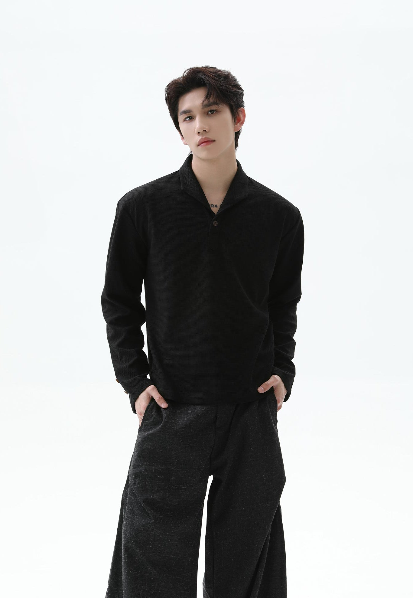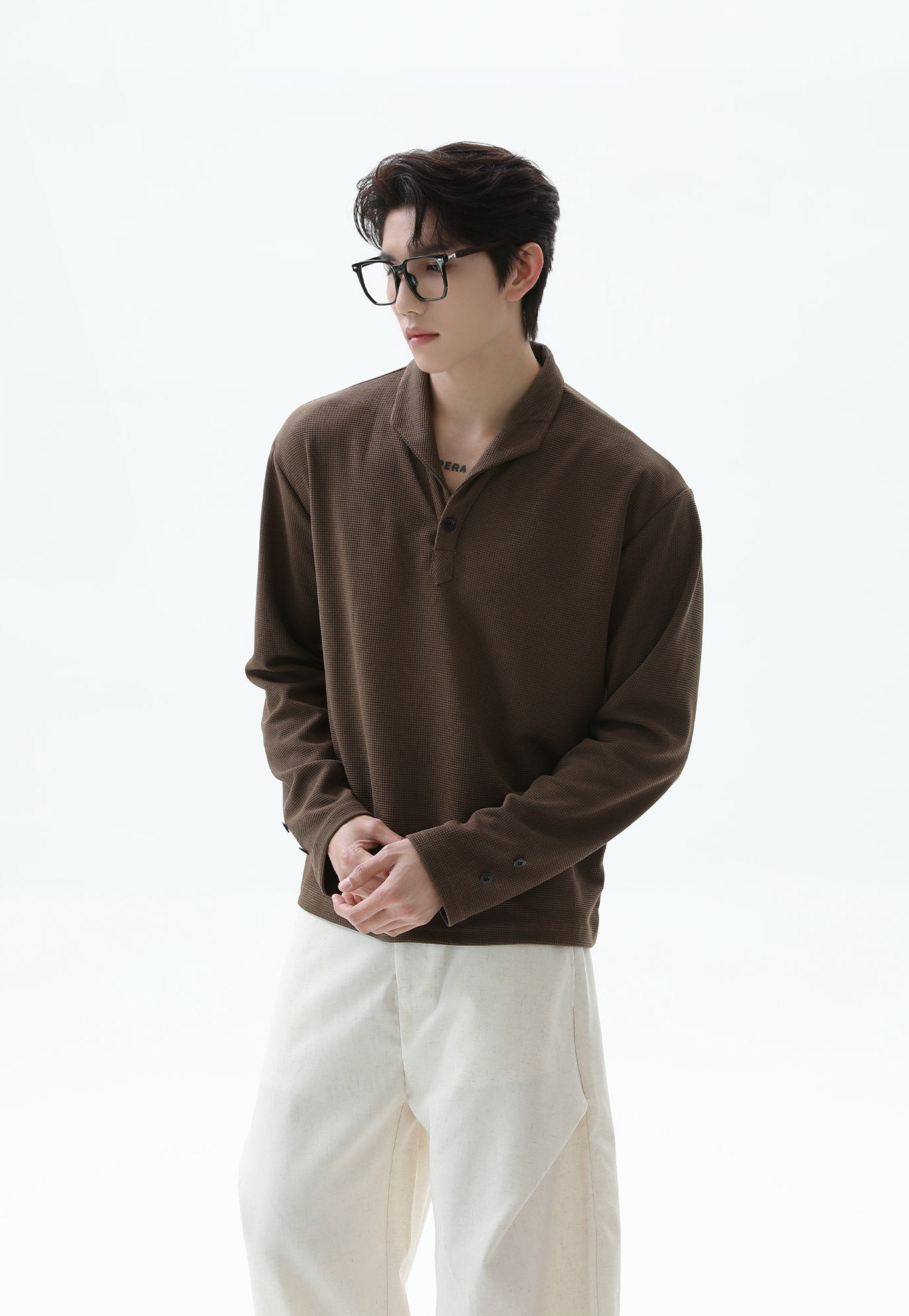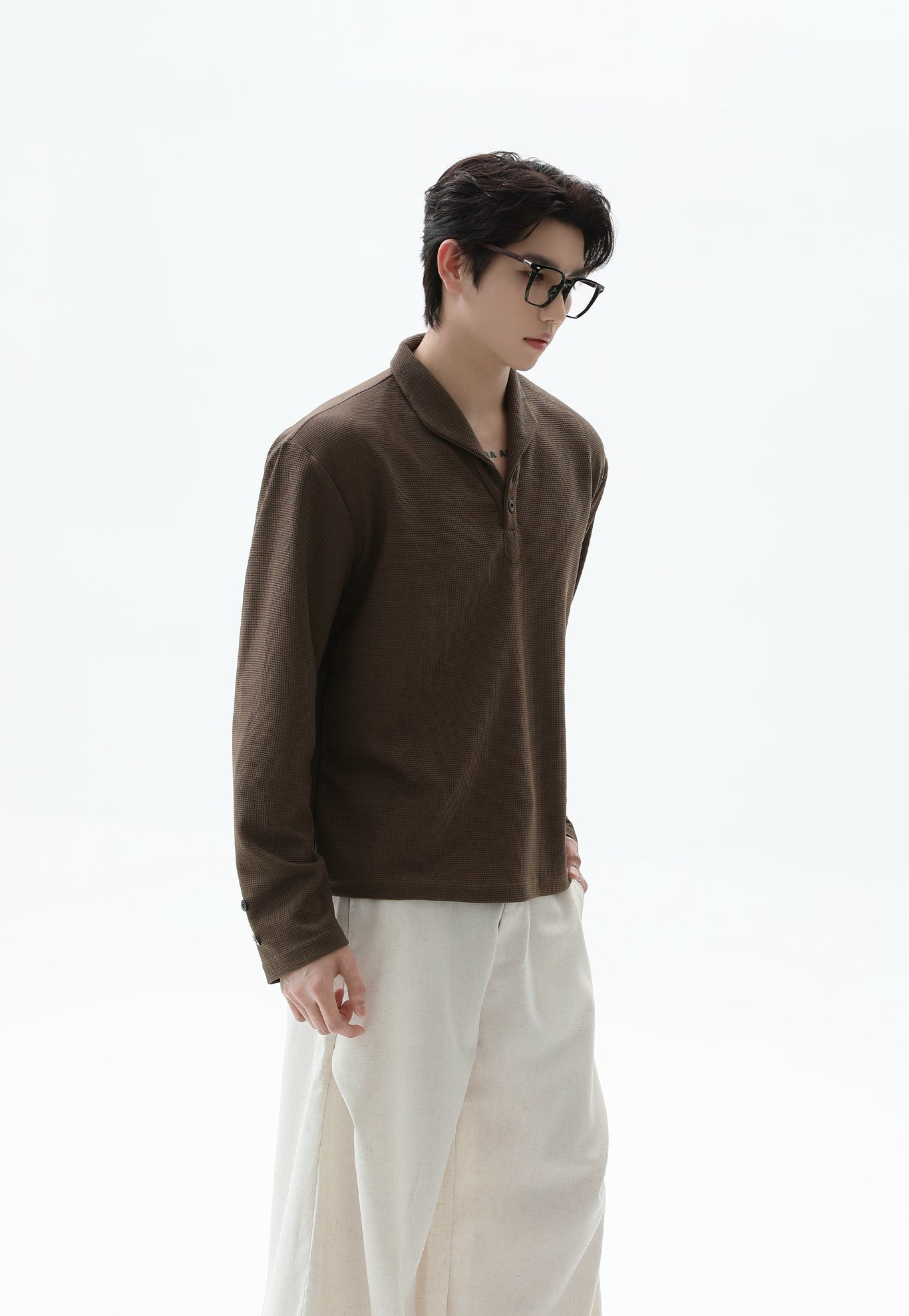 Waffle Knit Half-Button Long Sleeve Polo Top