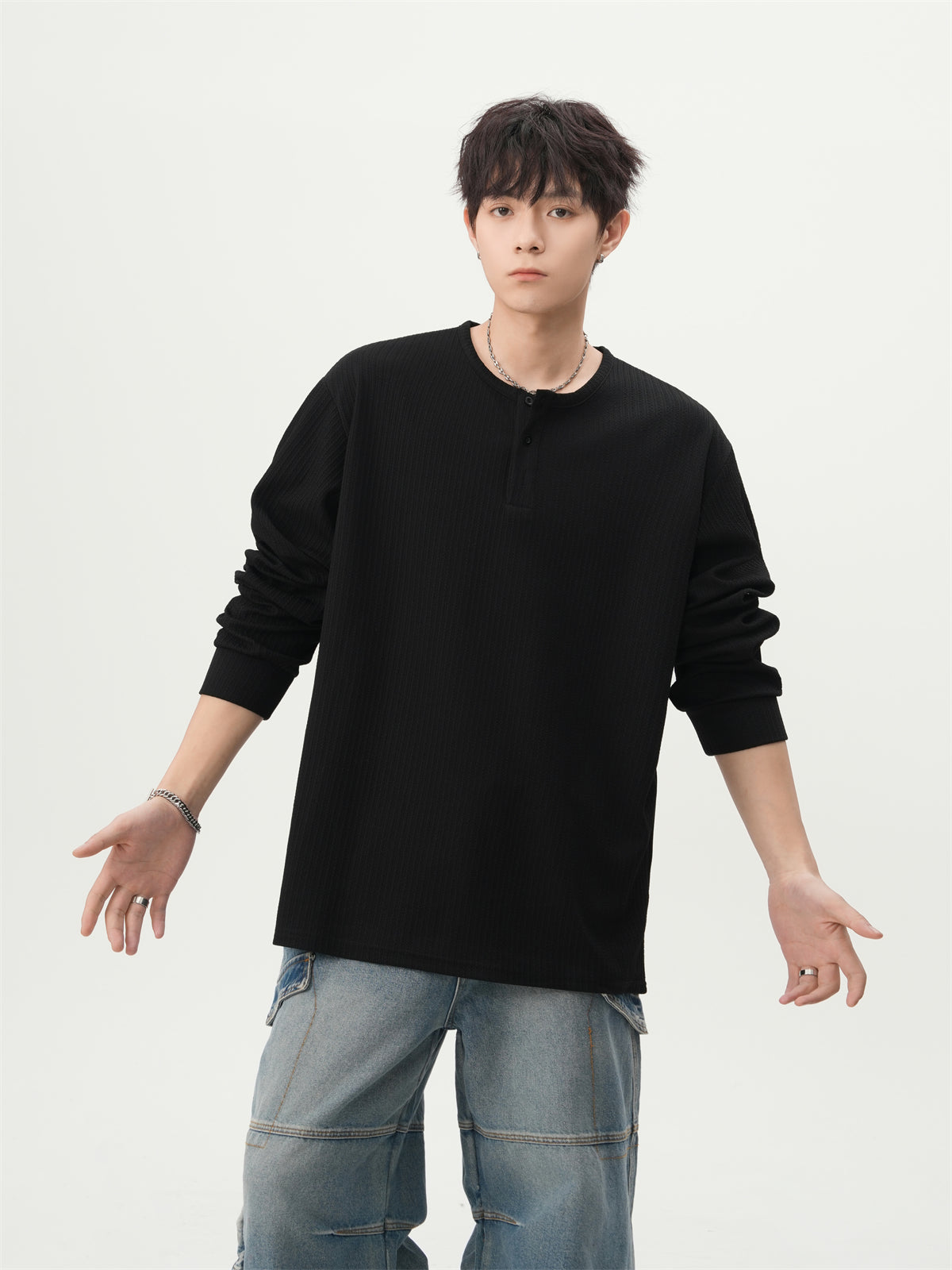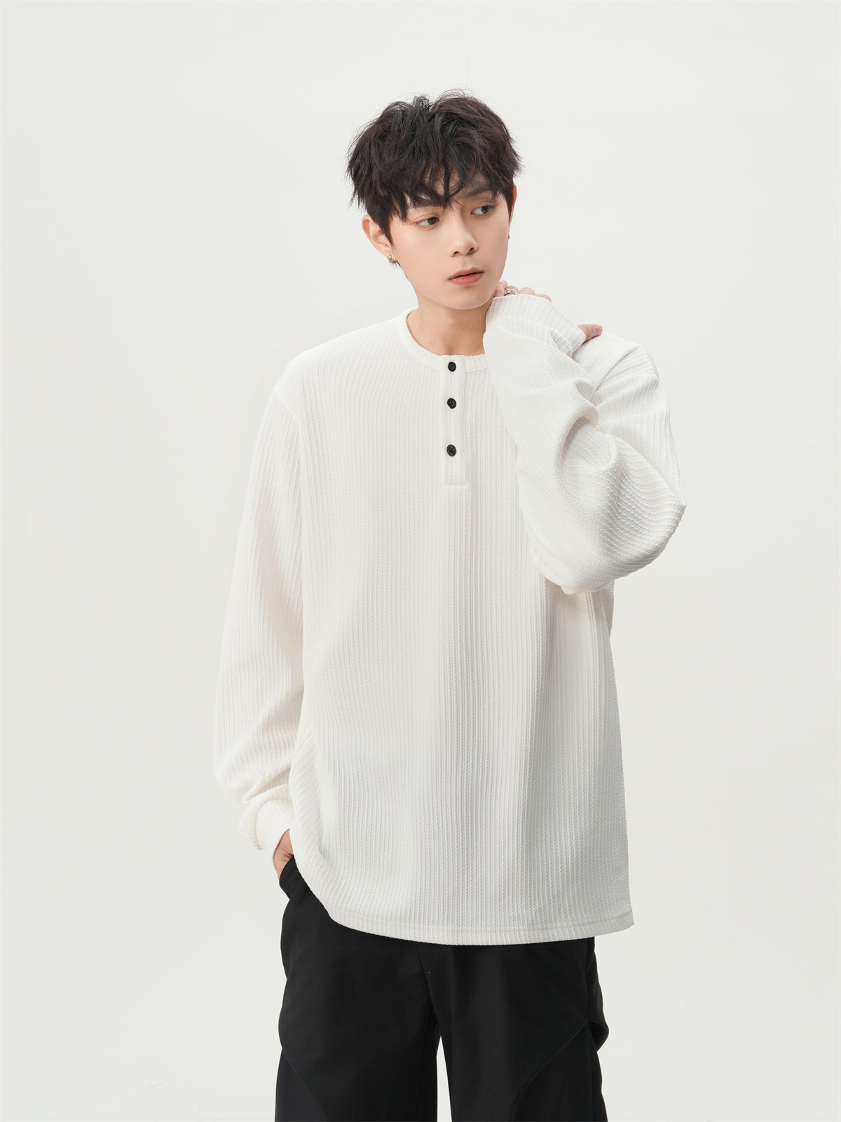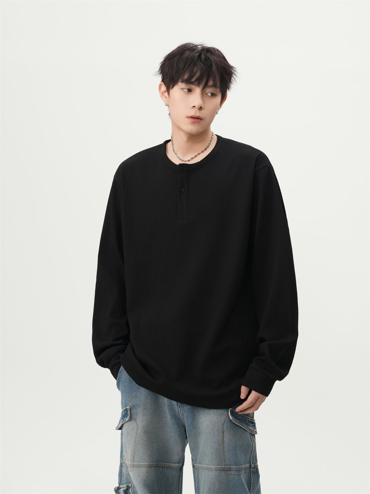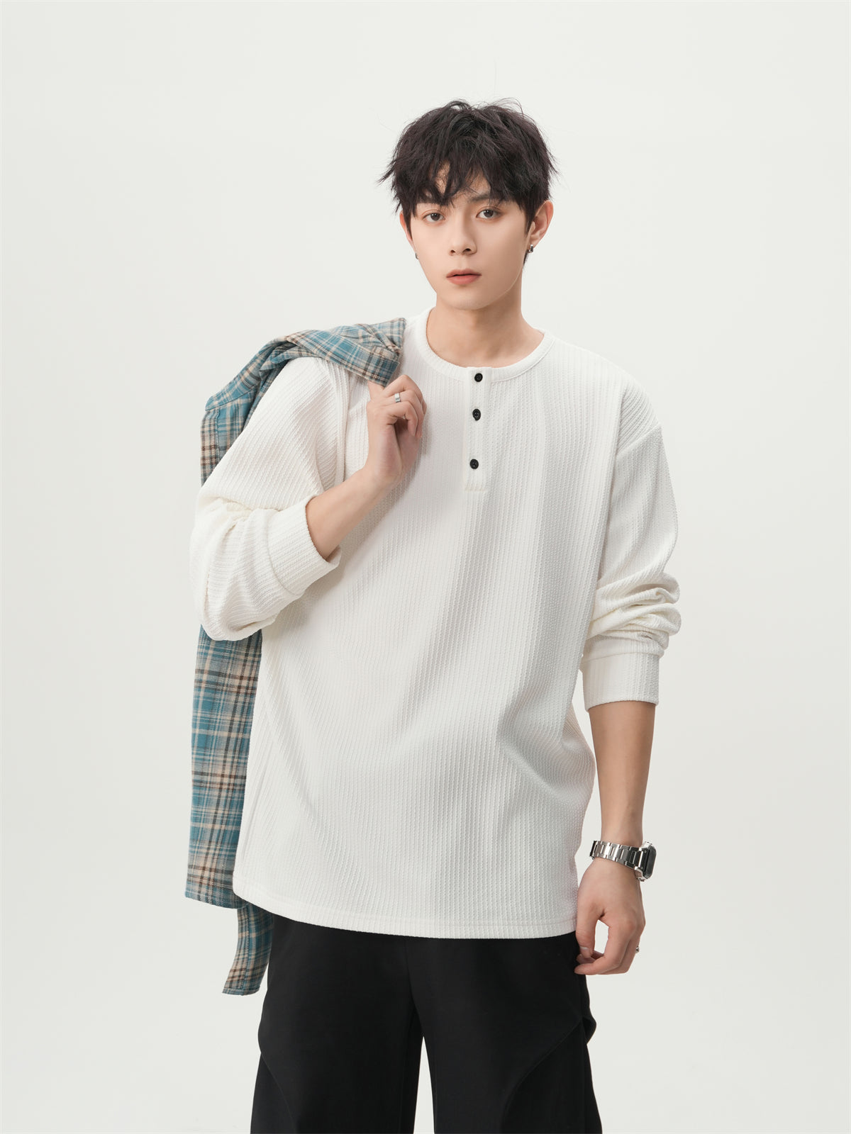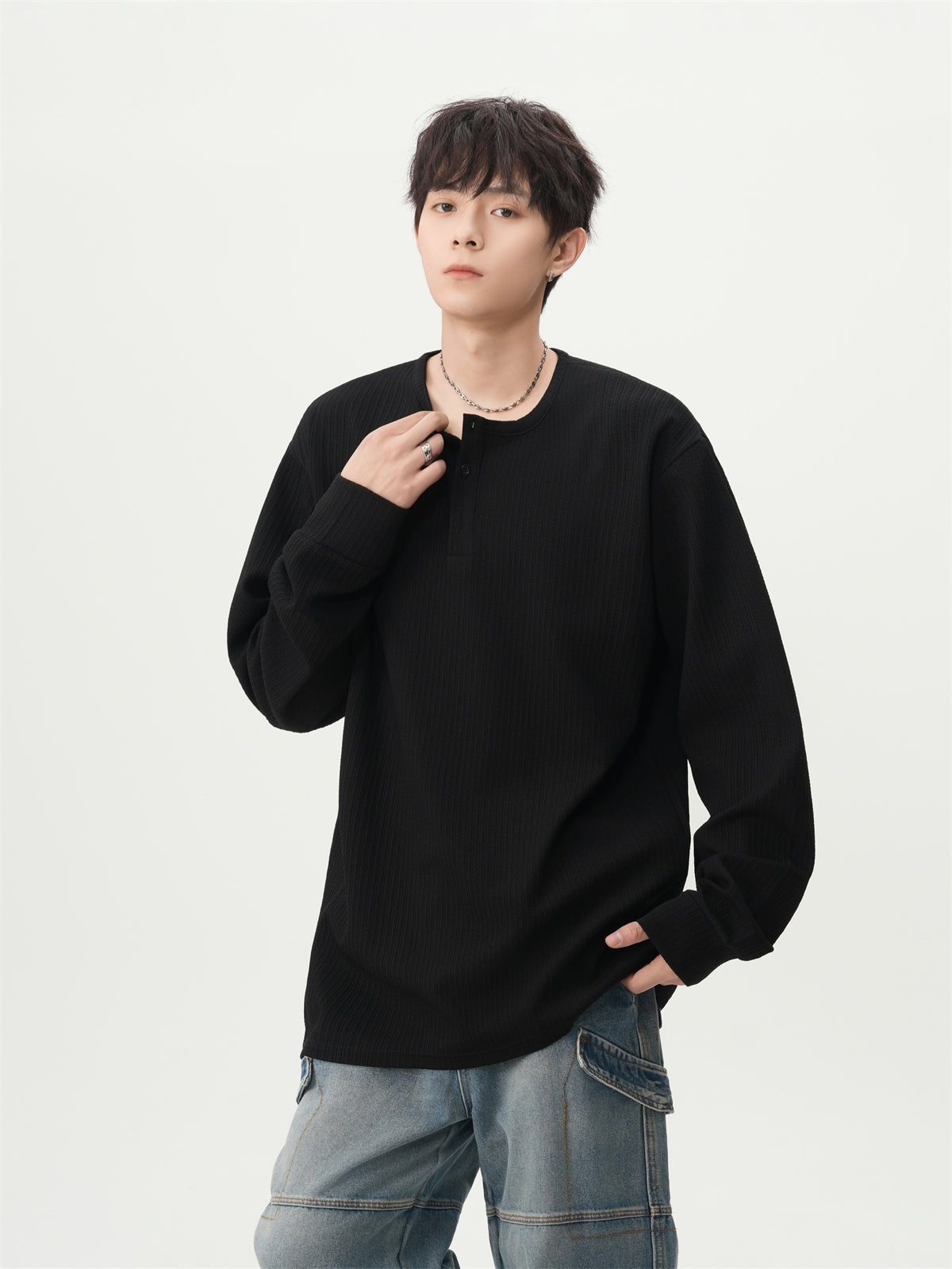Designed with a half-button front and a classic henley neckline, it’s a staple that speaks for itself—clean, modern, and versatile. The textured waffle knit adds just the right amount of depth, elevating a simple long-sleeve to something with grip. Cut in a relaxed fit, it drapes with ease, making it ideal for layering or wearing solo. The soft-yet-durable fabric blend ensures all-day comfort without losing structure. Wear it buttoned up for a polished look or leave it undone for a more undone, effortless vibe.
