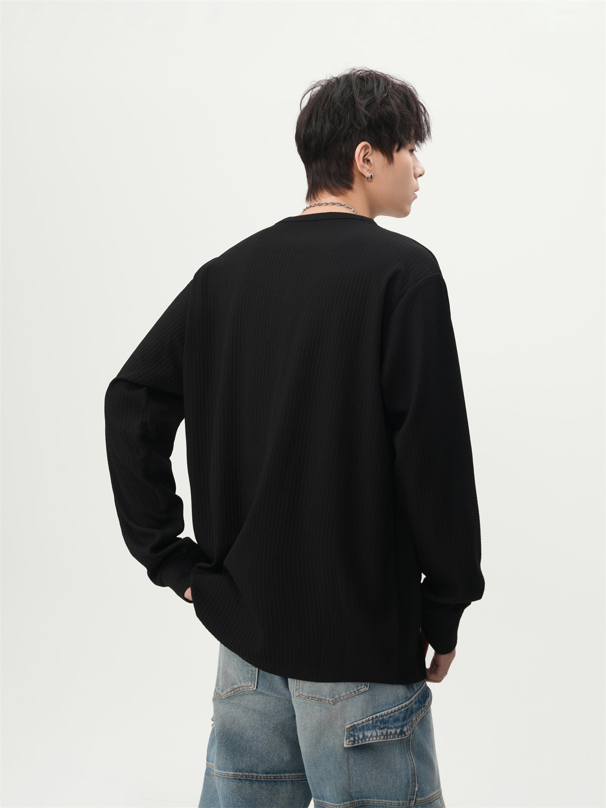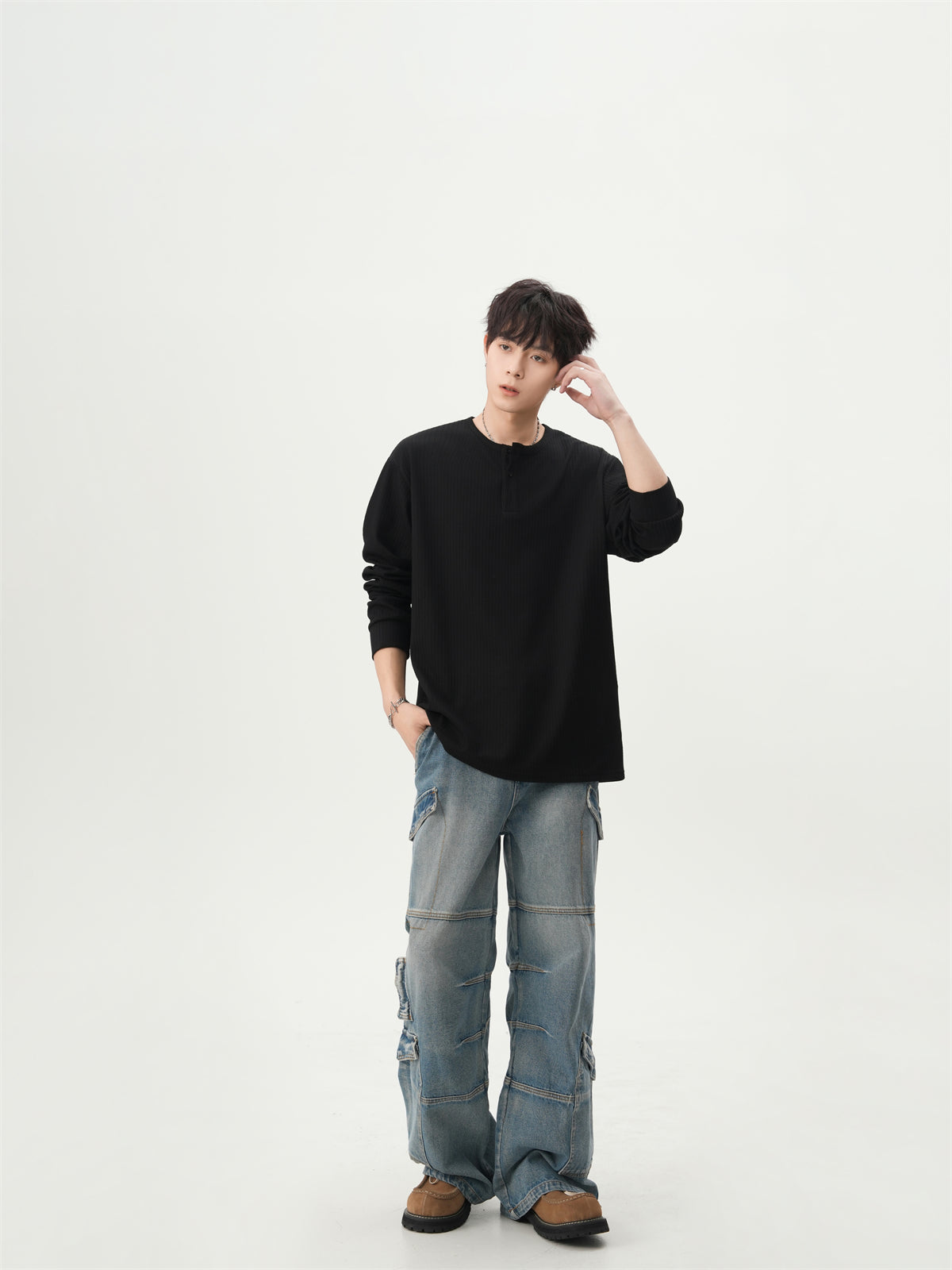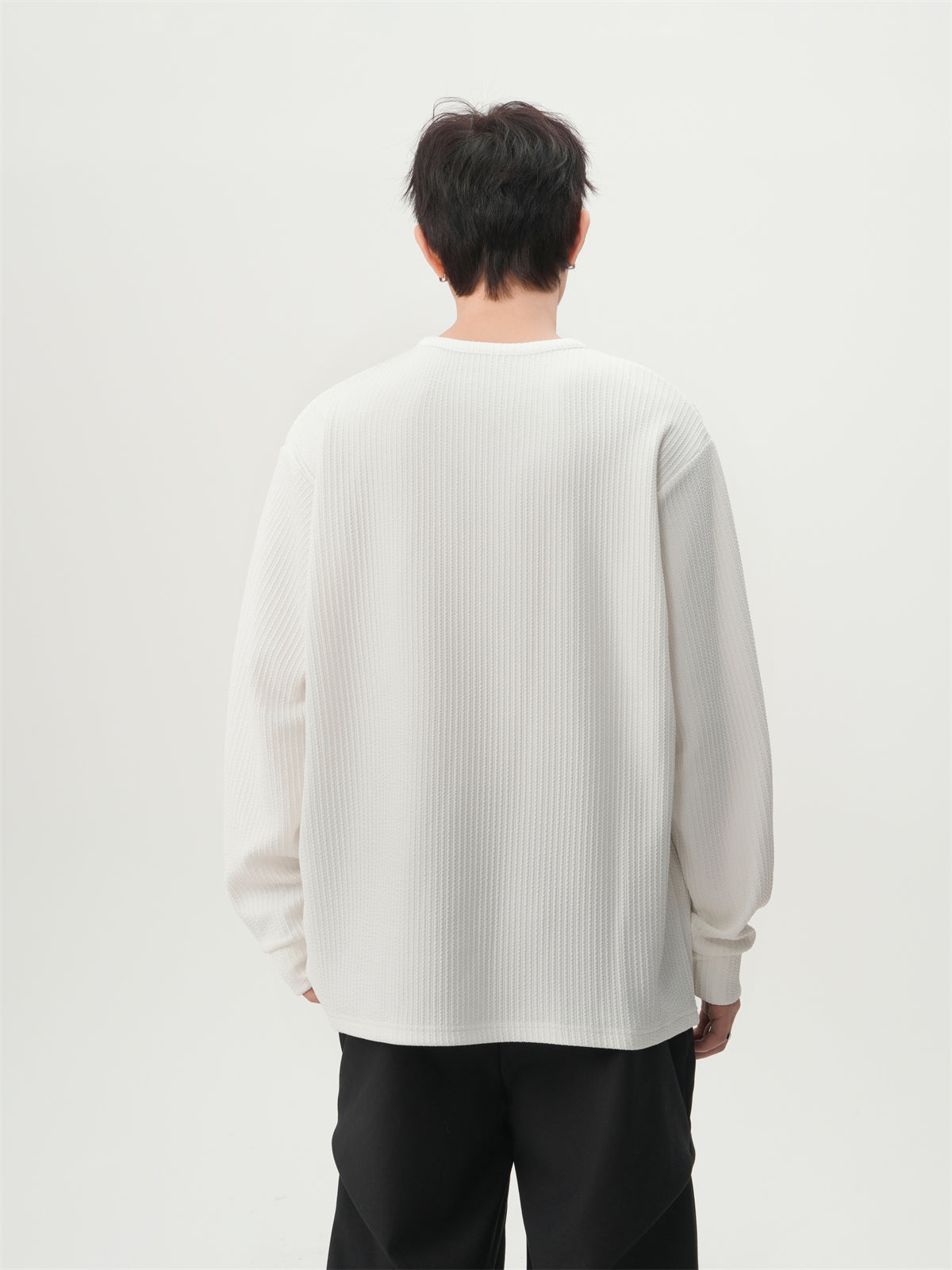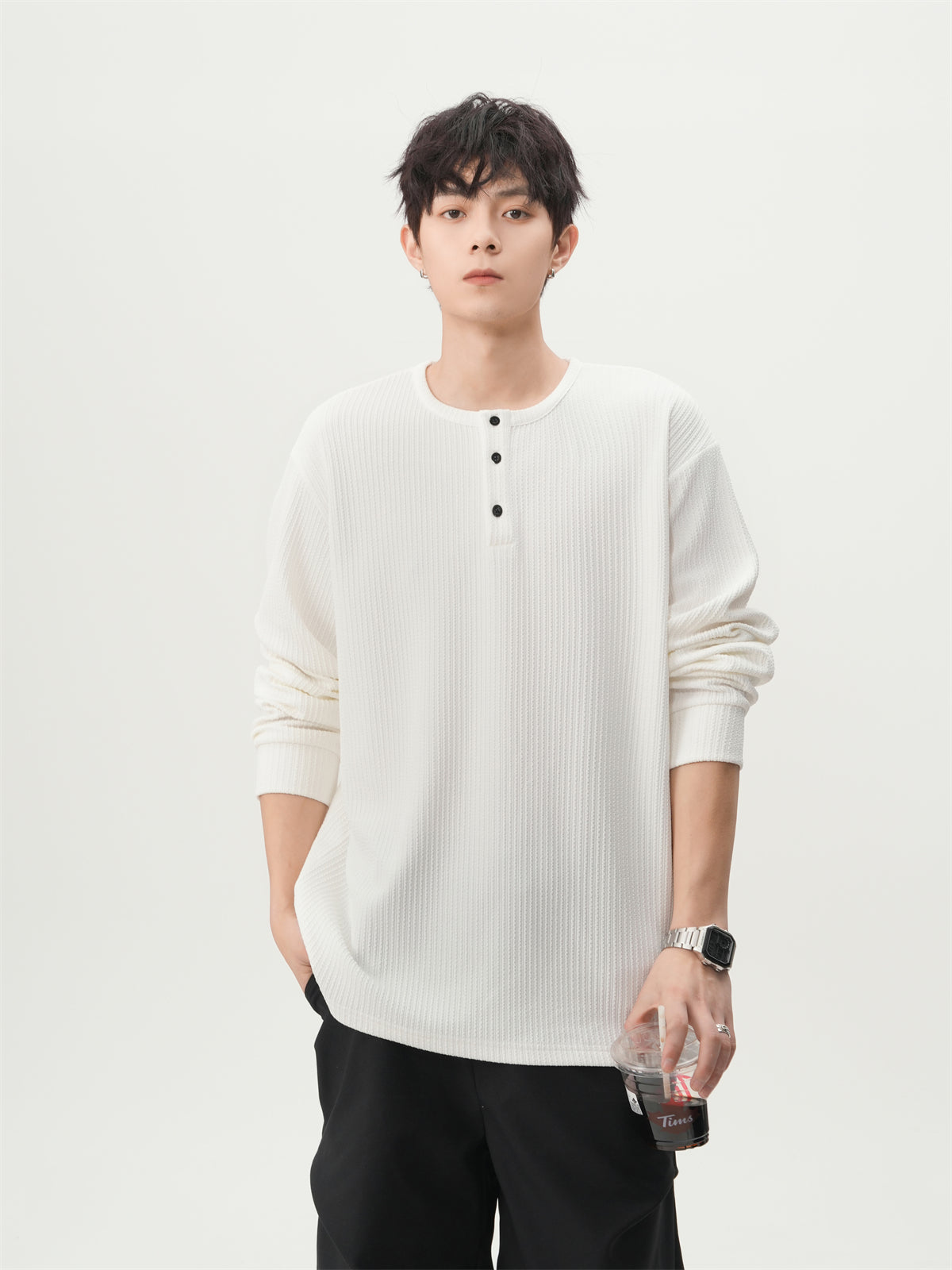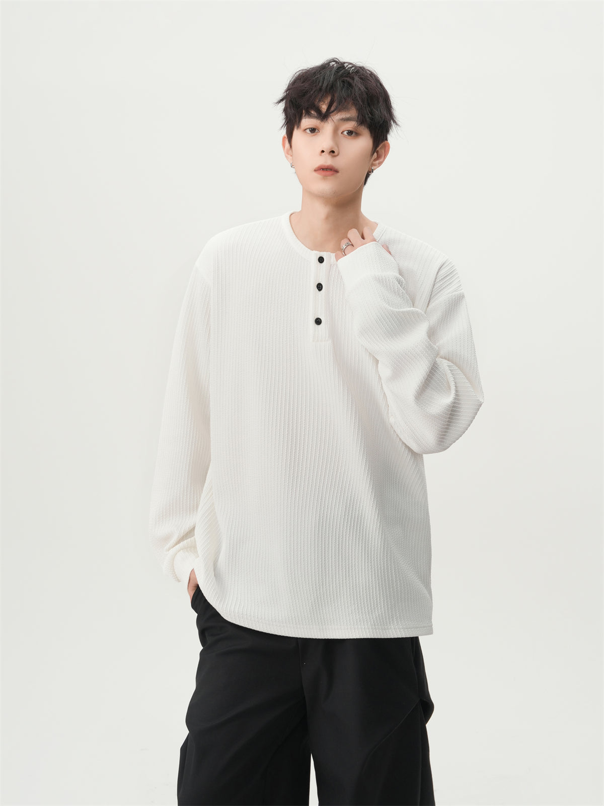 Designed with a half-button front and a classic henley neckline, it’s a staple that speaks for itself—clean, modern, and versatile. The textured waffle knit adds just the right amount of depth, elevating a simple long-sleeve to something with grip. Cut in a relaxed fit, it drapes with ease, making it ideal for layering or wearing solo. The soft-yet-durable fabric blend ensures all-day comfort without losing structure. Wear it buttoned up for a polished look or leave it undone for a more undone, effortless vibe.