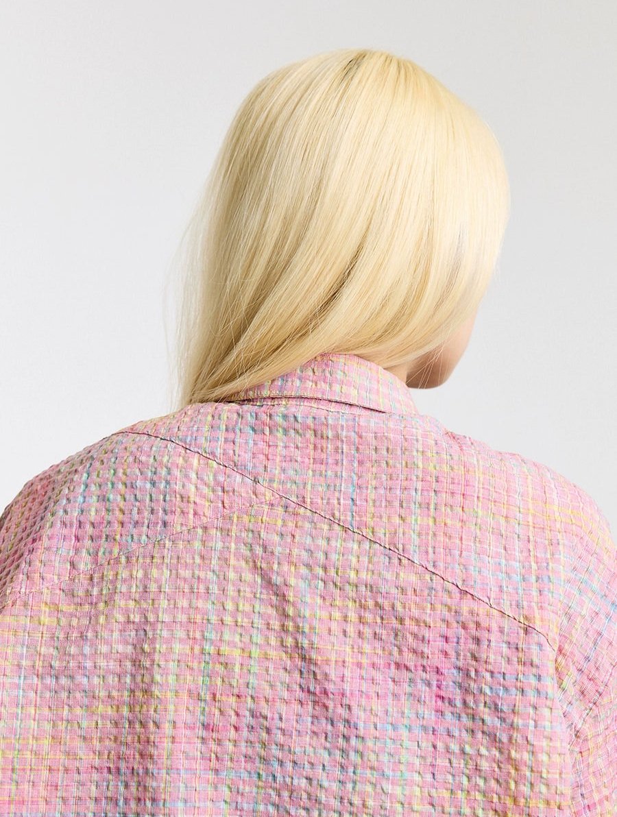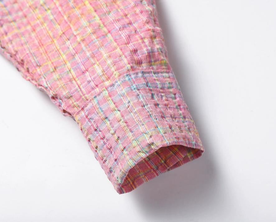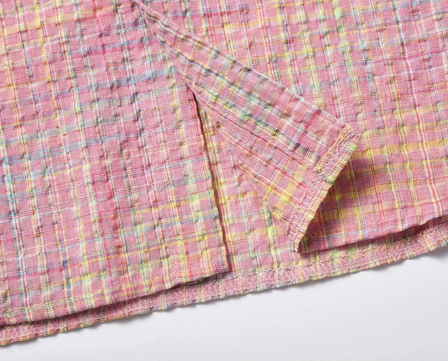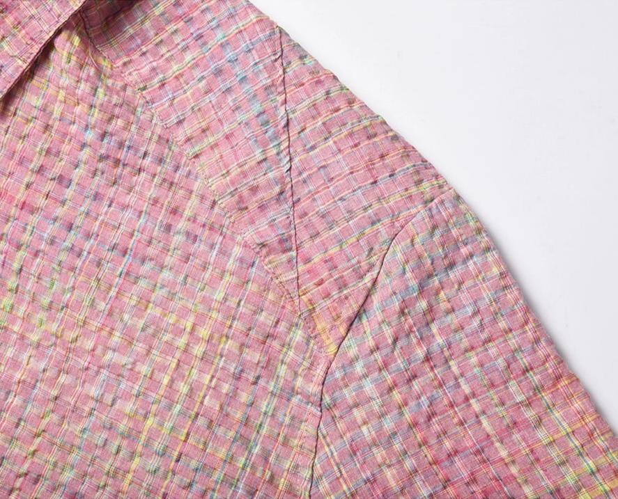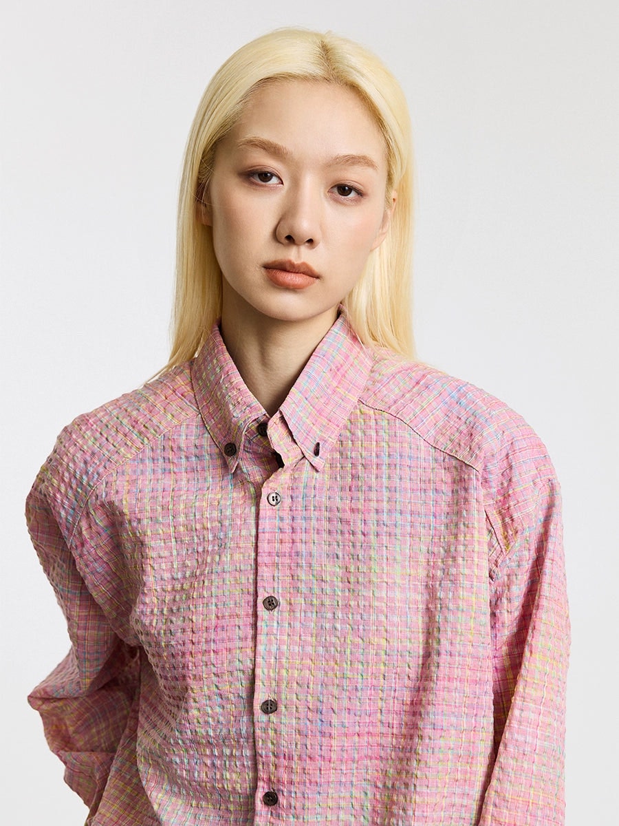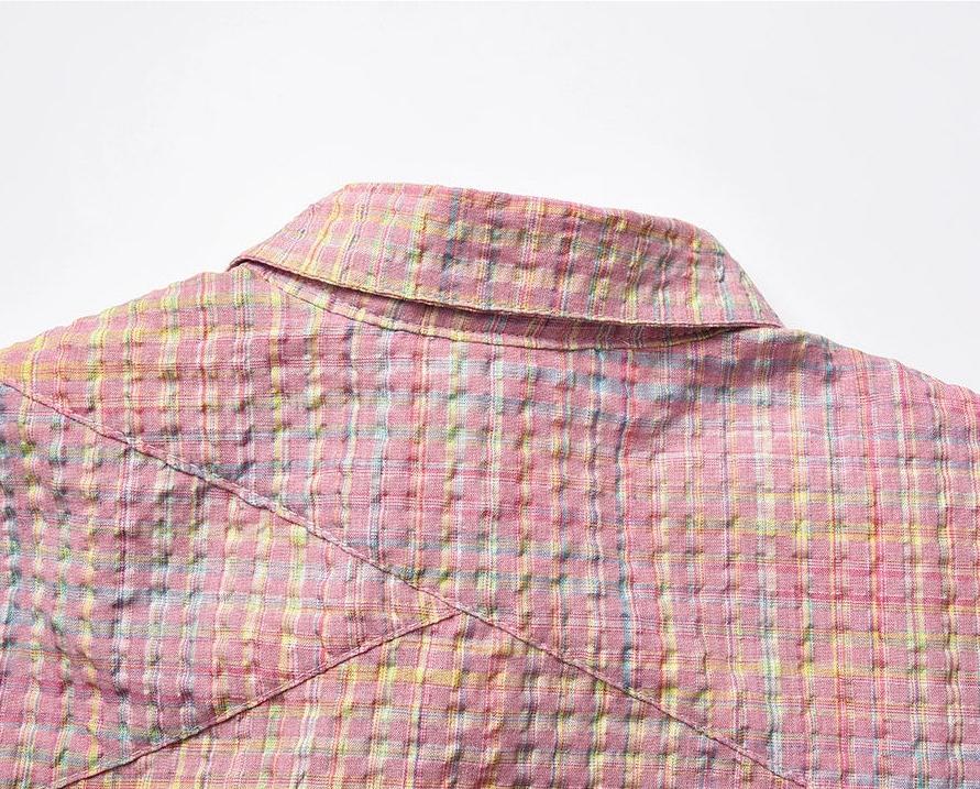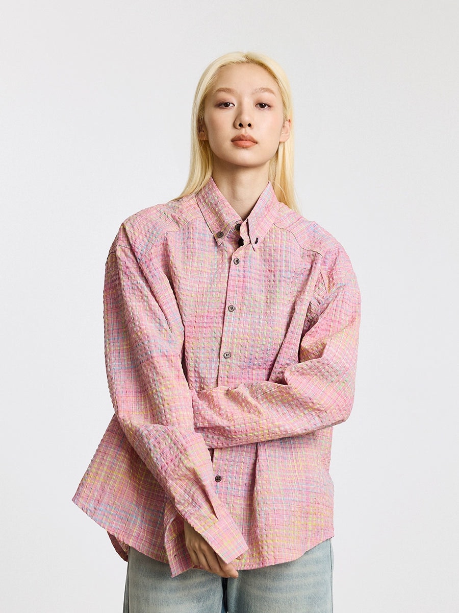 Crafted with attention to detail, this long sleeve shirt features a distinctive waffle texture that adds a touch of edgy elegance to your outfit. The breathable fabric ensures a seamless transition from a relaxed daytime look to an enigmatic evening ensemble, while the classic sword collar and gradient fuchsia pattern underscore the shirt's unique aesthetic.