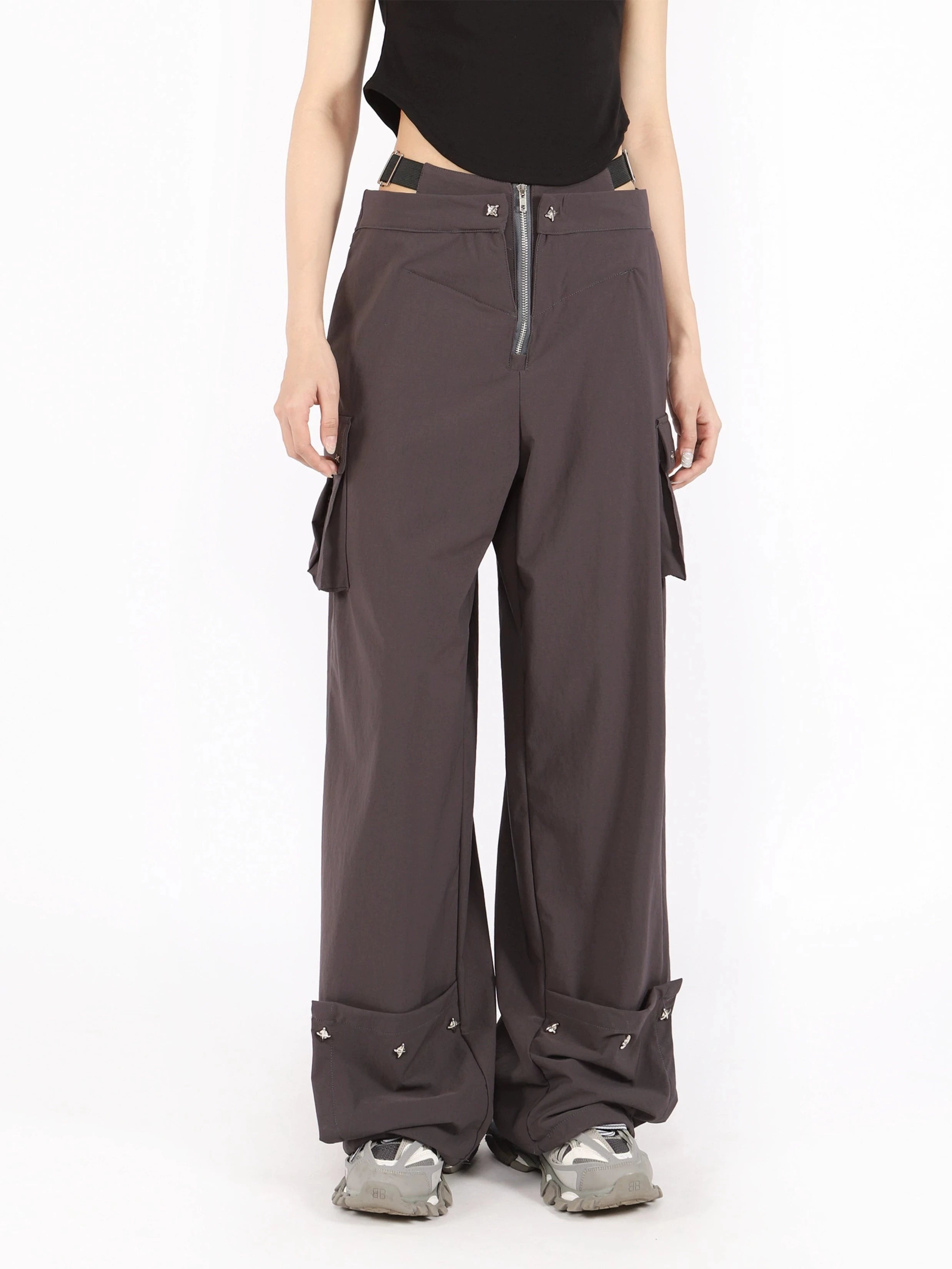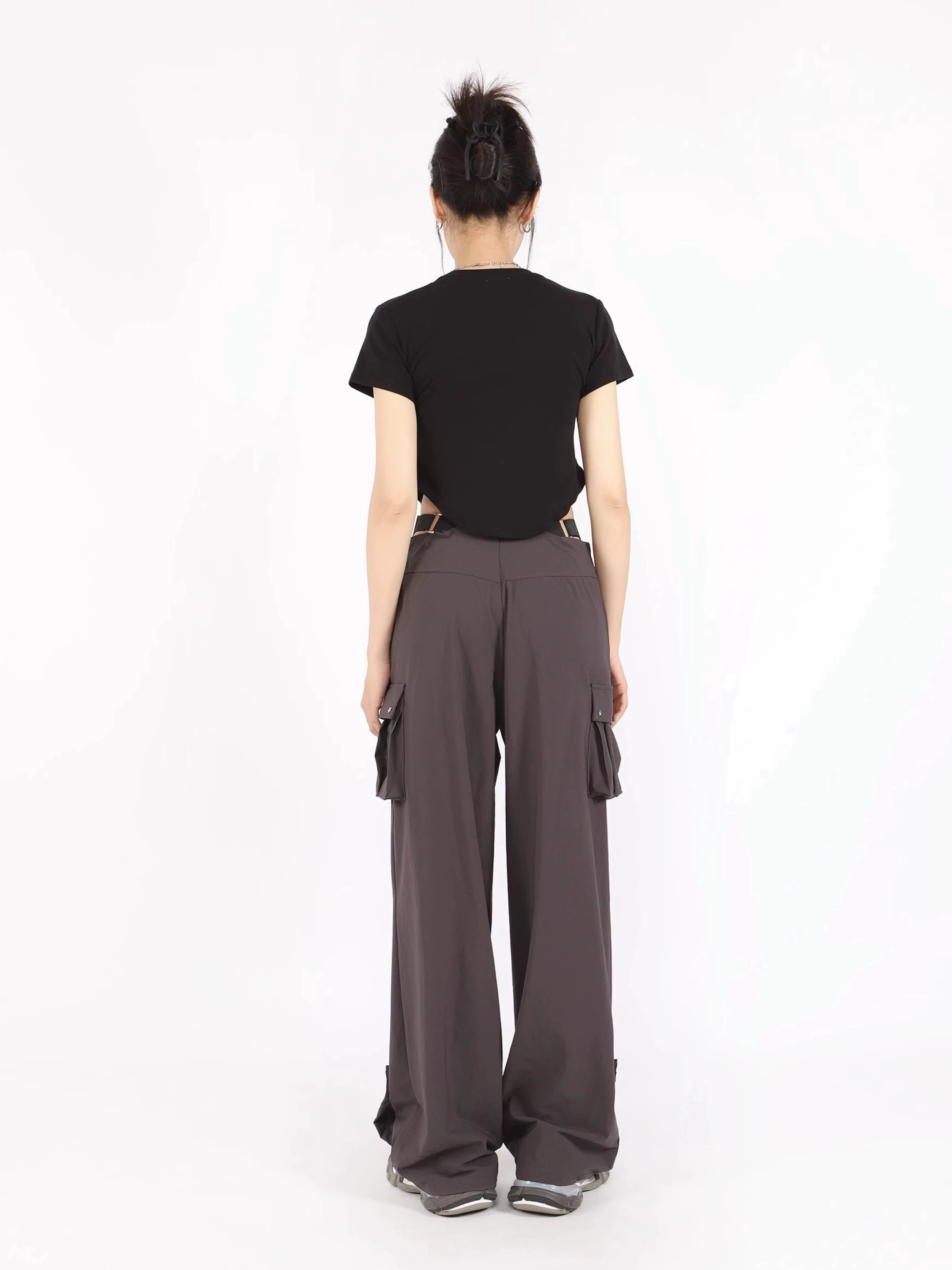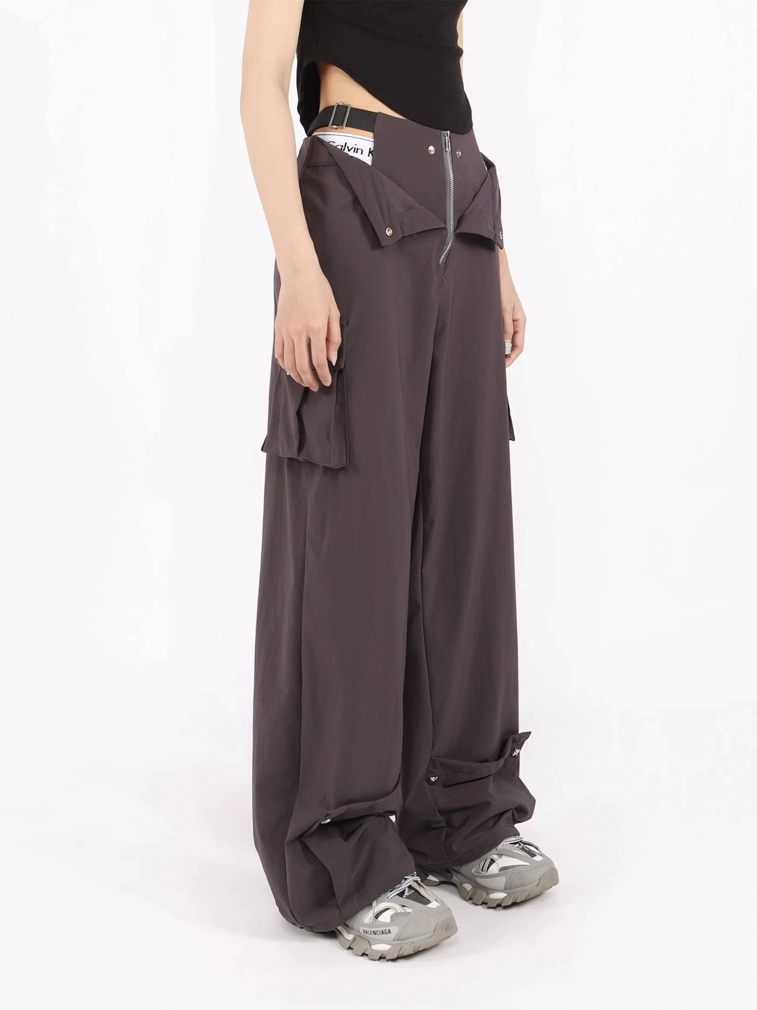 Waist-Layered Wide Leg Lightweight Cargo Pants