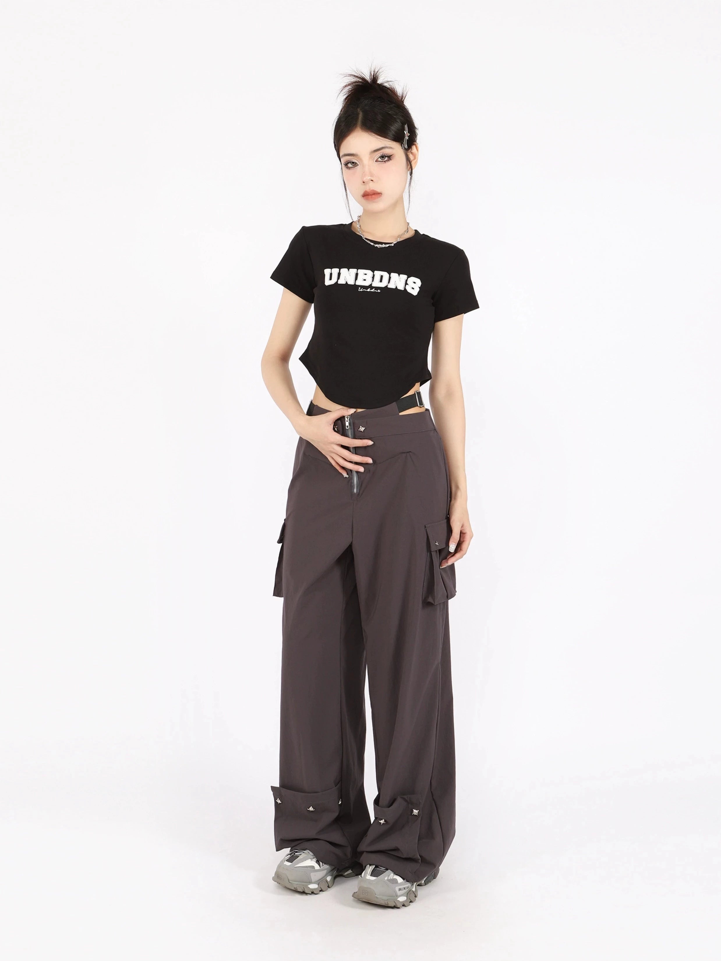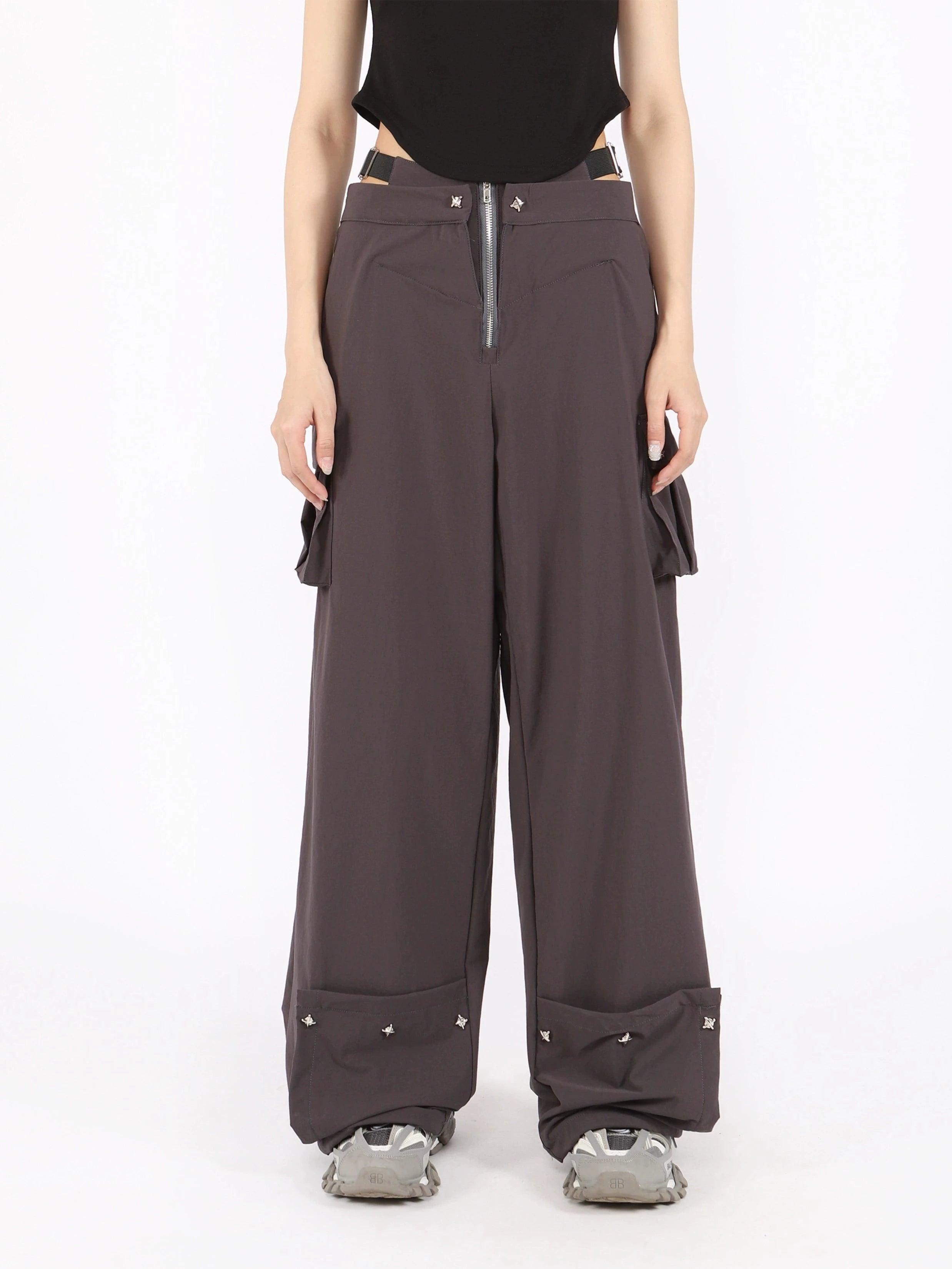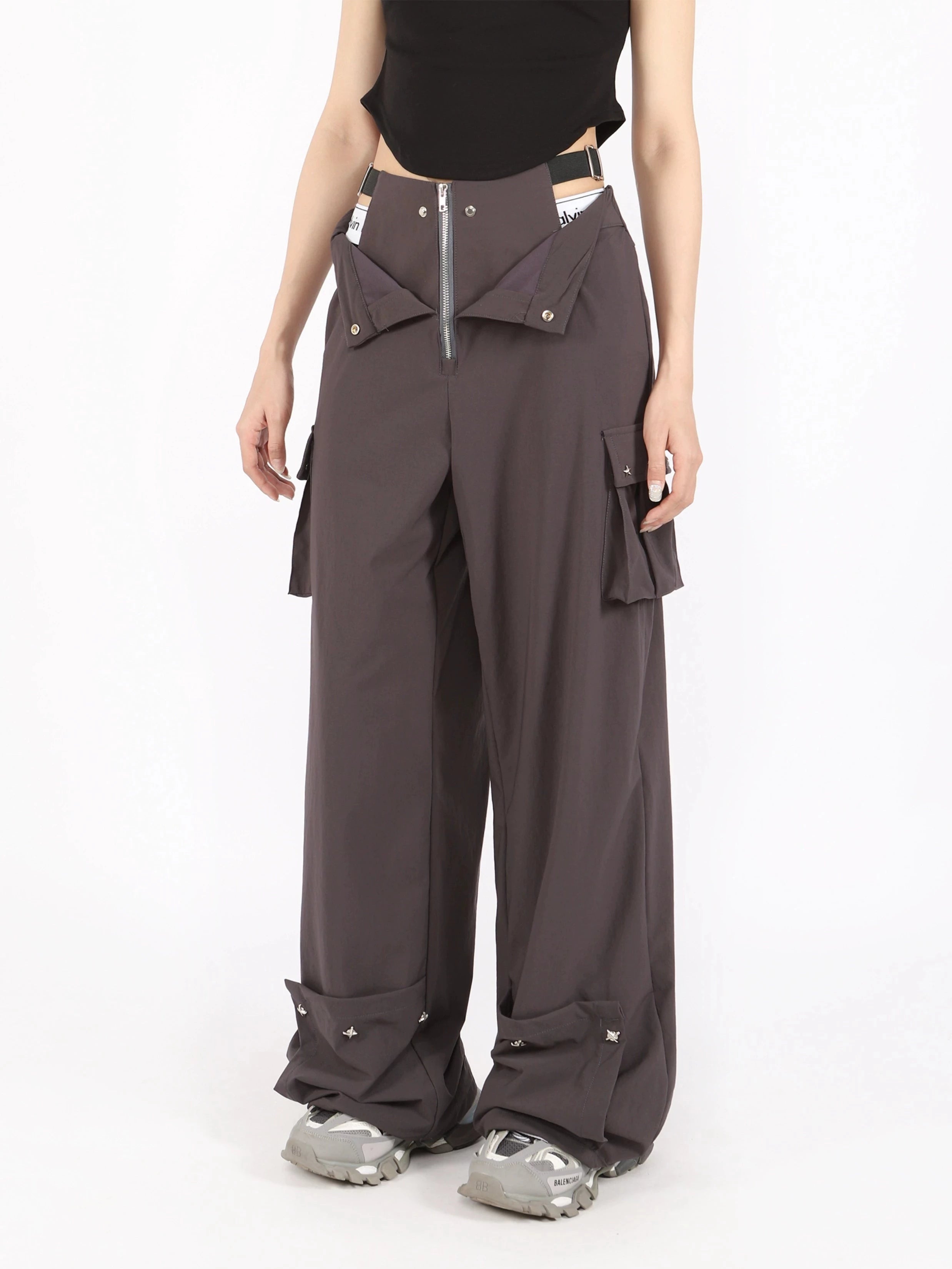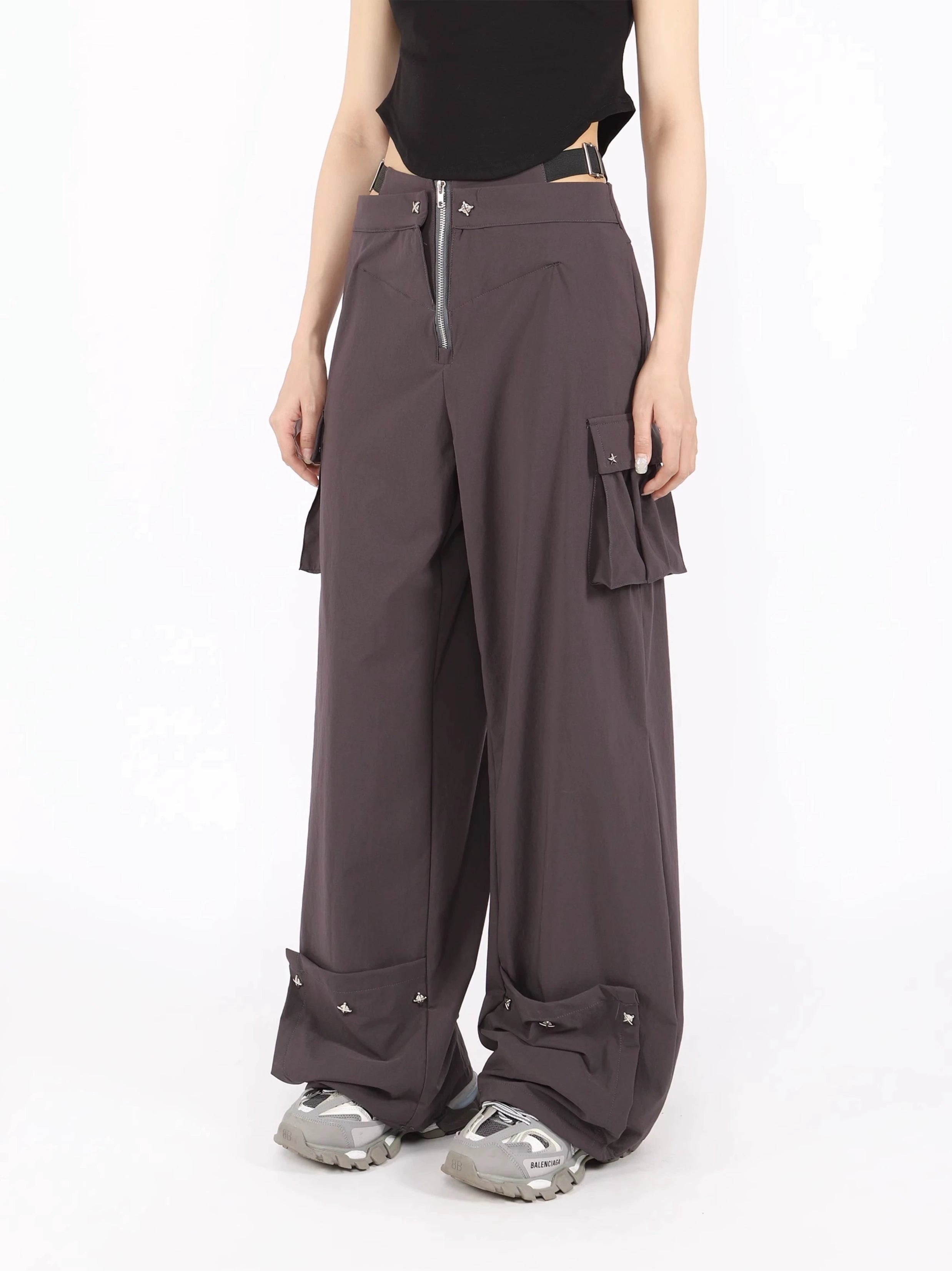 Waist-Layered Wide Leg Lightweight Cargo Pants