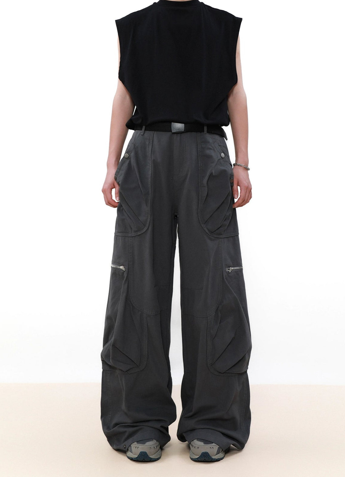 Wide Leg Cargo Pants with Oversized Pleated Pockets
