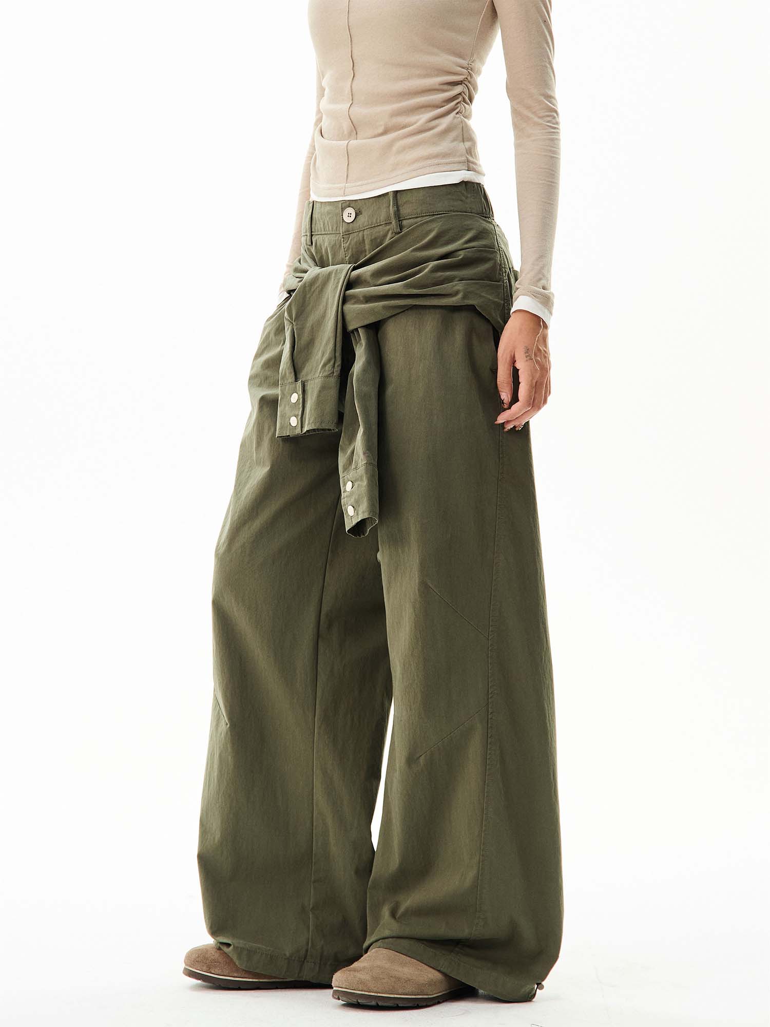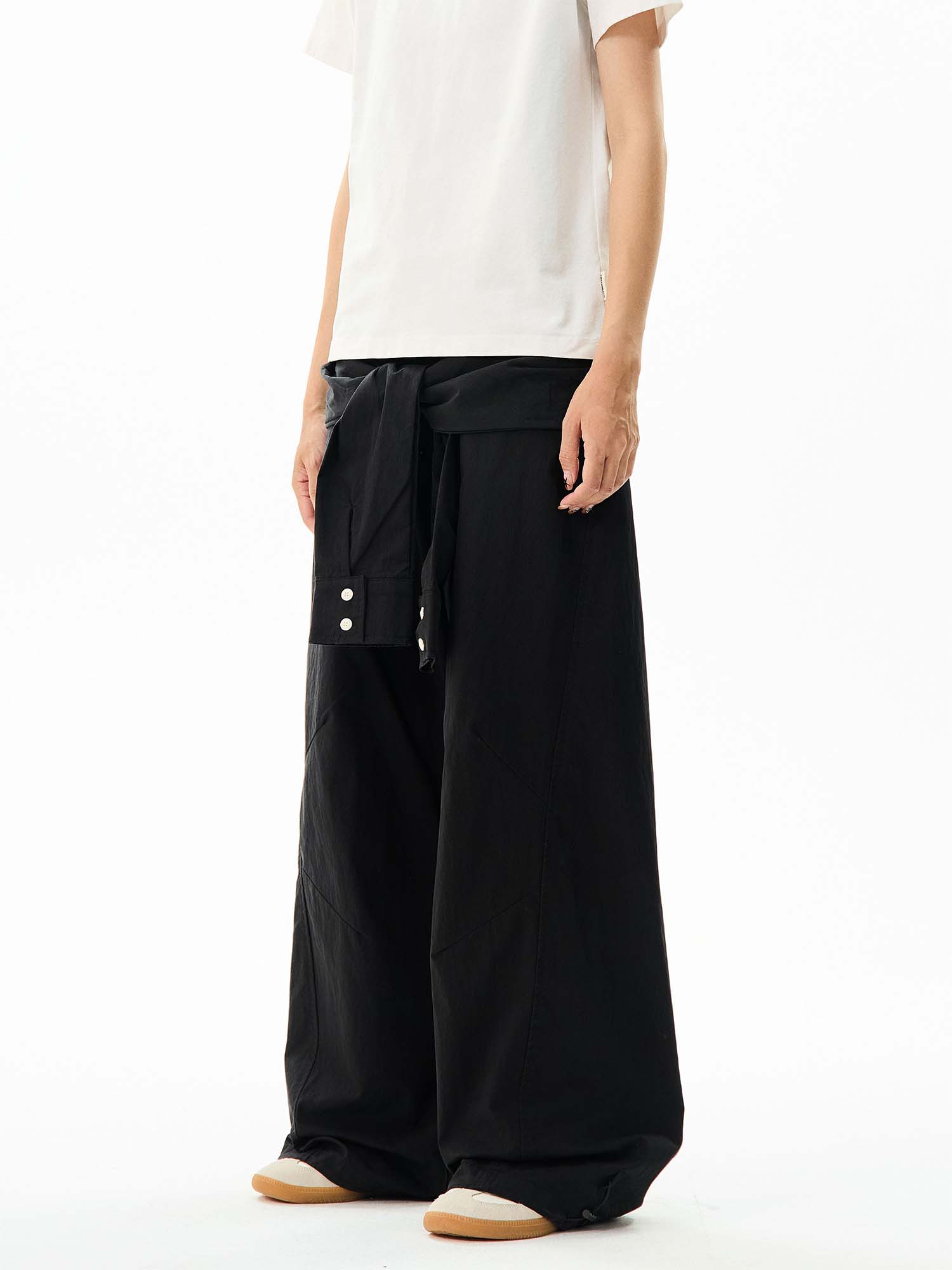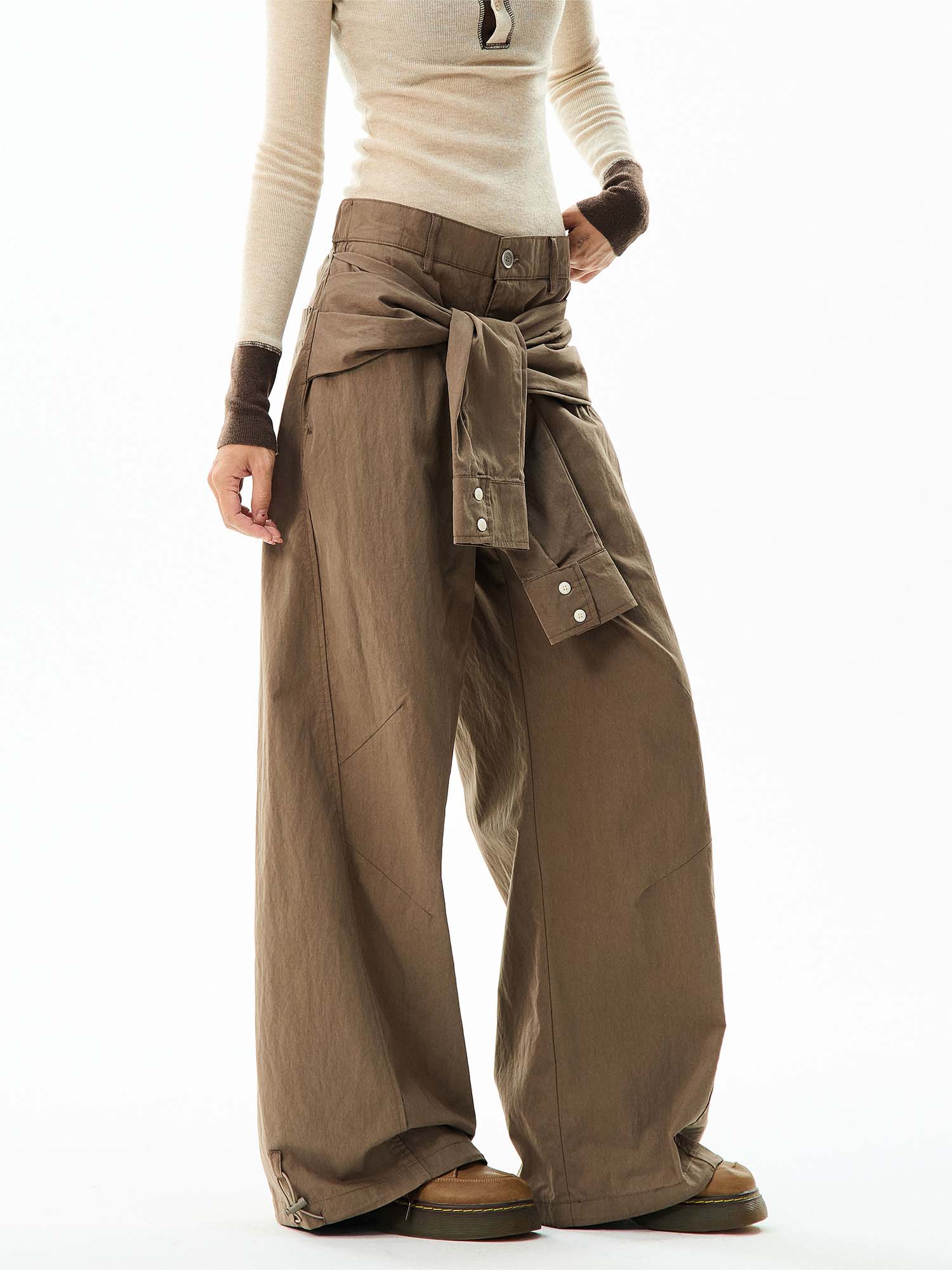 Wide-Leg Cargo Pants with Wraparound Belt Detail