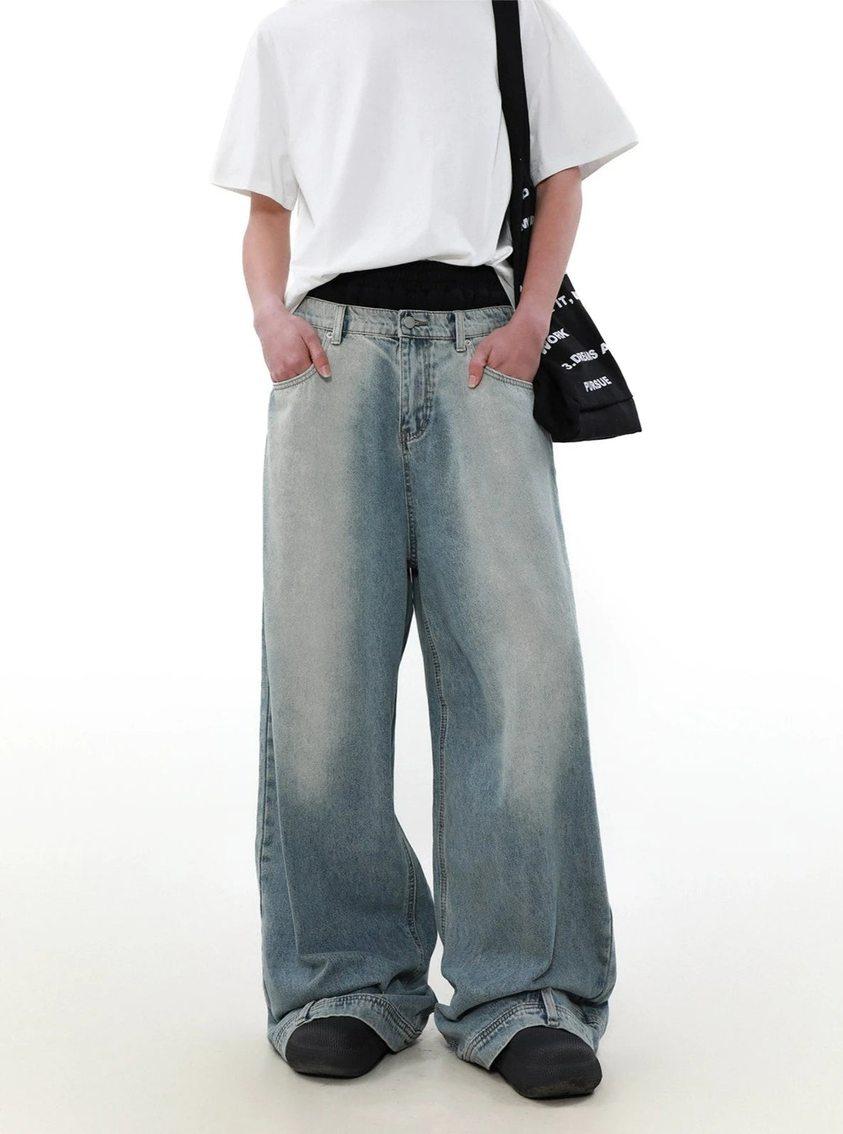 Wide Leg Denim Upside-Down Effect Jeans with Contrast Stitching