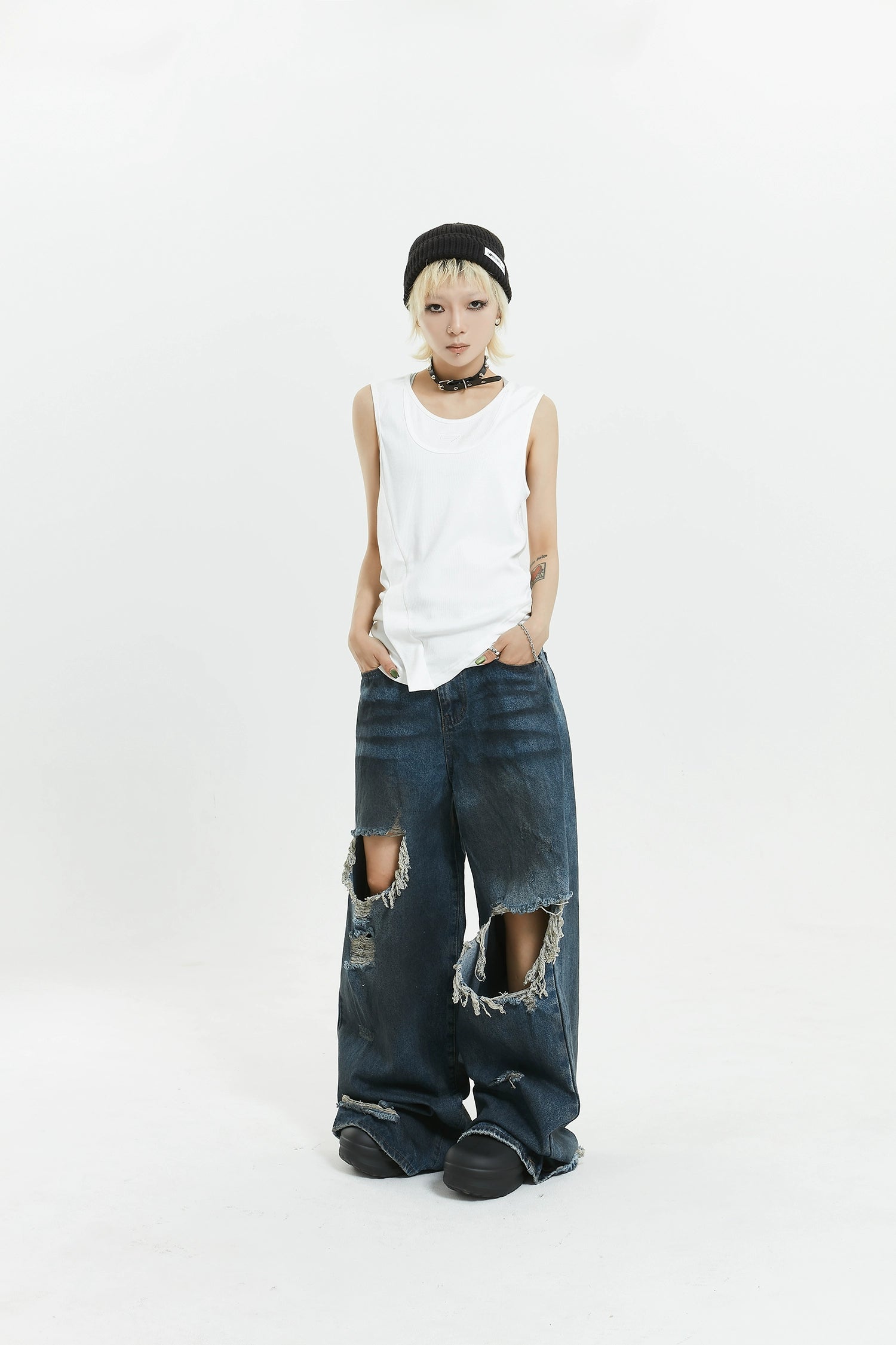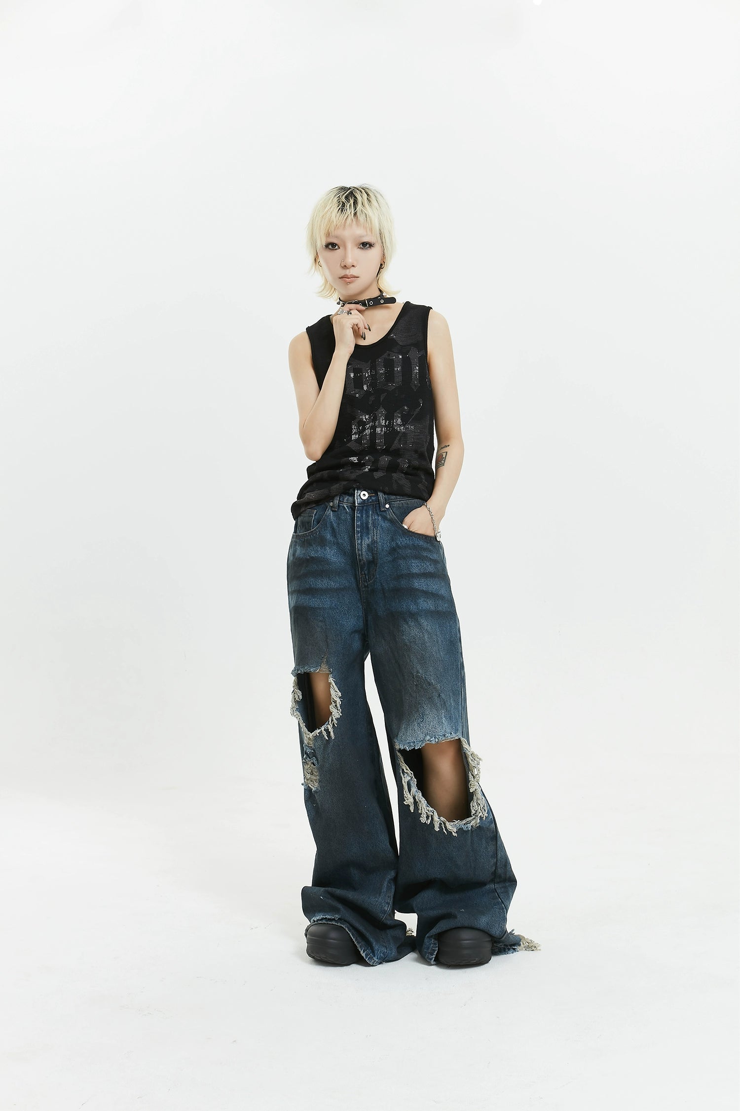 Pair these jeans with a simple tee and sneakers for a casual daytime ensemble or elevate them with heels and a statement top for an evening out. They are adept at transitioning from lazy weekends to savvy streetwear.