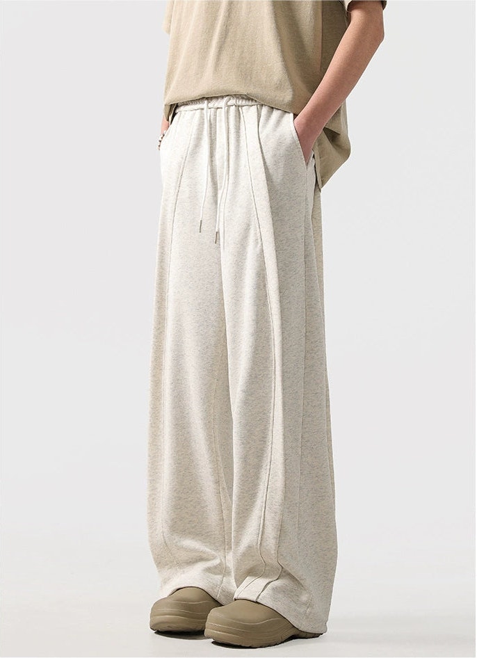 Crafted from a premium blend that is both soft and durable, these joggers feature a distinctive panel-pleated design adding a touch of sophistication to a relaxed fit. The wide-leg cut ensures freedom of movement while the drawstring waist offers customizable comfort.