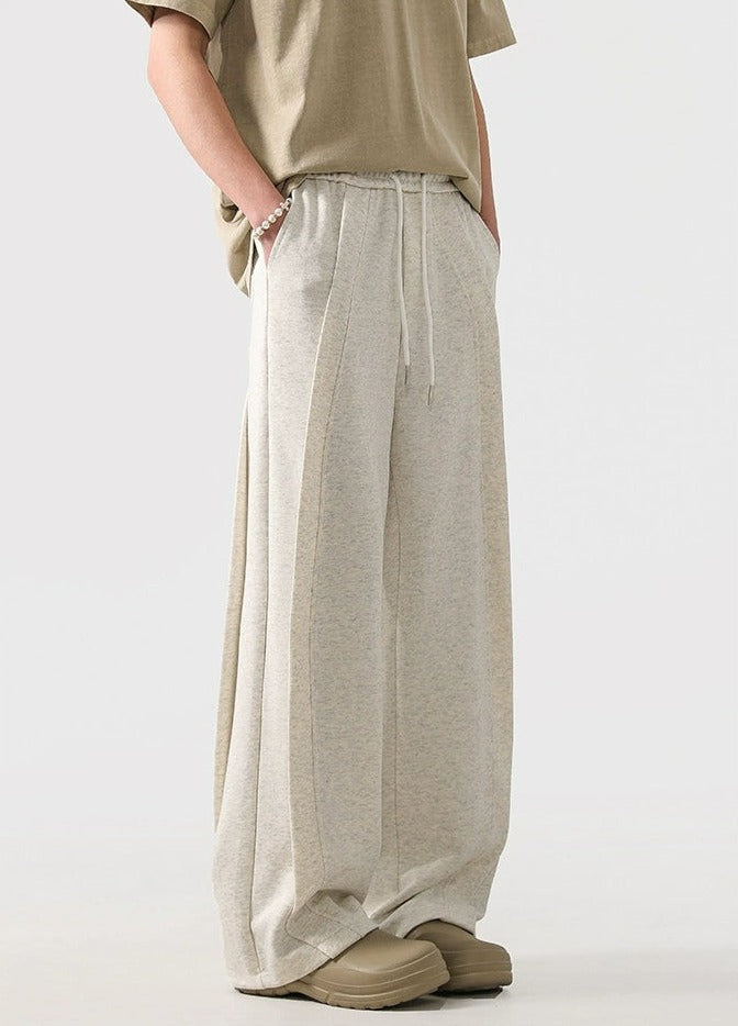 Wide Leg Drawstring Panel-Pleated Sweatpant Joggers