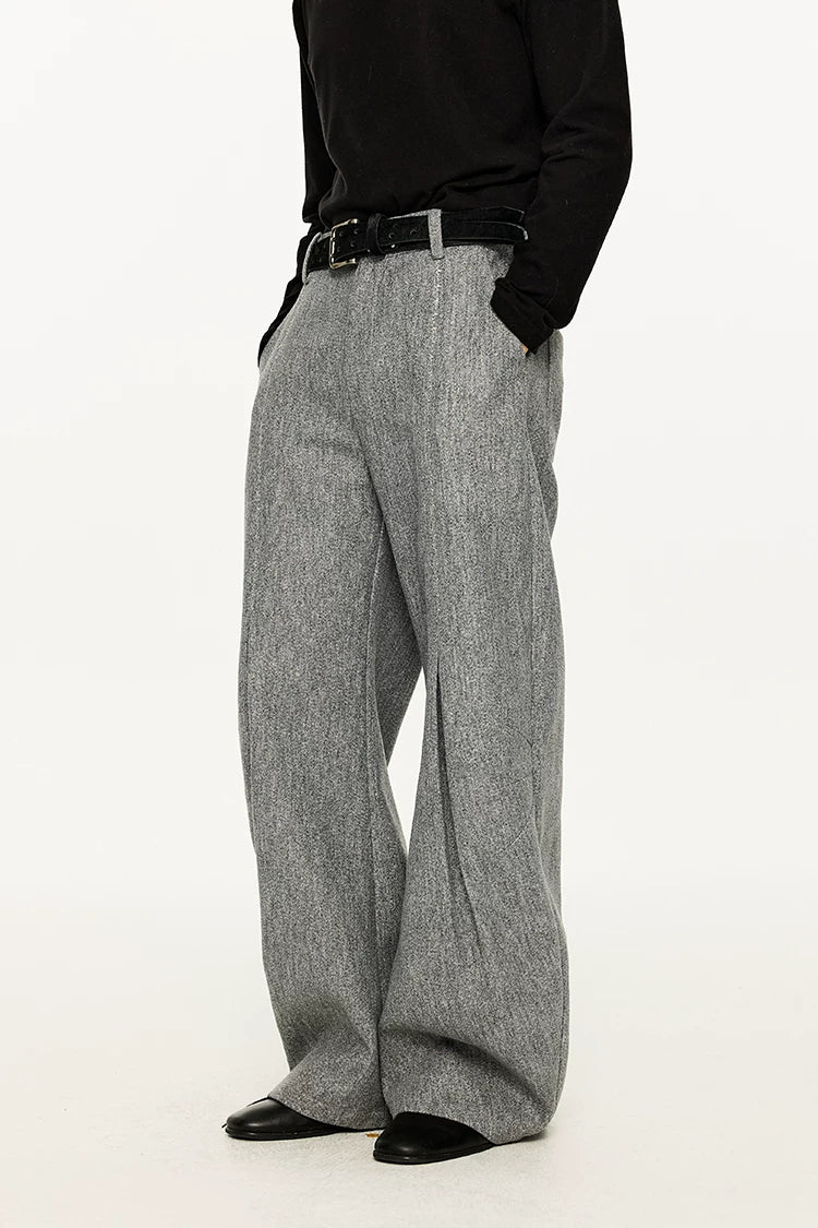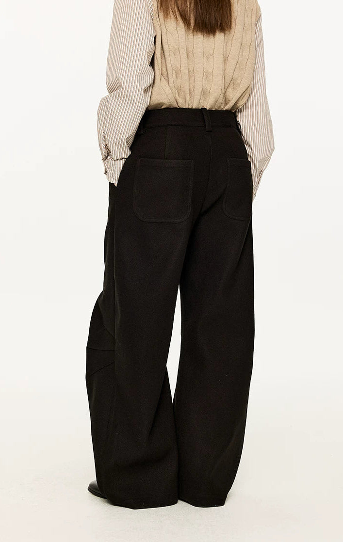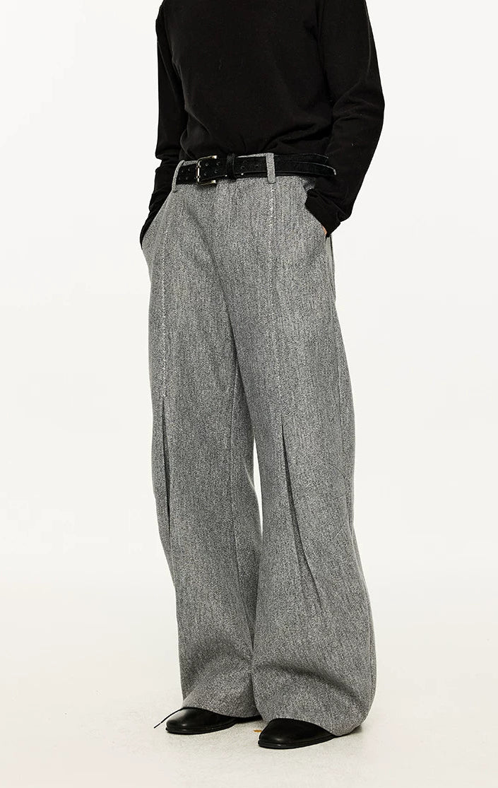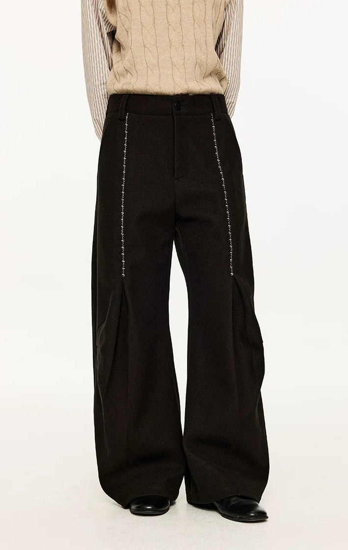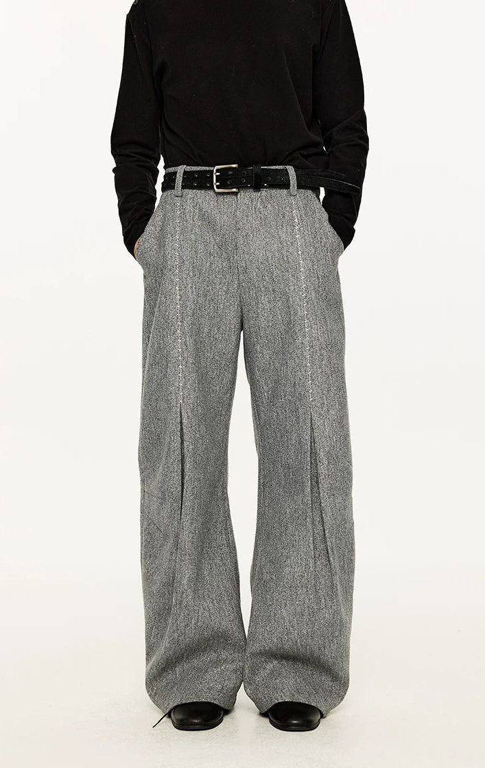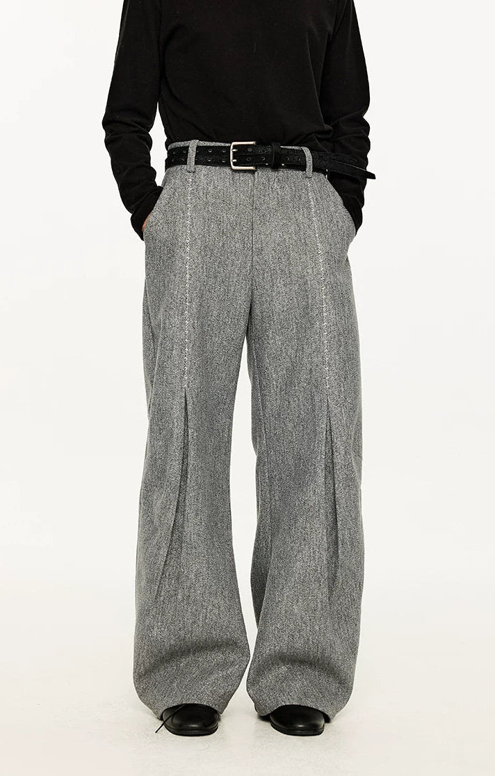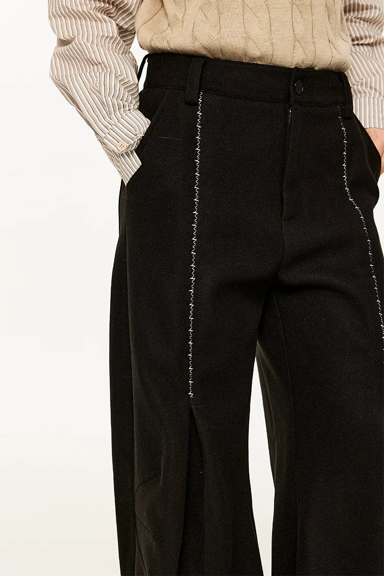 Wide Leg Half-Pleated and Half Contrast Stitch Trousers