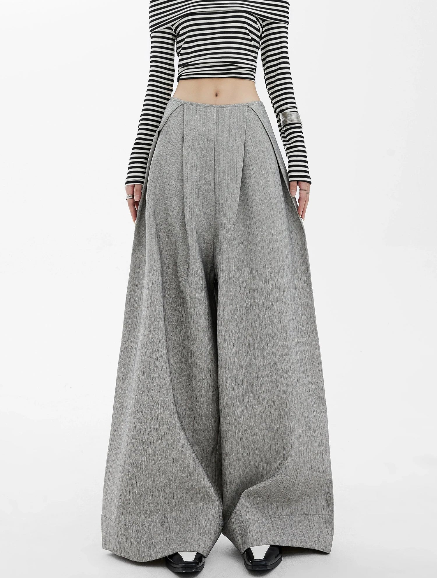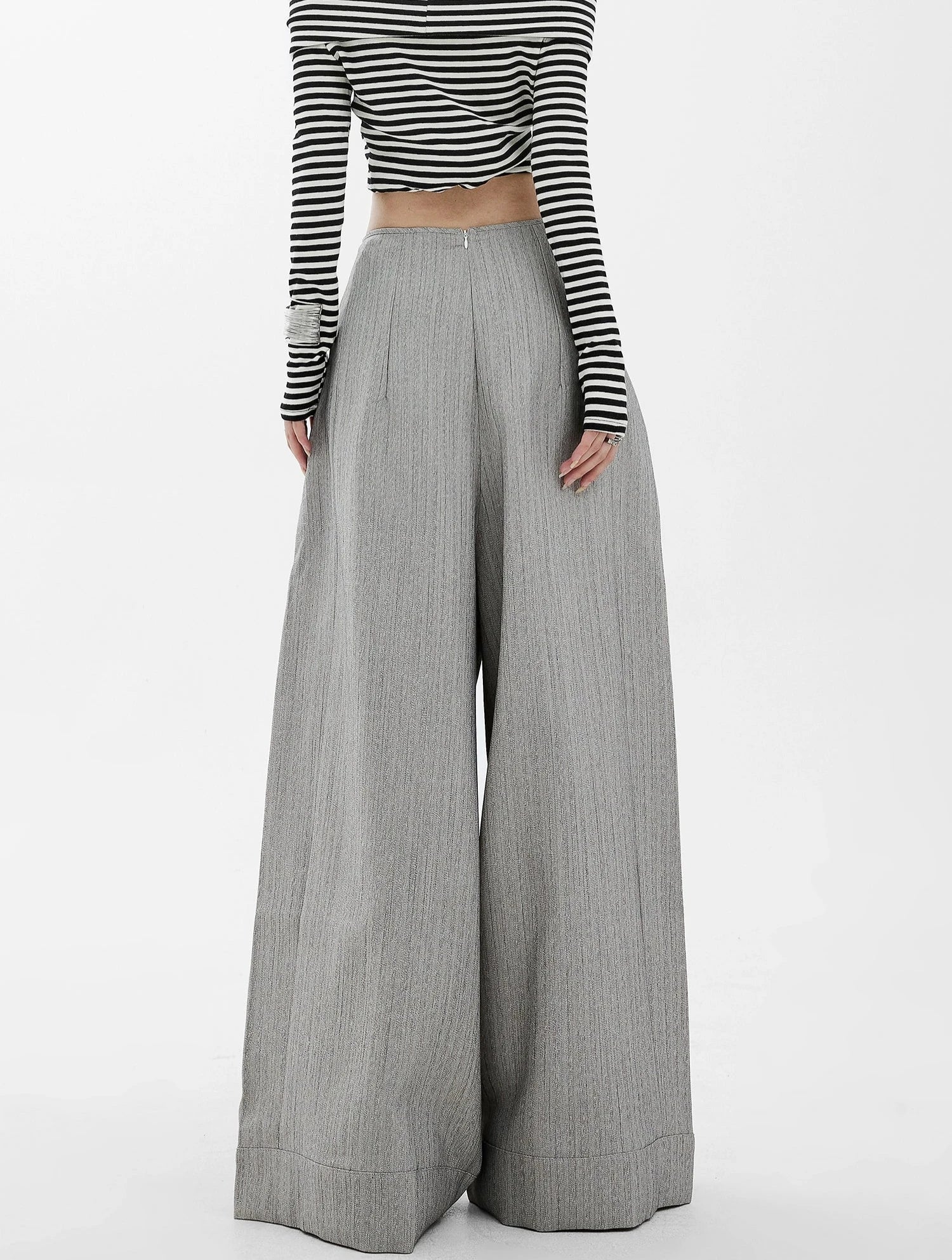 Wide-Leg High Waist Panel-Pleat Palazzo Trousers