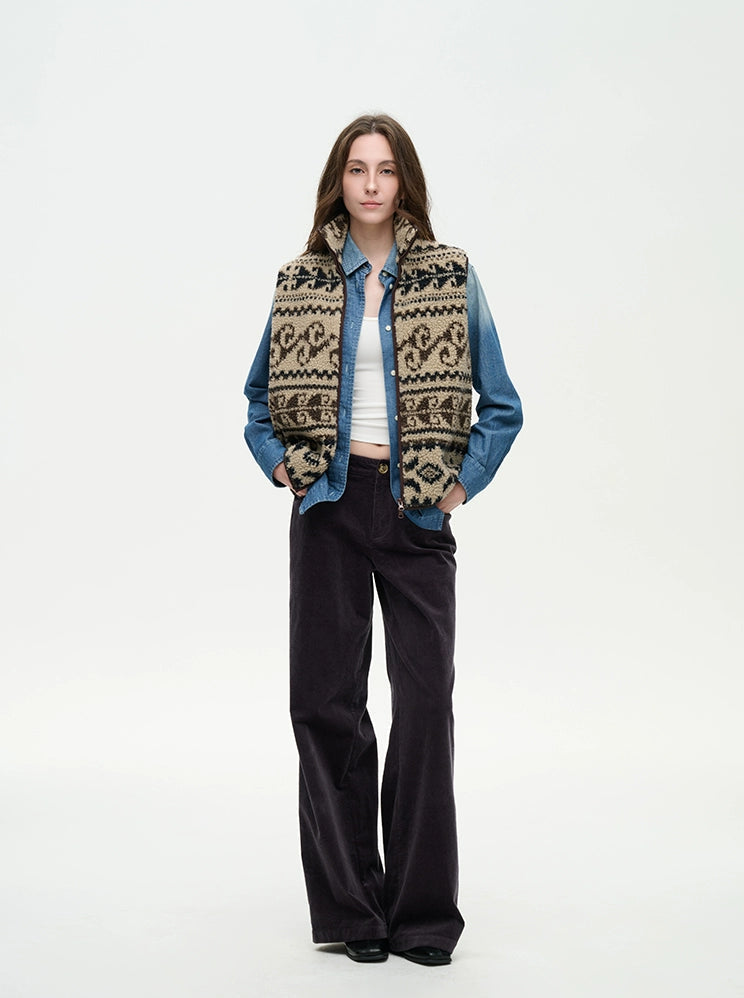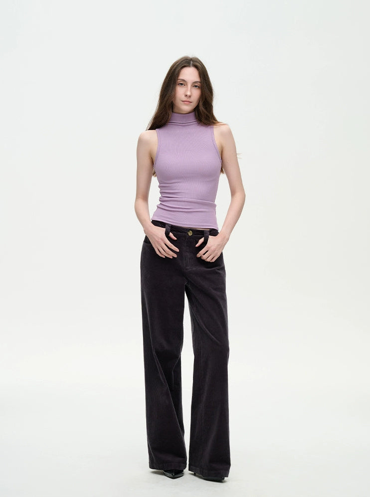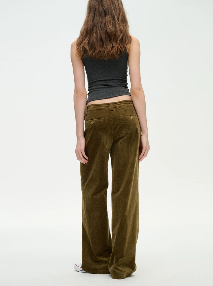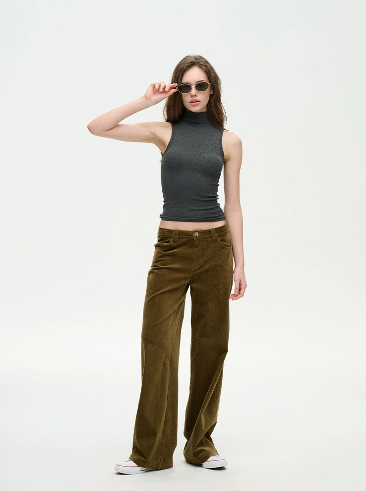 Wide Leg Mid-Waisted Retro Corduroy Pants