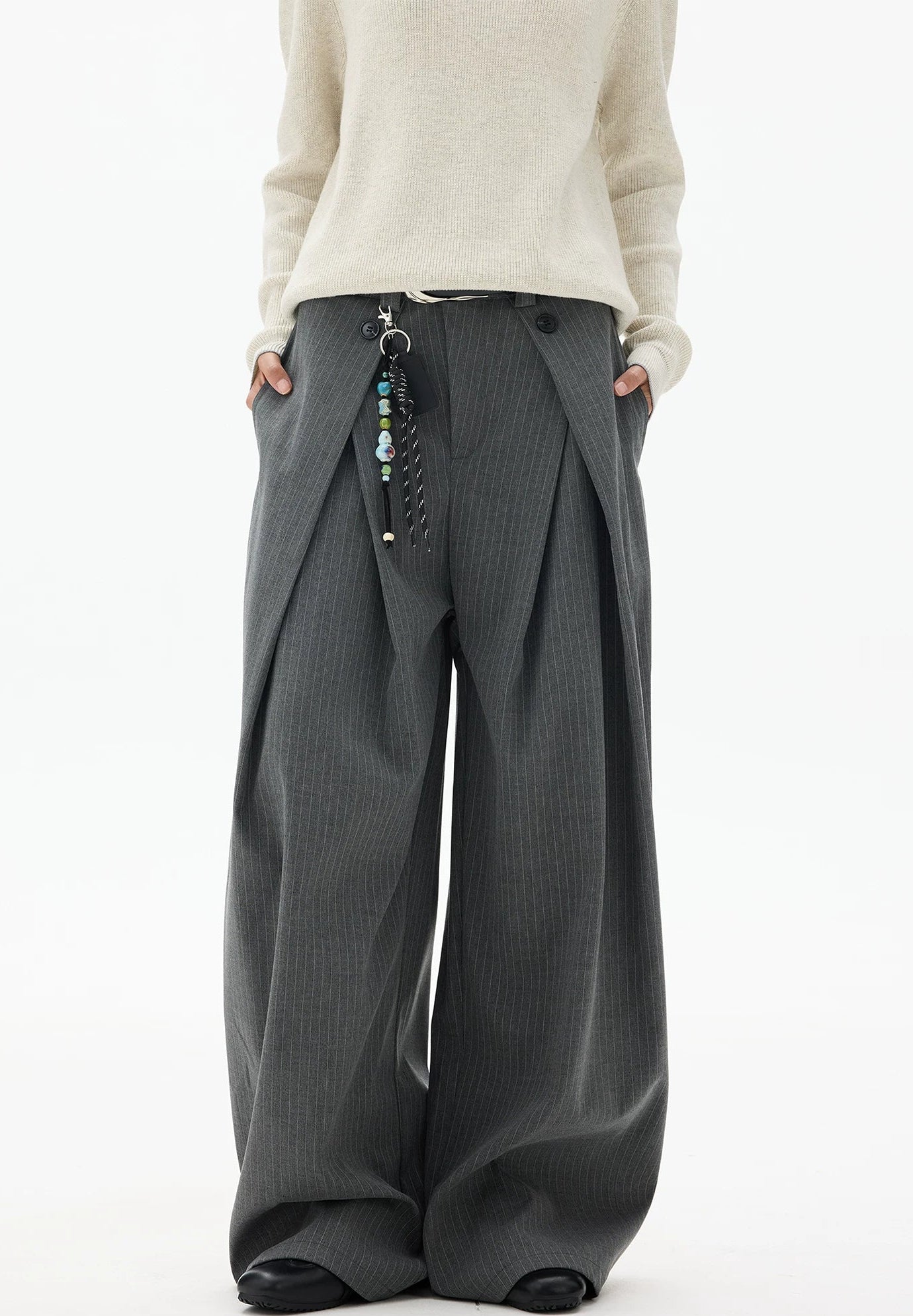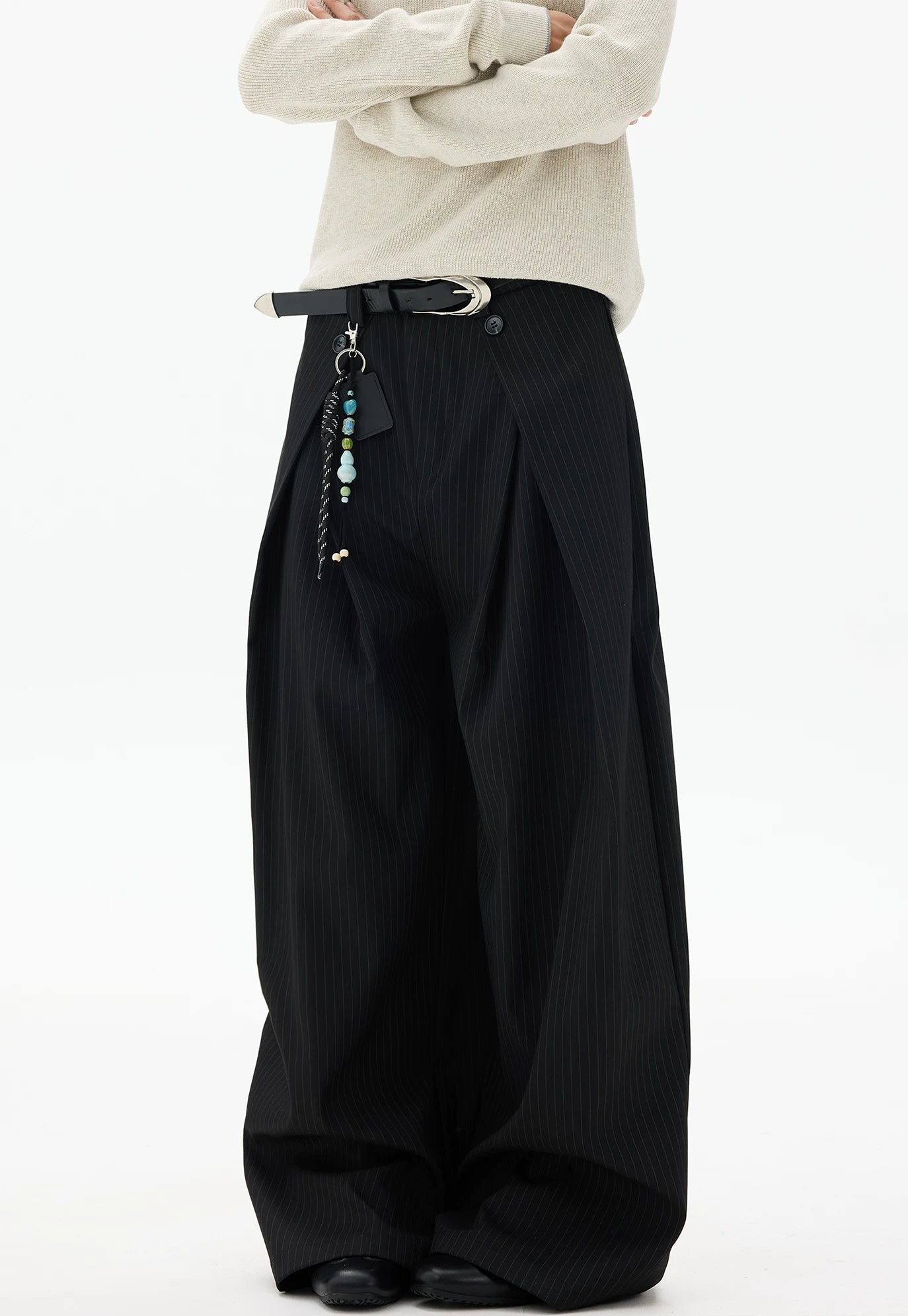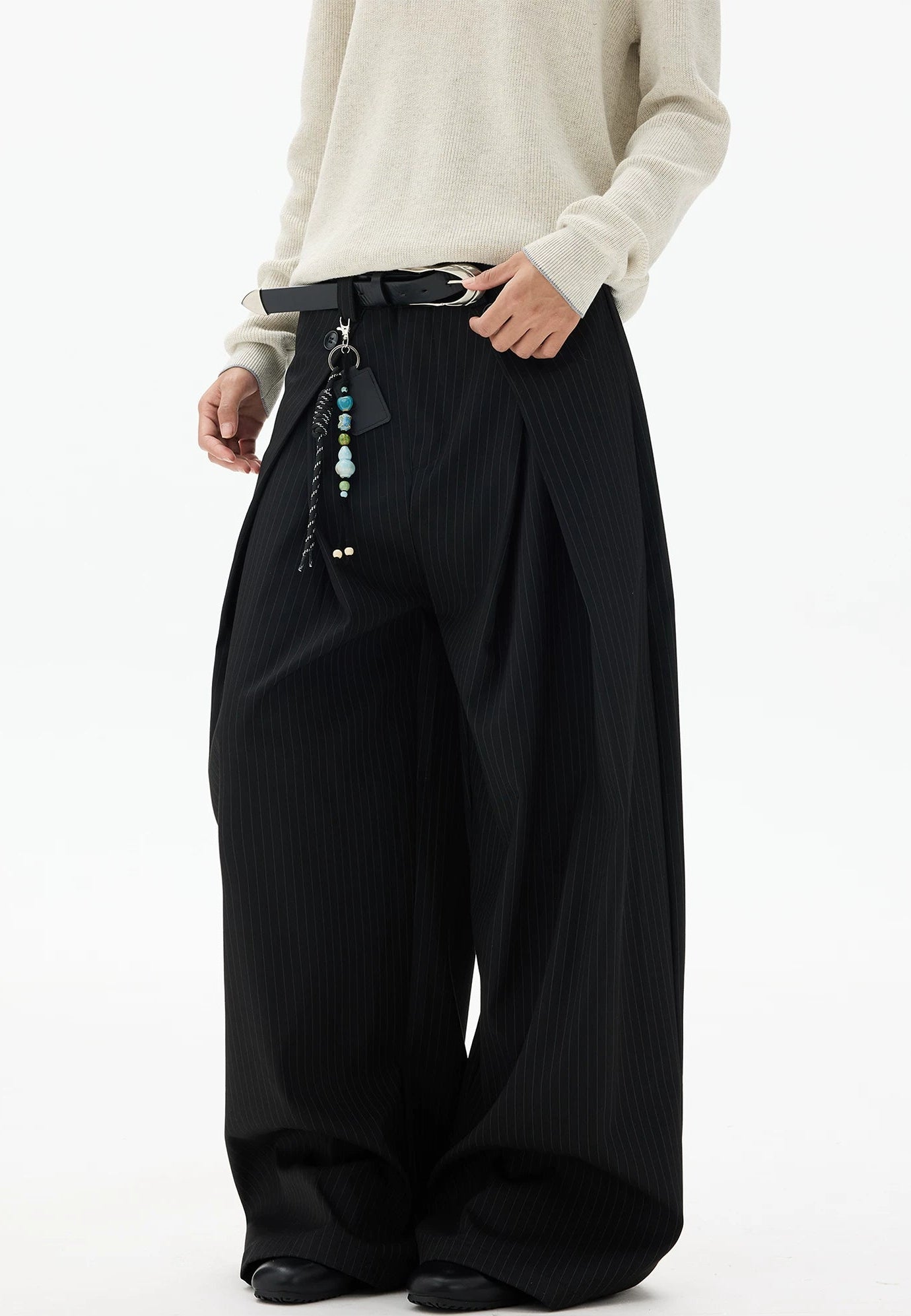 Wide Leg Pinstripe Draped Double-Pleated Trousers
