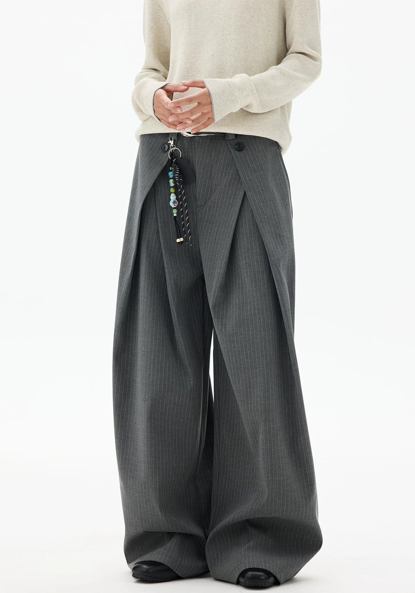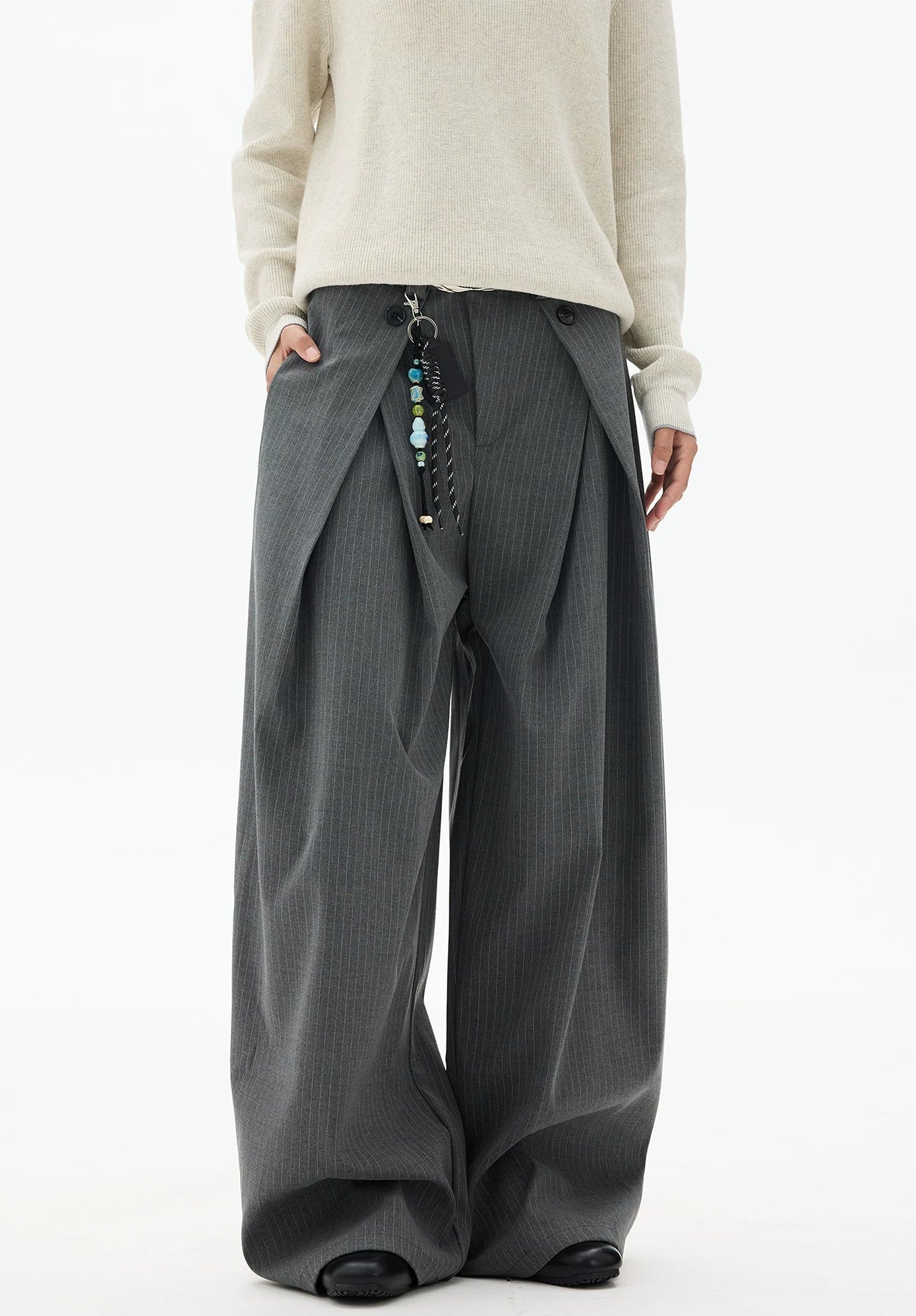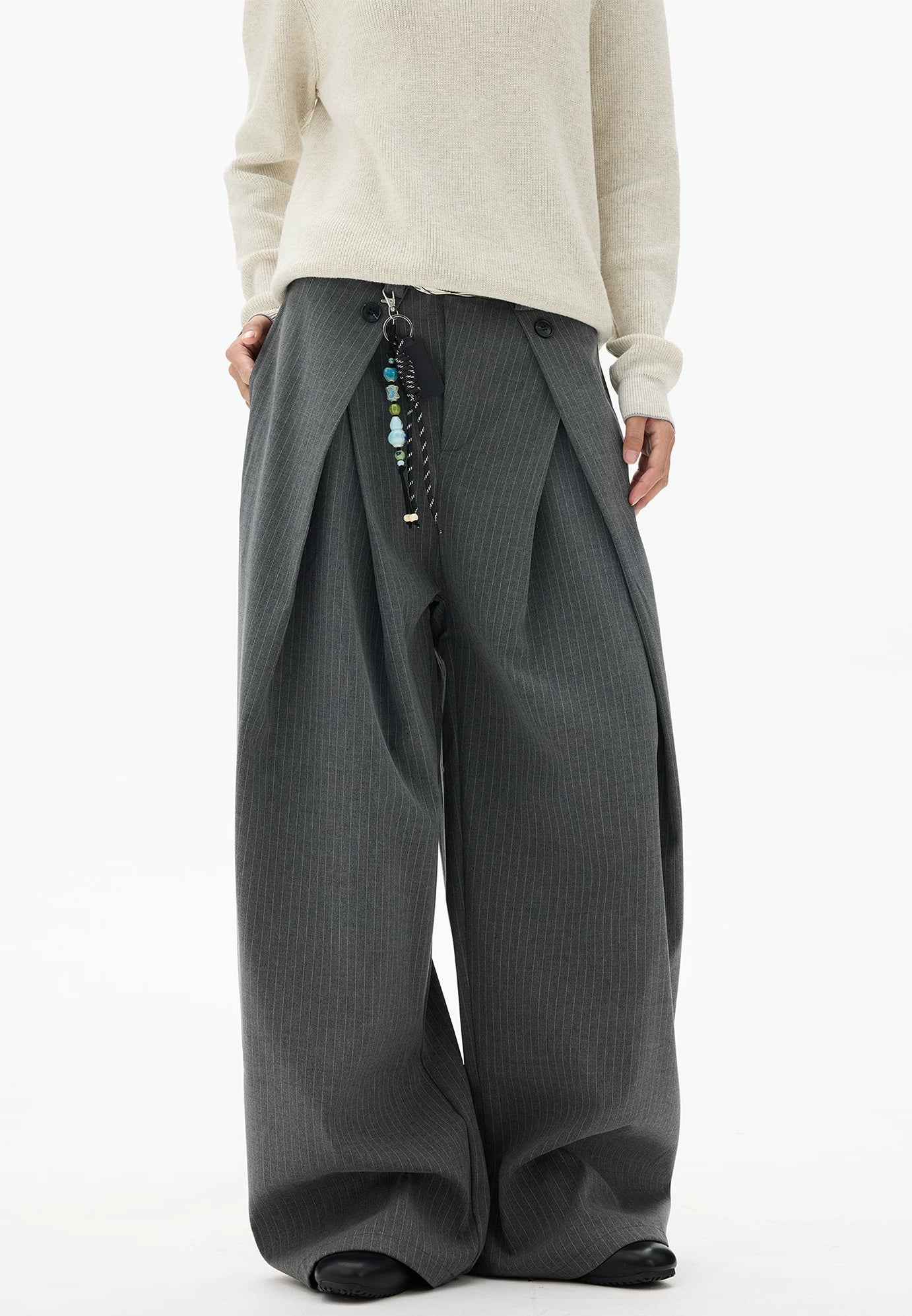 Wide Leg Pinstripe Draped Double-Pleated Trousers