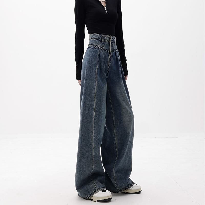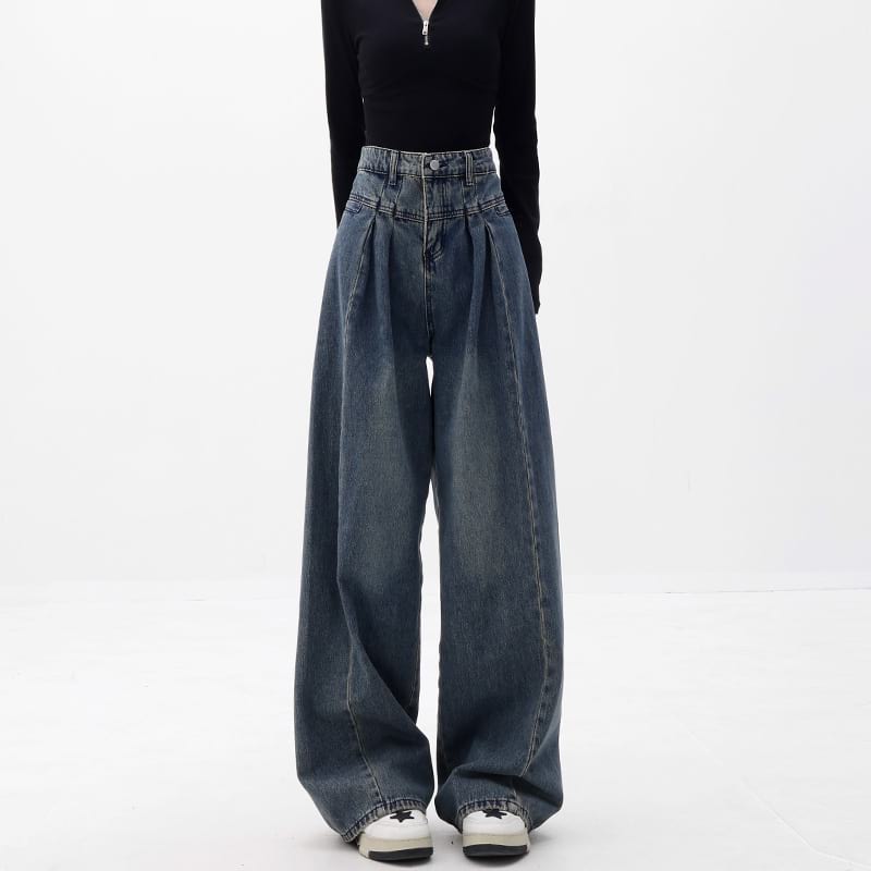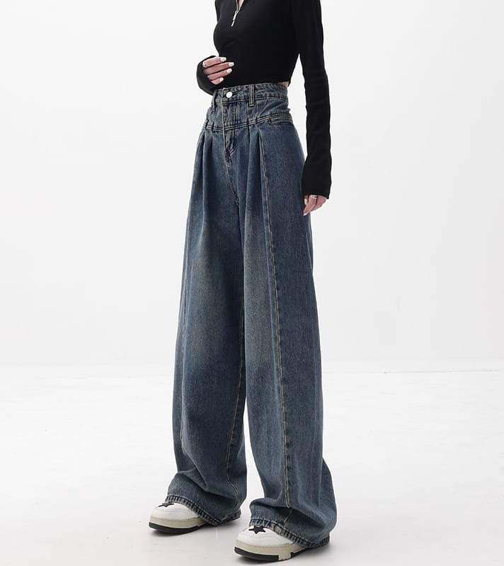 Wide Leg Pleated Jeans