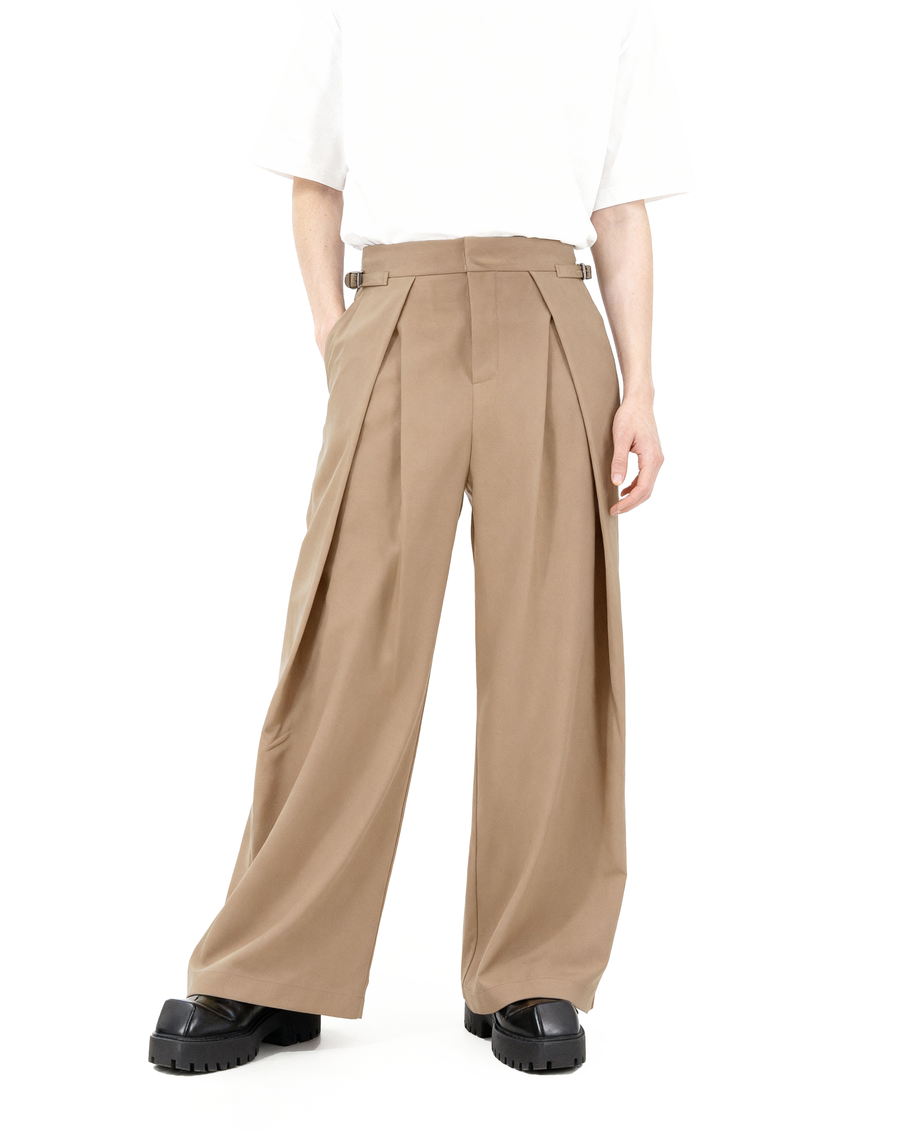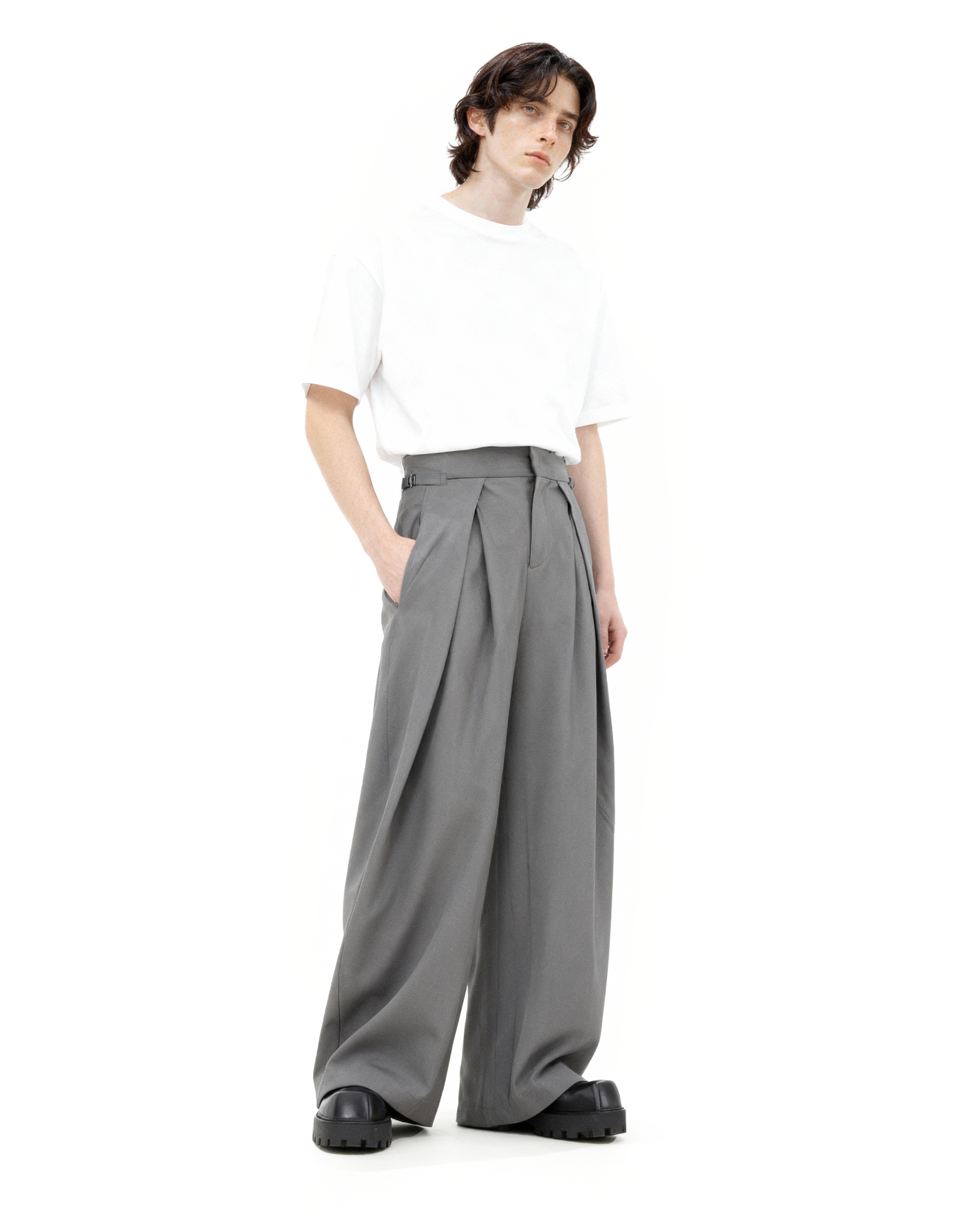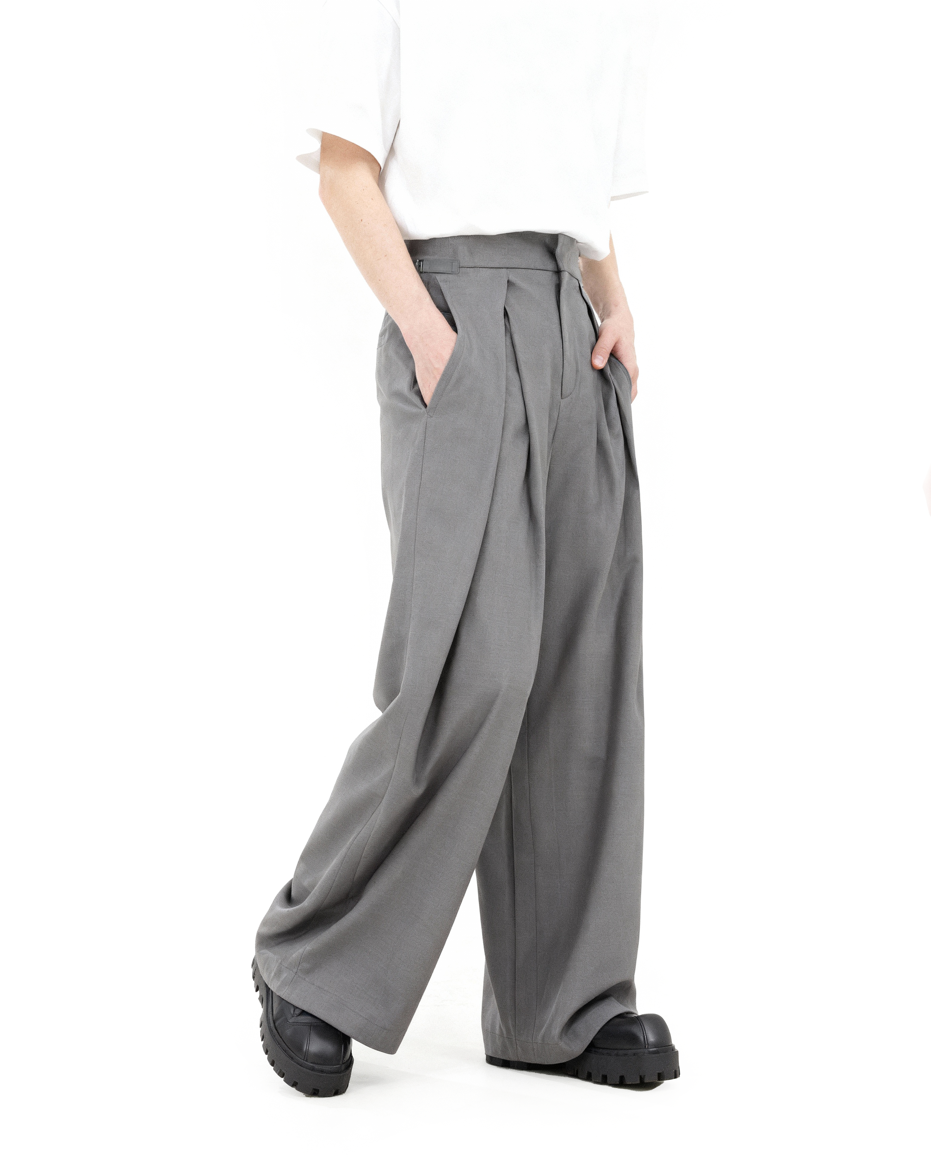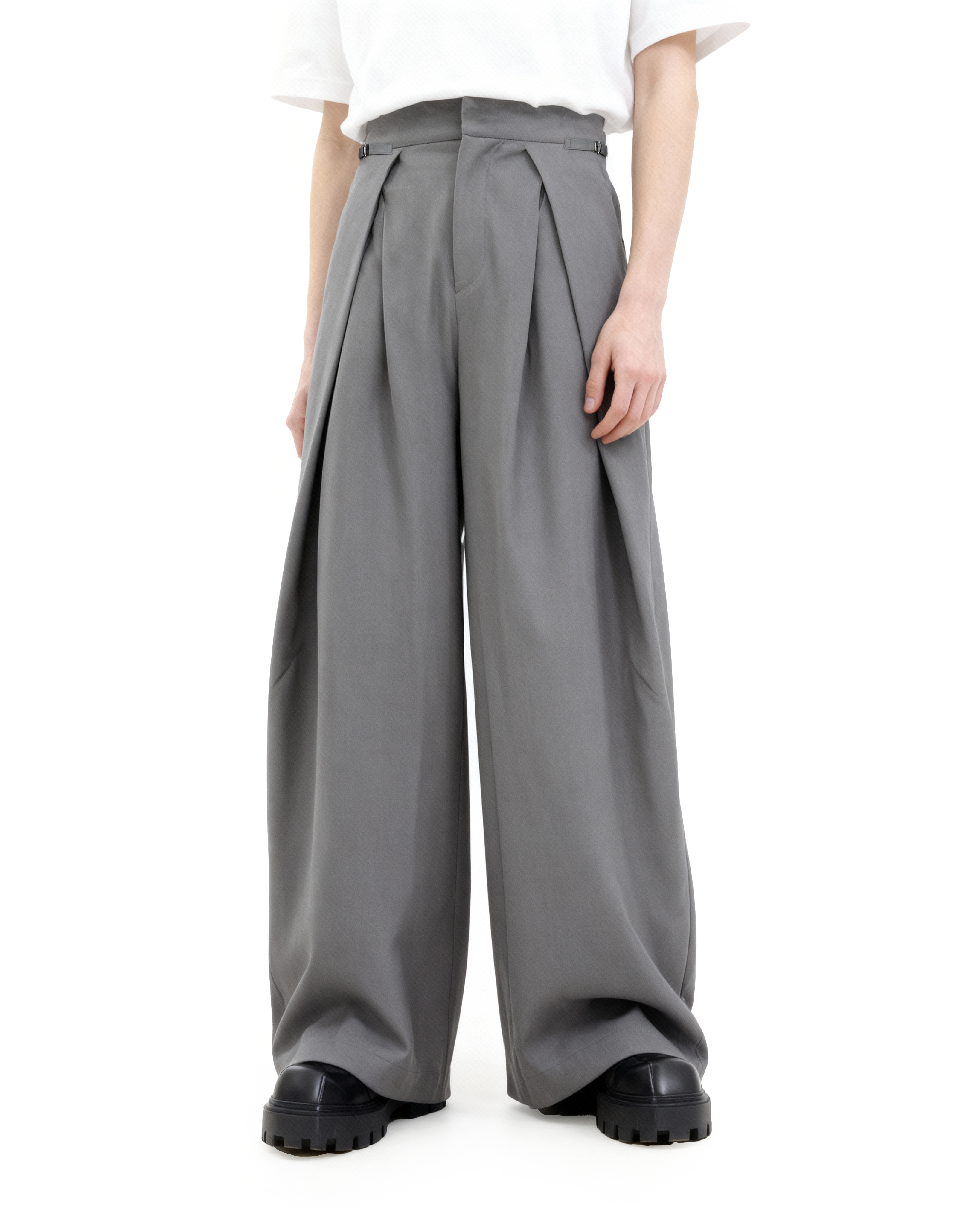 These trousers are crafted from a premium polyester blend, offering both durability and comfort with a hint of stretch. The pleated design and wide-leg cut combine to create a fluid silhouette that exudes confidence, while the solid color and minimalistic style ensure they remain a timeless staple.
