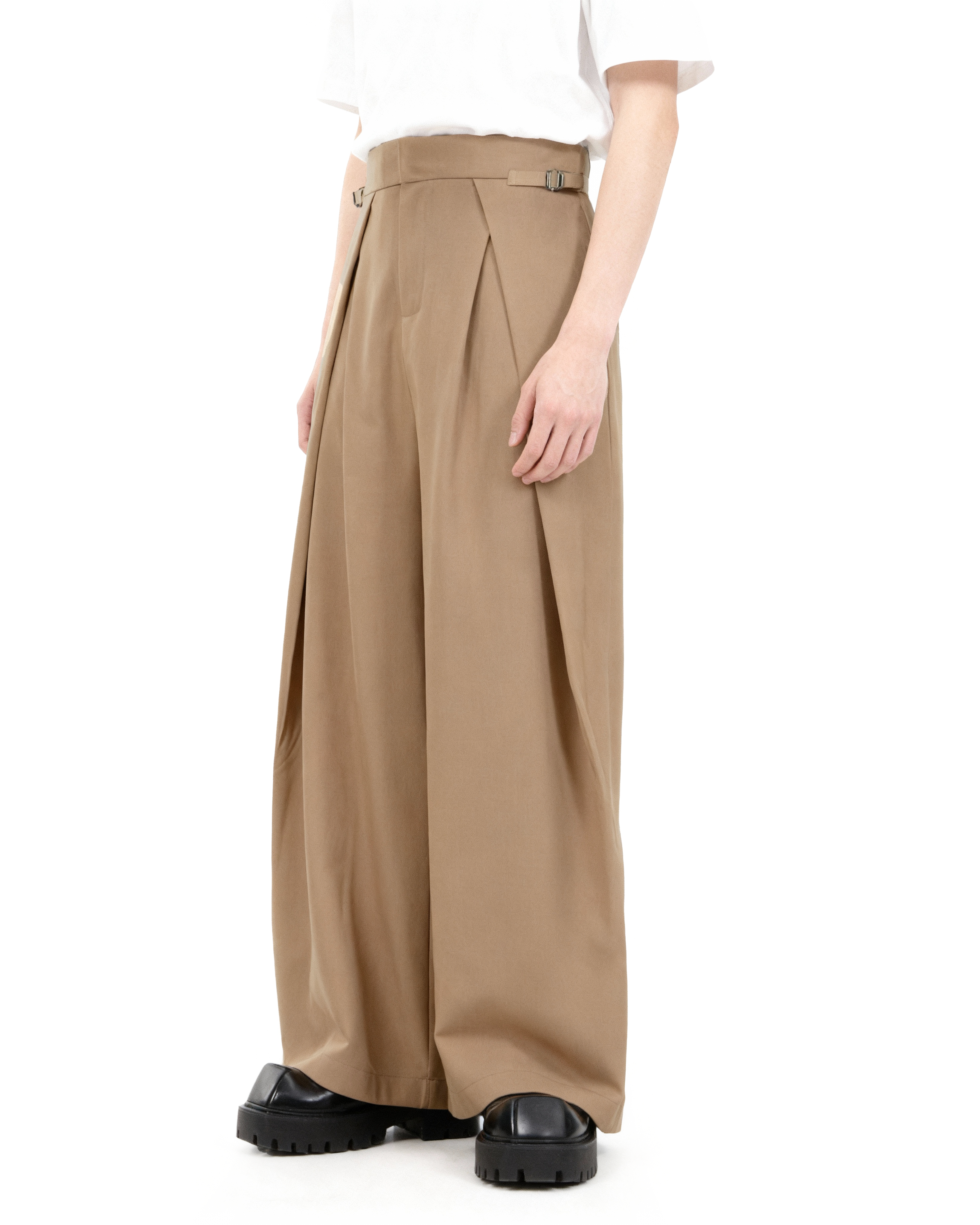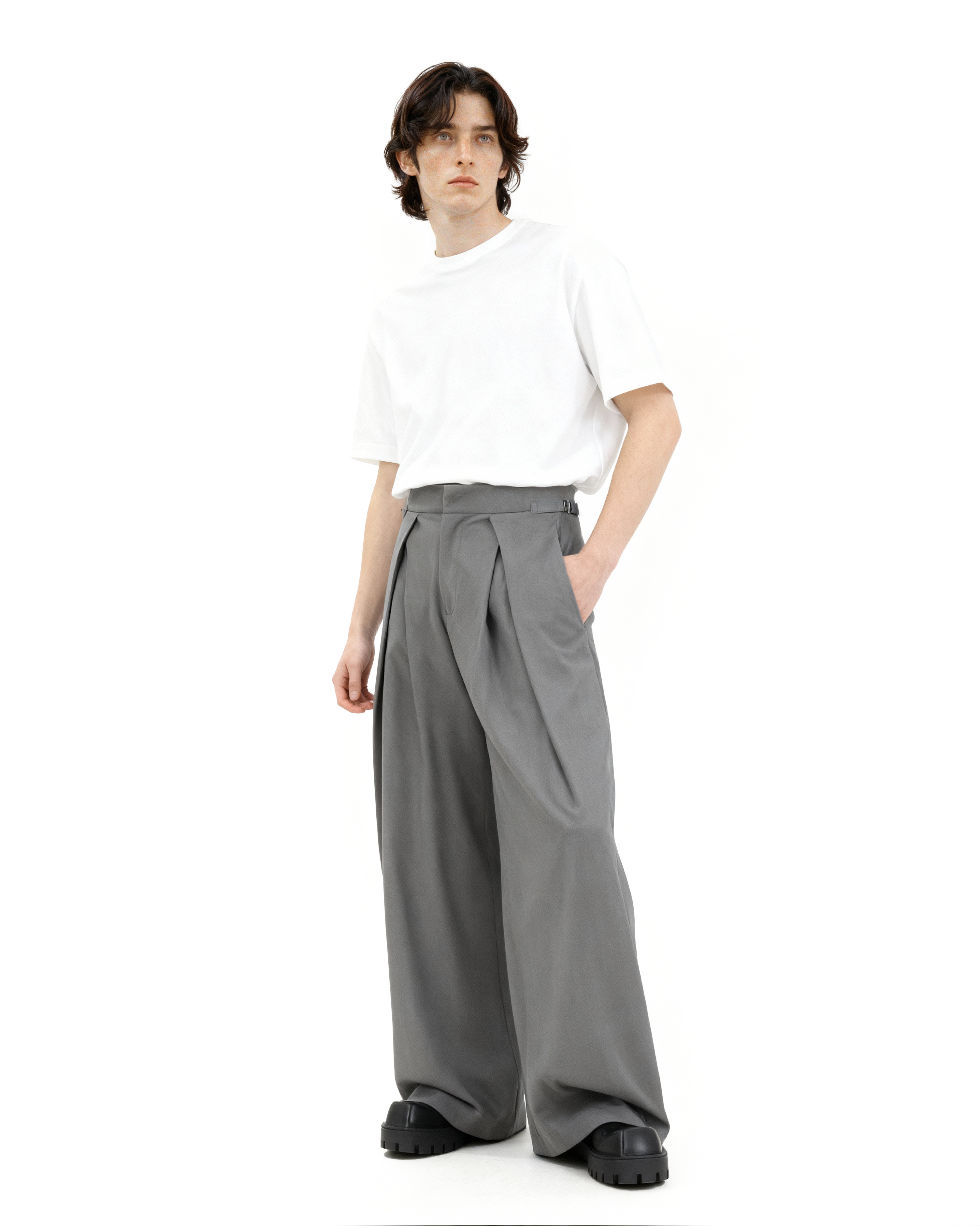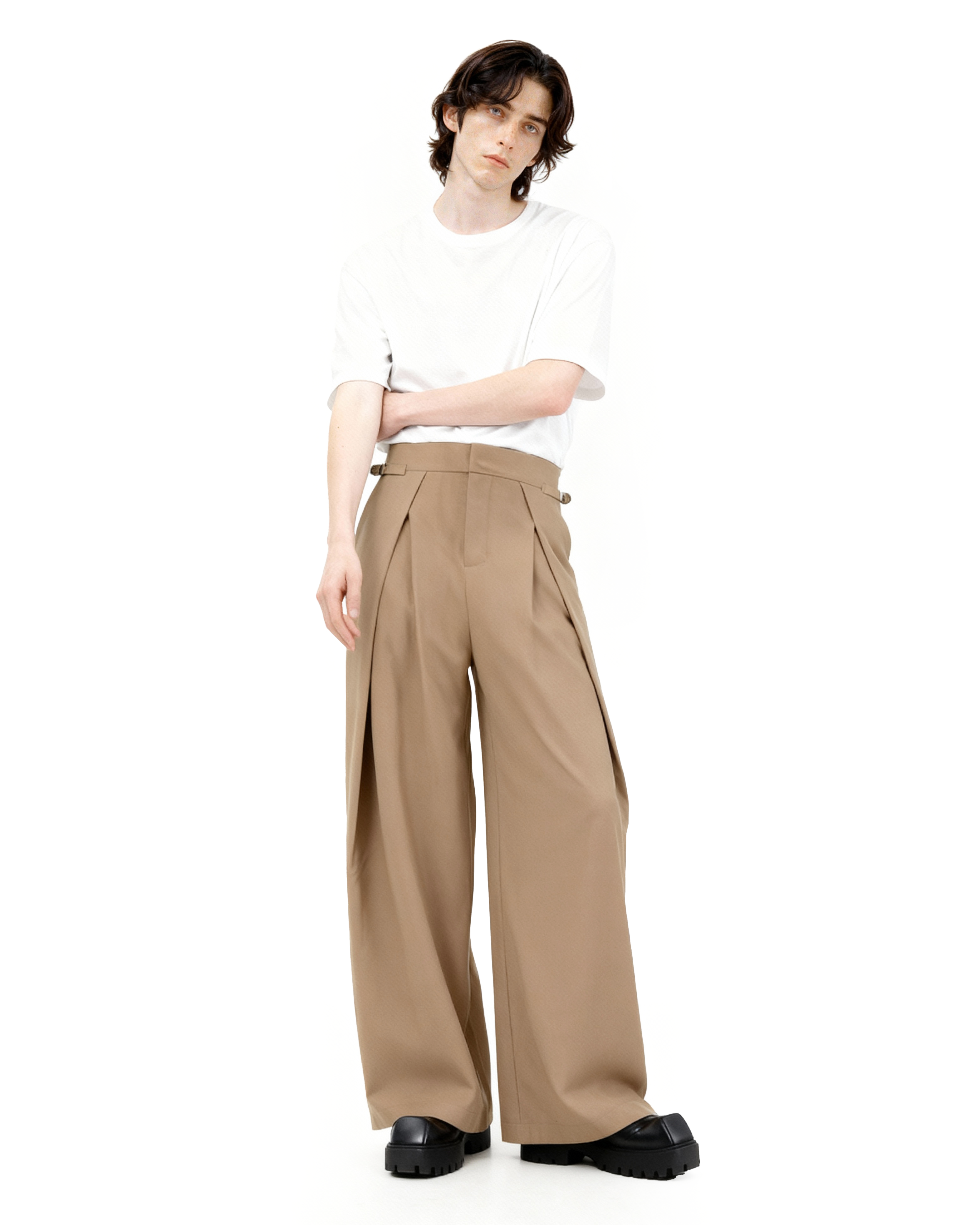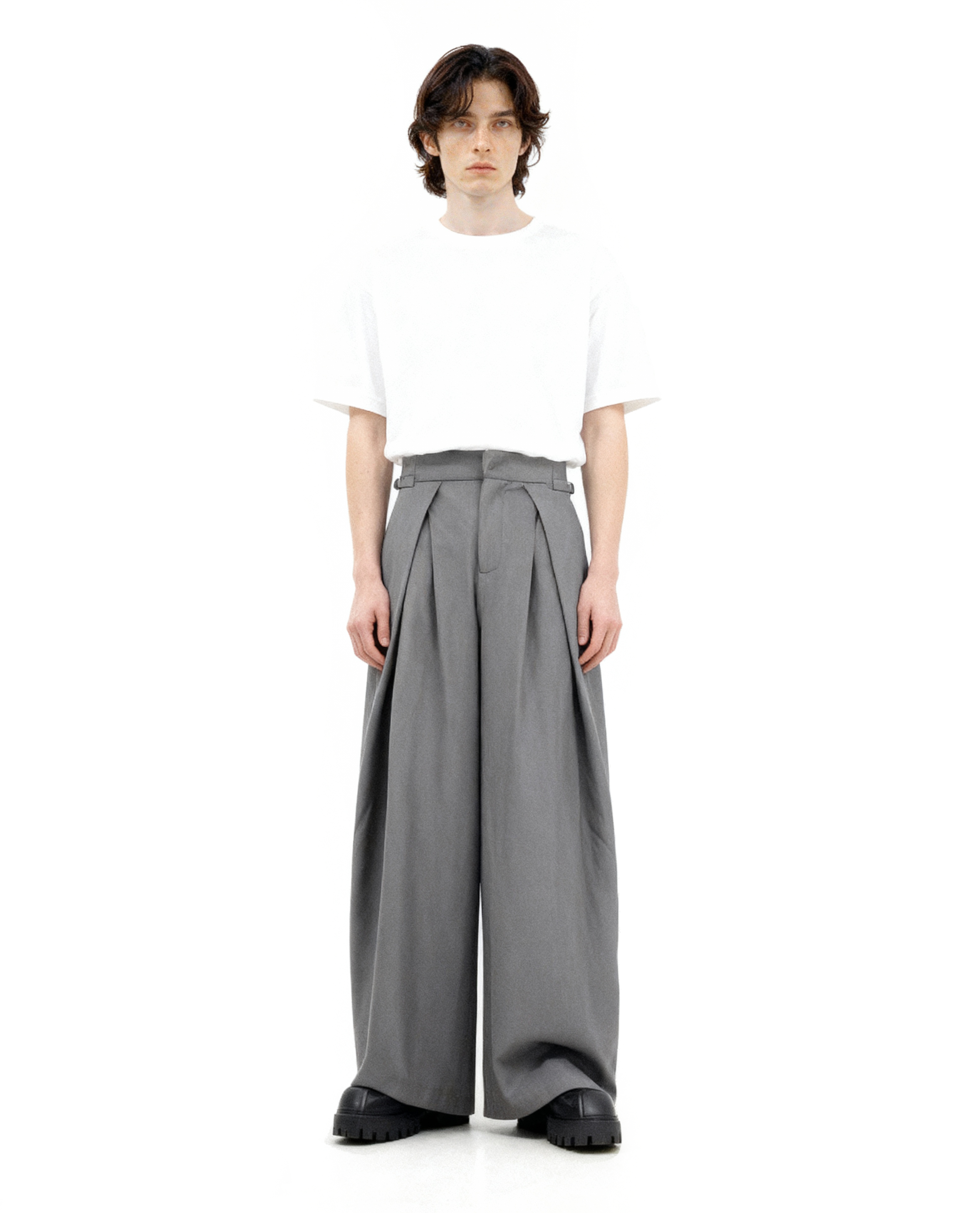 These trousers are crafted from a premium polyester blend, offering both durability and comfort with a hint of stretch. The pleated design and wide-leg cut combine to create a fluid silhouette that exudes confidence, while the solid color and minimalistic style ensure they remain a timeless staple.